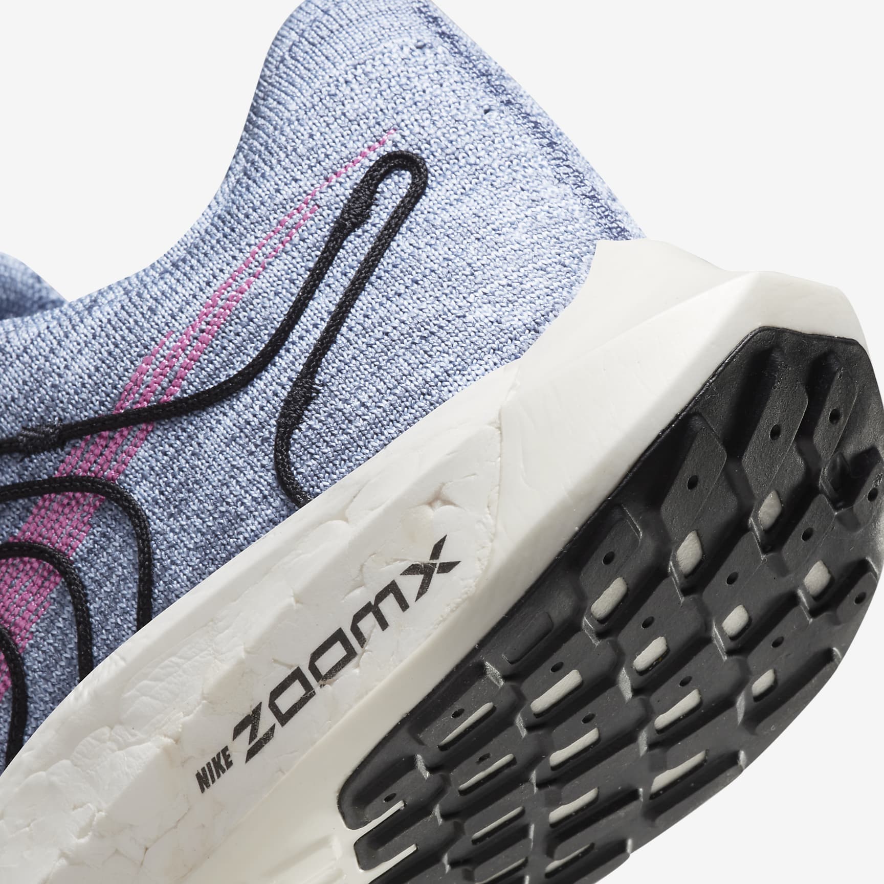 Let this esteemed stallion help you log the hard miles. Complete with lighter, responsive, repurposed foam and a feather upper, this motley-coloured mare is made to help you increase tempo without sacrificing comfort as you push towards a personal best. This immortal is responsibly constructed with at least 50% recycled material by weight, while maintaining its tried-and-tested everyday ethos. A More Responsive Ride Nike ZoomX foam is responsive and lightweight, giving you bounce with every step. Shaped like a rocker, the foam provides support for the 3 phases of a runner's stride. It offers flexibility when your foot rises off the ground, a smooth ride when your foot is moving forwards and cushioning at ground contact. Lightweight and Supportive Flyknit technology uses high-strength fibres to create a lightweight upper with targeted areas of support, stretch and breathability. It provides security and comfort. Traction for the Road Waffle-inspired tread on the outsole provides traction.