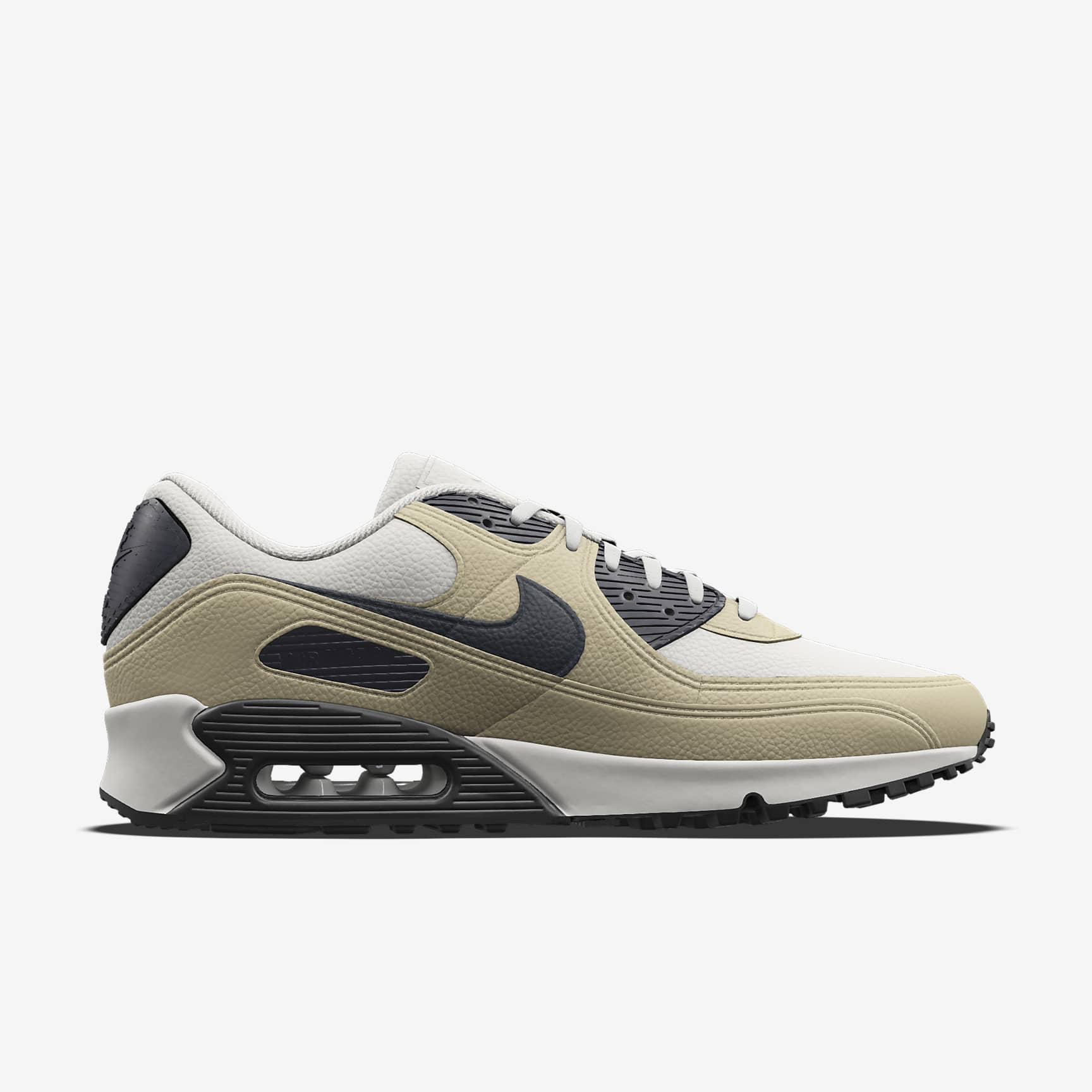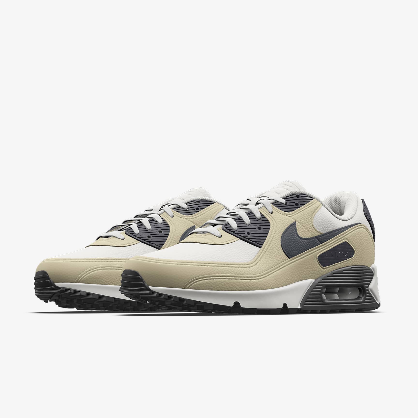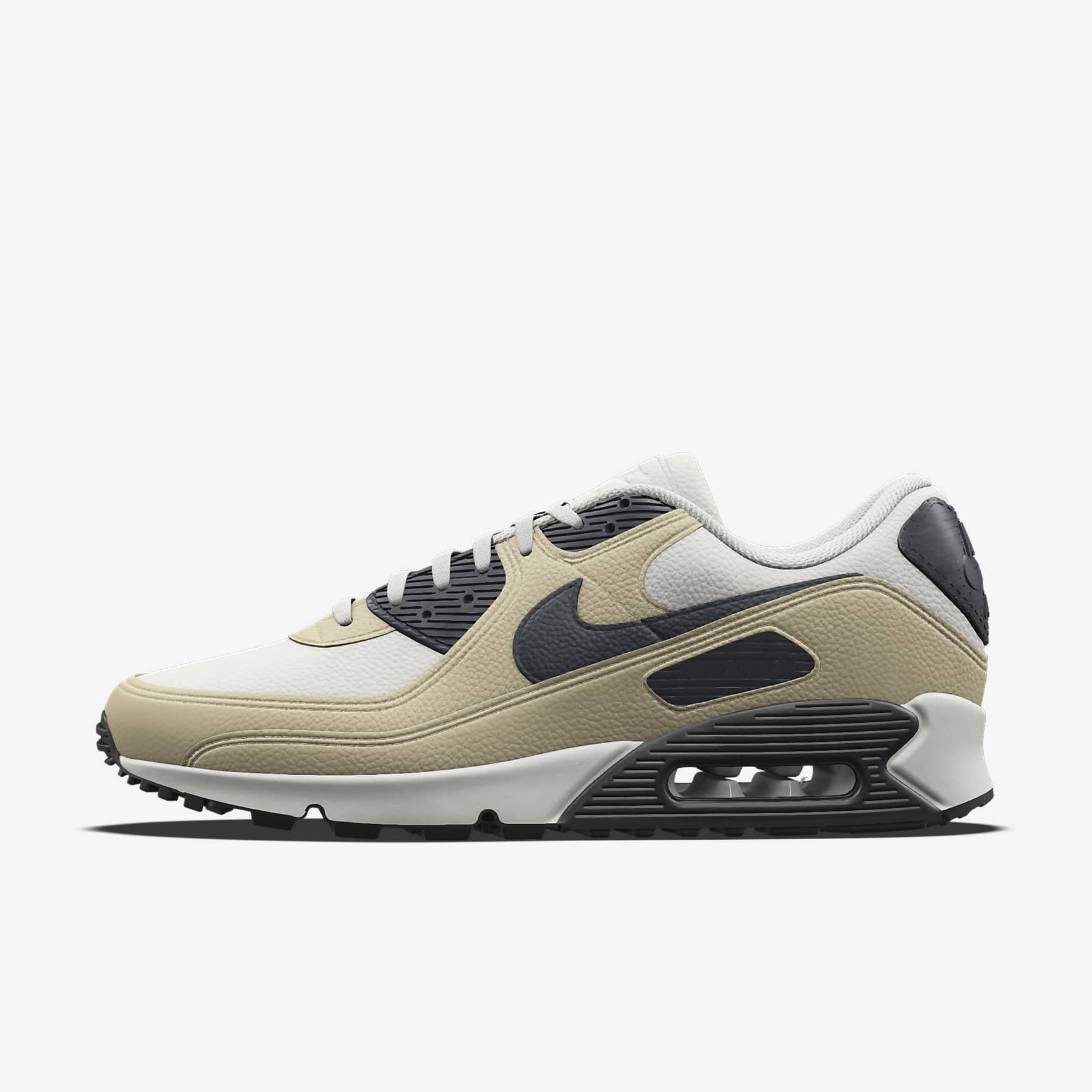 Lace up and add your touch to the sneaker revolution. Produced at the cross-section between art, music and culture, the Air Max 90 is now yours to customise. Choose classic leather or add a little summertime flair with canvas. Give it a makeover with your fave colours. Then add a personalised message and let the shoe that helped define the '90s speak for you. What's Your Base? Leather, canvas or a mix of both—apply a vintage finish to the time-tested Air Max 90 with a choice of durable materials. Make It One Colour Go monochromatic with select colours and match the midsole, outsole and upper. Own Your Narrative Add a personalised message on the heel and tell a piece of your story. Embroidered on a leather heel tab, you get up to 3 characters: numbers 0–9 and letters A–Z. Colour Your Waffle Gum sole, vintage Sail or coloured, whatever you choose for your Waffle outsole, it's sure to leave a mark. More Benefits * Originally designed for performance running, visible Air cushioning puts the history of comfort beneath your feet. * Rubber Waffle outsole delivers traction, durability and heritage style. * Padded, low-cut collar looks sleek and feels great. Nike By You Details * Our Members are one of a kind, and your shoes are too. Each pair is proudly made one at a time, by hand. Good things are worth the wait. * Your initials? A nickname? Or something else that's so you. Get personal with a customisable inscription on your shoes. Plus, your name is on the box. * With our 3D builder, watch your creation come alive as you experiment with all kinds of design choices. Air Max 90 The '90s were a turning point in culture—art, music, fashion and sneakers. The Air Max was at the forefront of the movement. With even more exposed Air cushioning and a bold new colour affectionately dubbed "Infrared", its revolutionised design helped the first 90 take on a life of its own. No longer just a running shoe, it solidified Air Max as a streetwear cornerstone.