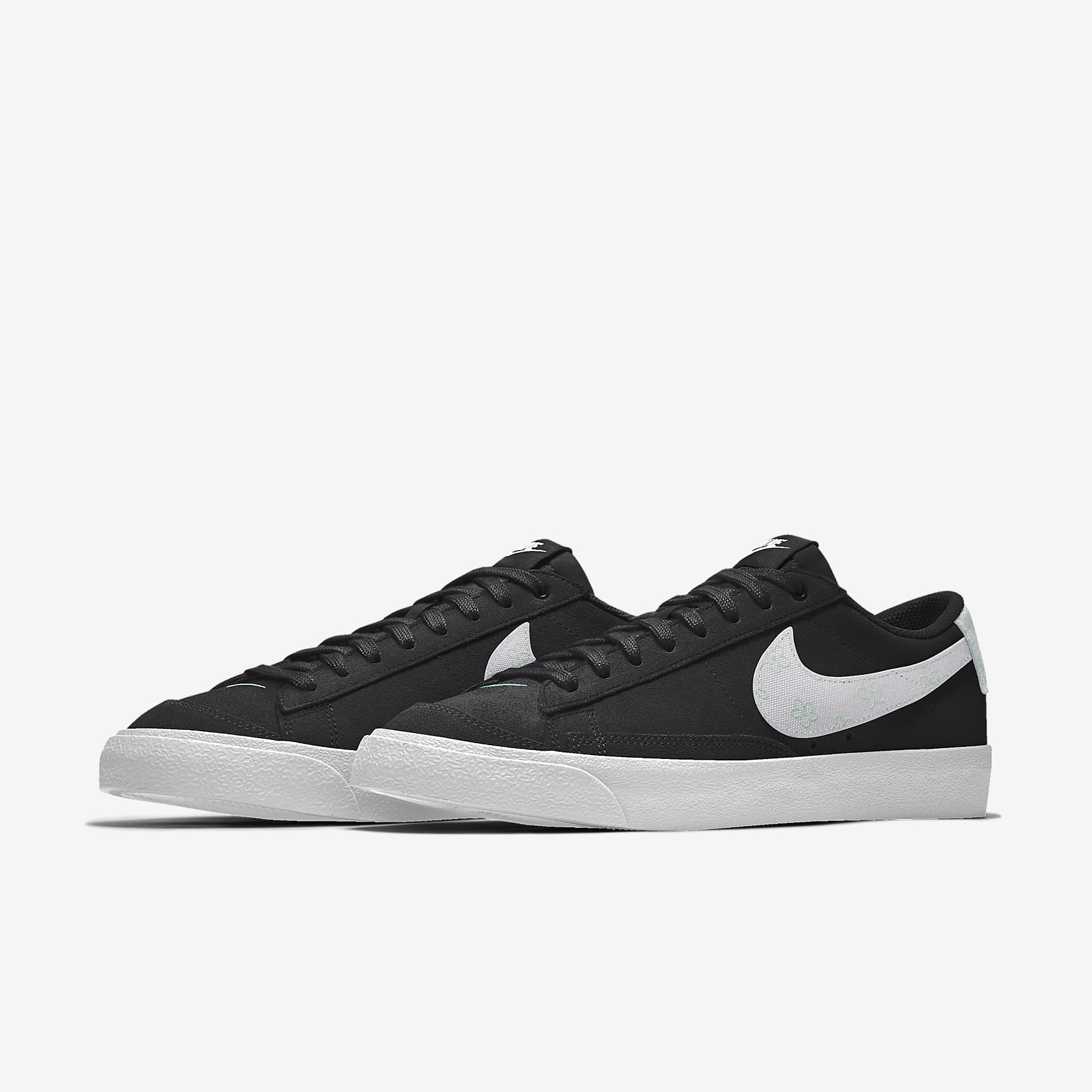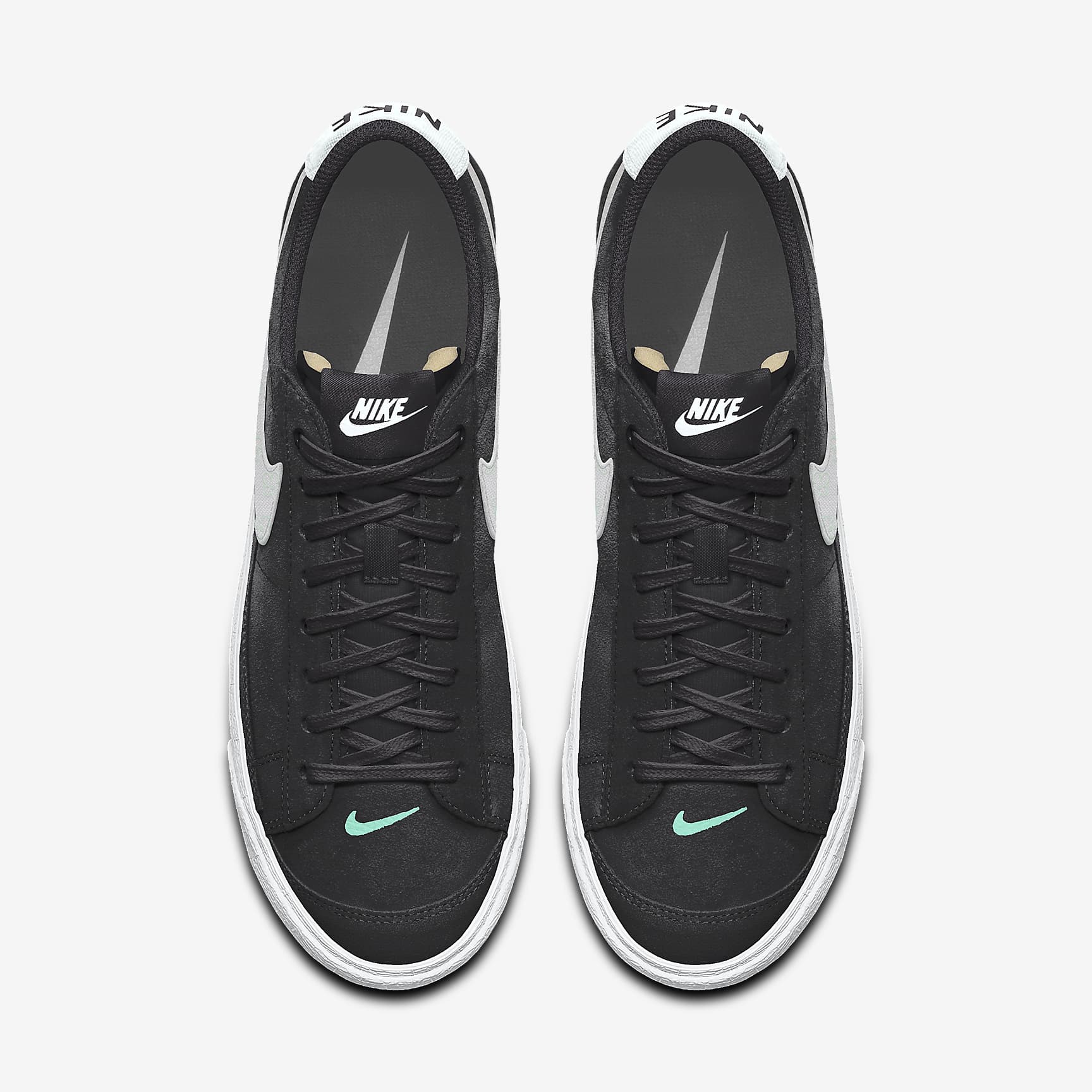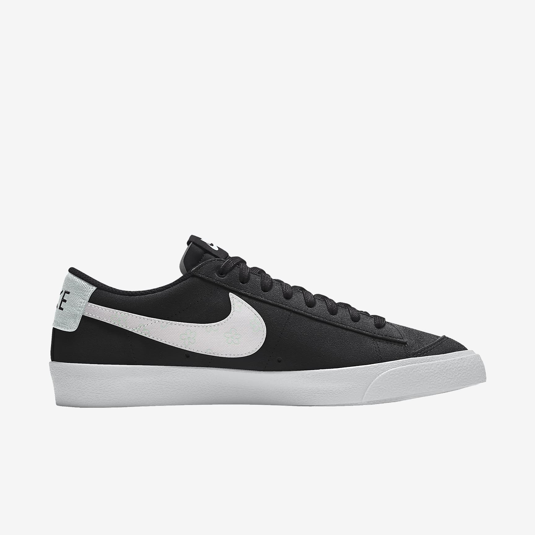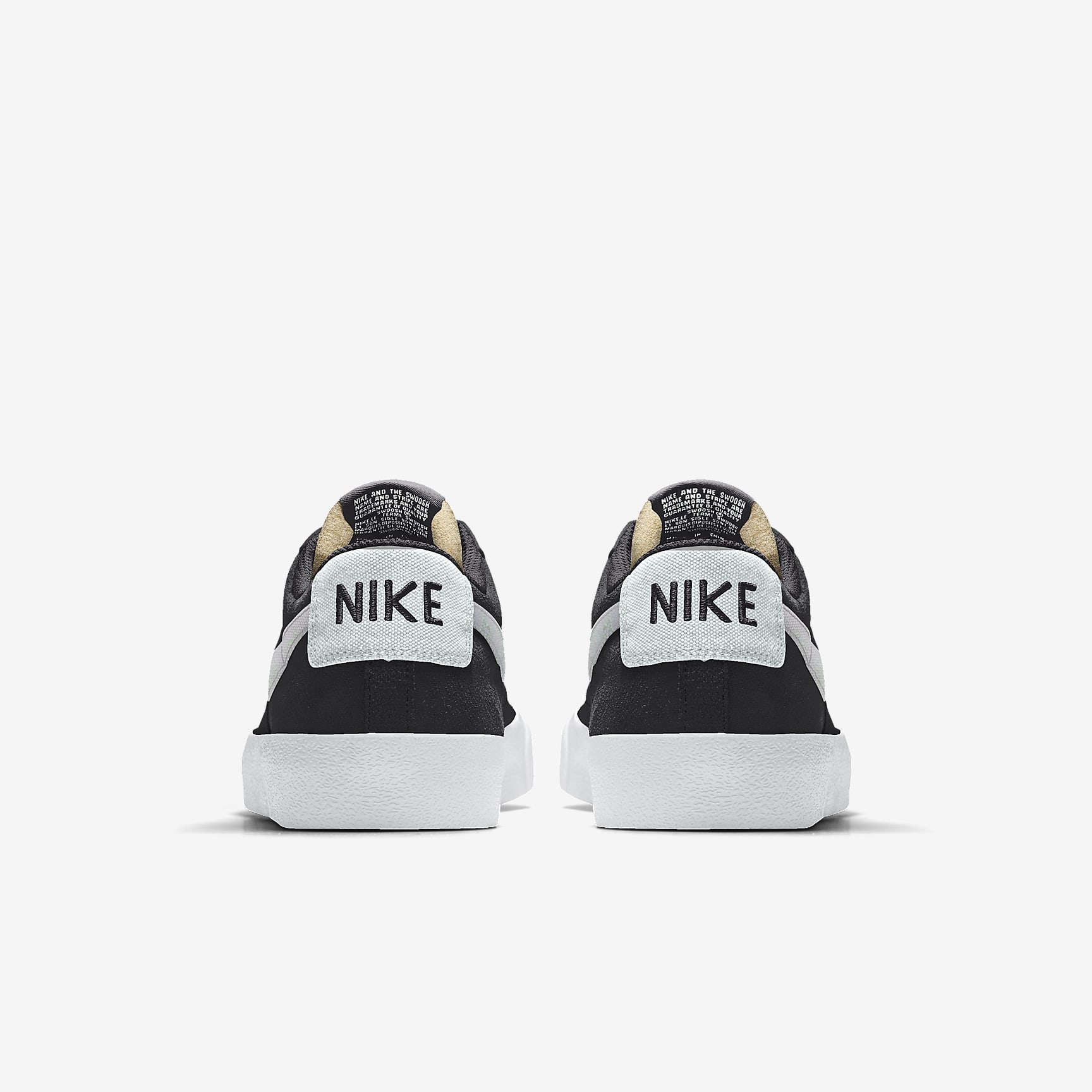 Praised for its classic simplicity and comfort, the original hoops look is now yours to customise. From a floral graphic on canvas to fun-loving summertime pastels, a variety of upper materials let you leave your mark. Tailor your look even further when you dive into the details: laces, colours and a personalised inscription are just some of the options you have. Leather and Canvas and Suede Oh My Choose between a variety of materials for the upper like suede or floral graphic on canvas (or mix and match fabrics to be a little more daring). Then add some joy and let your design pop with your fave colours. Zest Your Step From vintage Sail to classic White to something a little more eye-catching, select an outsole colour that matches your style. Own Your Narrative Add a personalised message on the heel and tell a piece of your story. Independent inscriptions on the left and the right let you say more. More Benefits * Customisable colours for the sidewall taping and laces add to the fun. * Originally designed for performance hoops, the durable construction, tough stitching and easy-entry lacing delivers comfort that lasts. * Padded, low-cut collar looks sleek and feels great. * Vulcanised construction fuses the outsole to the midsole for a streamlined look that's flexible and breaks in easily. * Solid rubber outsole with herringbone pattern adds traction, durability and heritage styling. * Finish off your design with embroidered mini Swoosh logo options for the toe. Nike By You Details * Our Members are one of a kind, and your shoes are, too. Each pair is proudly made one at a time, by hand. Good things are worth the wait. * Your initials? A nickname? Or something else that's so you. Get personal with a customisable inscription on your shoes. Plus, your name is on the box. * With our 3D builder, watch your creation come alive as you experiment with all kinds of design choices. Blazer Origins Originally introduced in 1972 as a basketball shoe, the Blazer has since transformed into a modern staple for skaters and sneakerheads alike. Maturing from a simple canvas high top to a leather mid top and casual low top, this shoe just gets better with age.