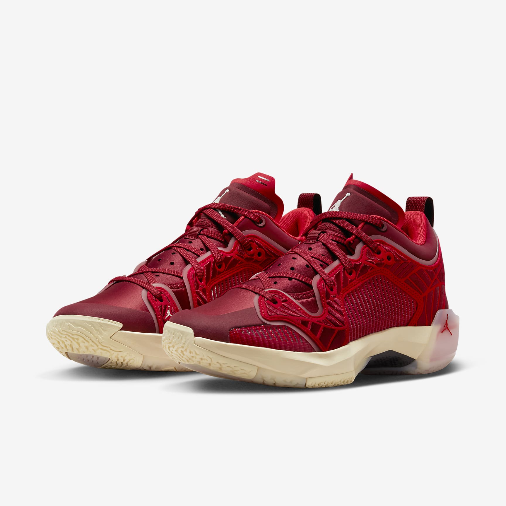 A basketball shoe for you and your unique game. We gathered insights from female ballers and integrated them into this edition of the AJ XXXVII Low, engineered specifically for women. Focusing the design on speed and flexibility, we swapped in full-length Formula 23 foam plus a single Zoom Air unit in the forefoot. The result? You'll feel closer to the ground, with added mobility and responsiveness. The lightweight upper features an ornate embroidery pattern that adds support (and looks cool, too). Performance, tuned for an uncompromised game—that's what we're about. Enhanced Flexibility Instead of a double stack of Nike Air, we went with a single Zoom Air unit, which offers you a smoother heel-to-toe transition. More flexibility means greater on-court mobility and agility. Ten Toes Down Full-length Formula 23 foam helps you feel lower to the ground and creates a responsive ride underfoot for more court feel and energy return. Light and Secure The strong, lightweight upper—designed to mimic the support given by a taped-up ankle—is made from layers of leno-weave fabric and strong plastic ribbon that hold tight without weighing you down. An ornate embroidery pattern adds even more support. More Benefits * The top-line shape and Jordan Air on the tongue nod to the AJ7's iconic look. * Upper design is a throwback to the exoskeleton style of the AJ7.