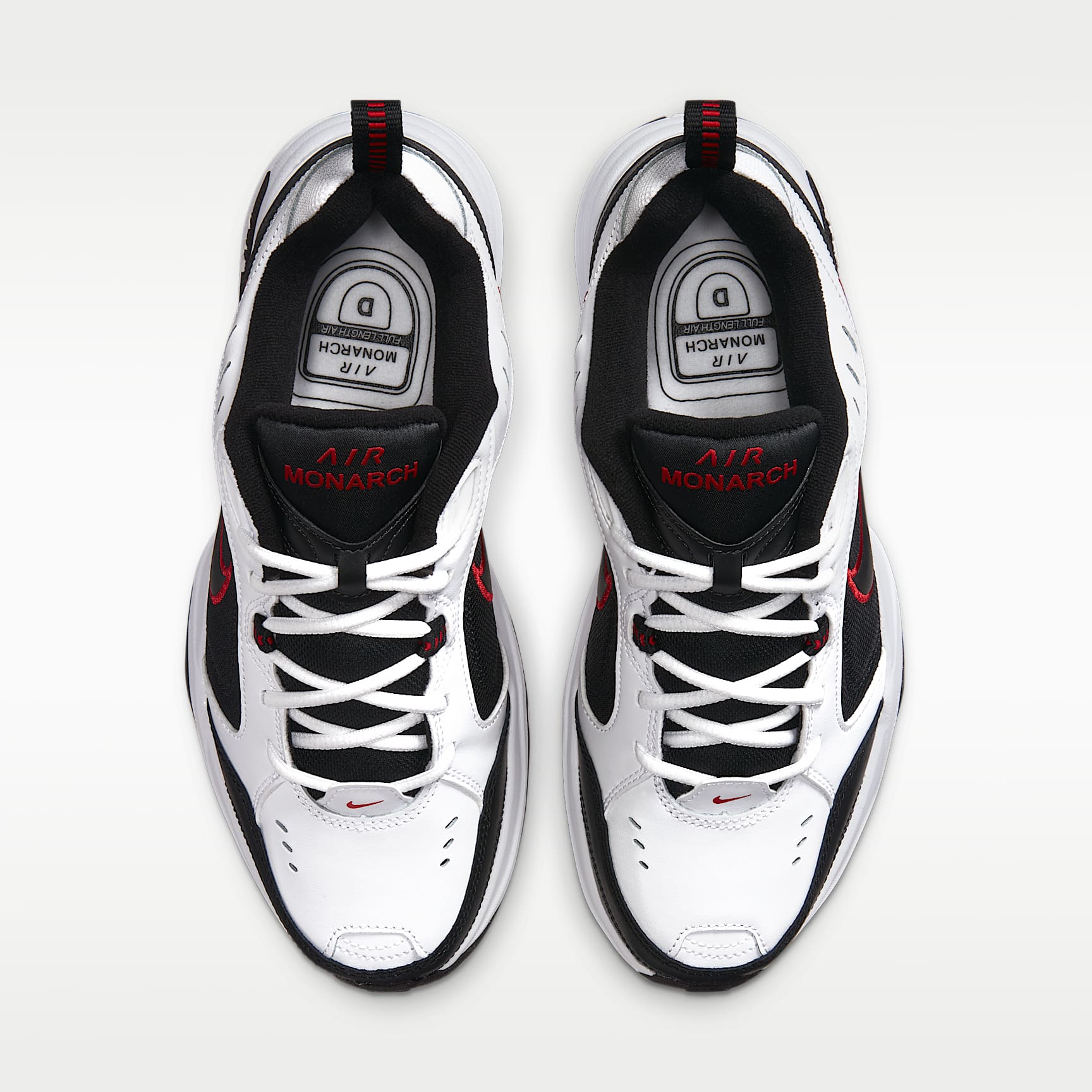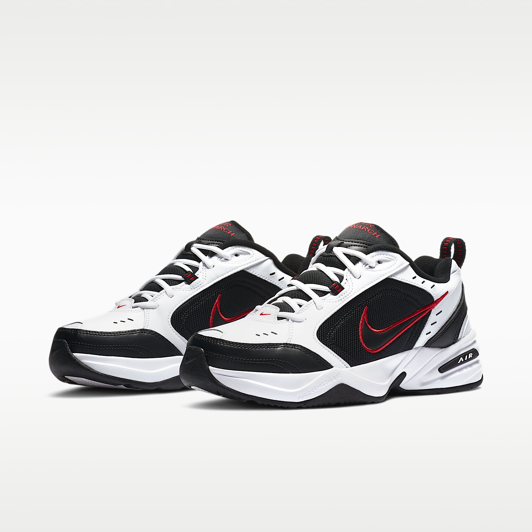 TOTAL SUPPORT FOR MOVING IN COMFORT. Nike Air Monarch IV sets you up for working out with durable leather on top for support. Lightweight foam teams up with Nike Air cushioning for comfort in every stride. Benefits * Leather and synthetic leather are durable with a classic look. * Full-length encapsulated Air-Sole unit cushions for comfort and support. * Solid rubber sole is durable and provides traction over varied surfaces.