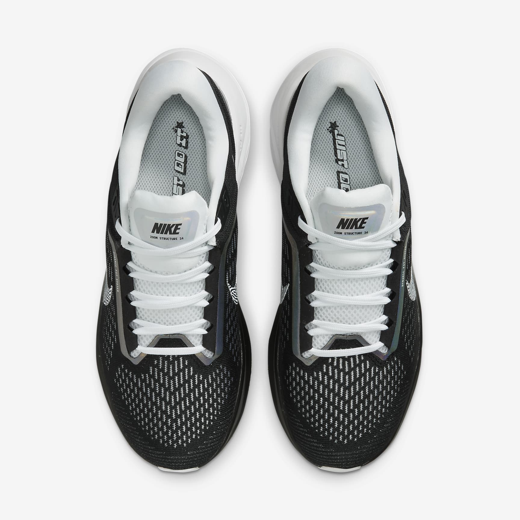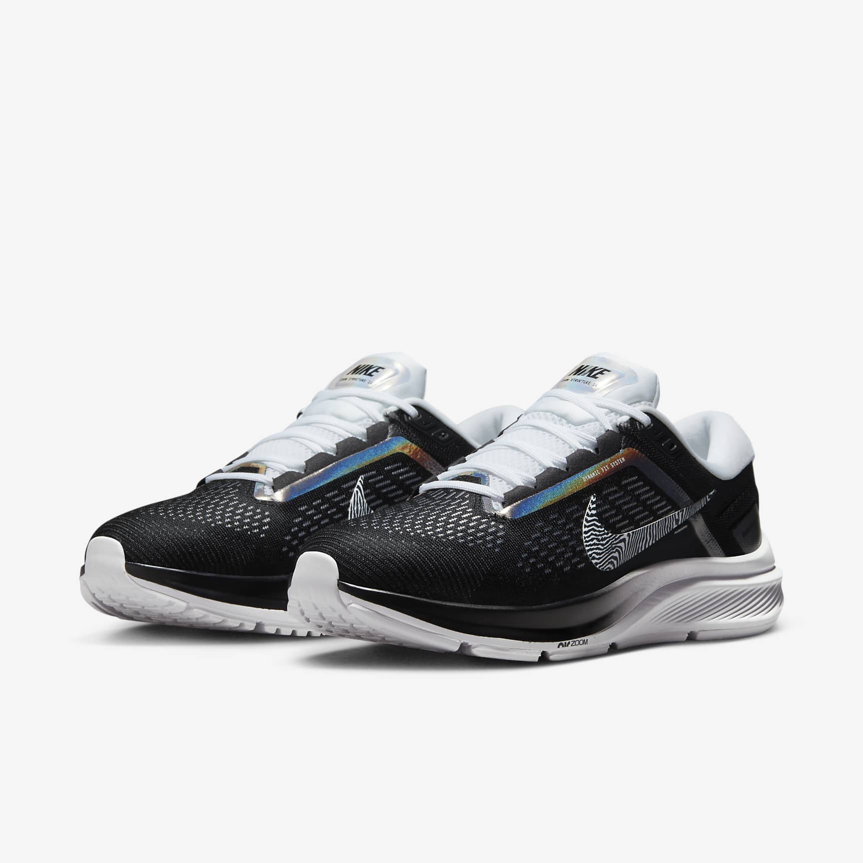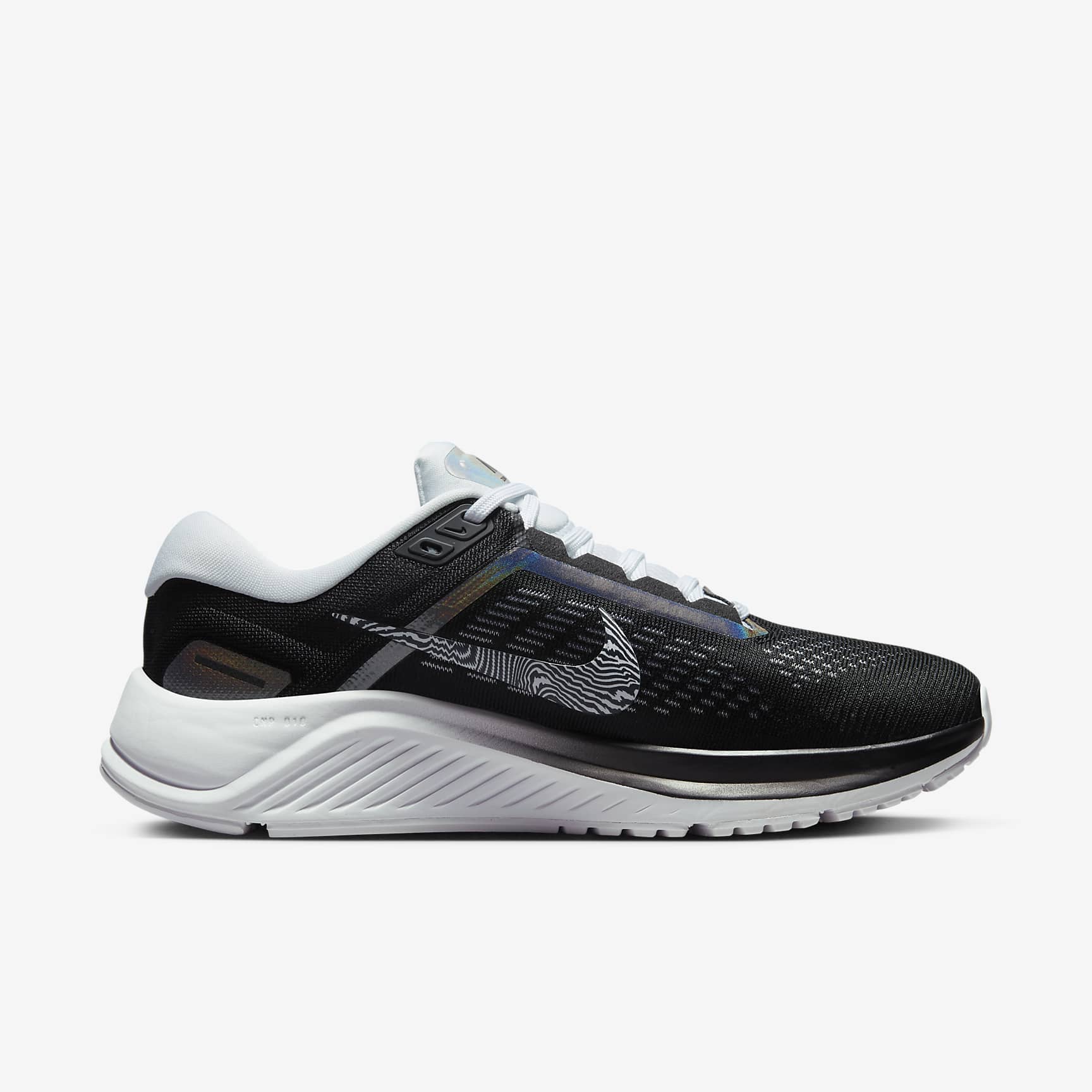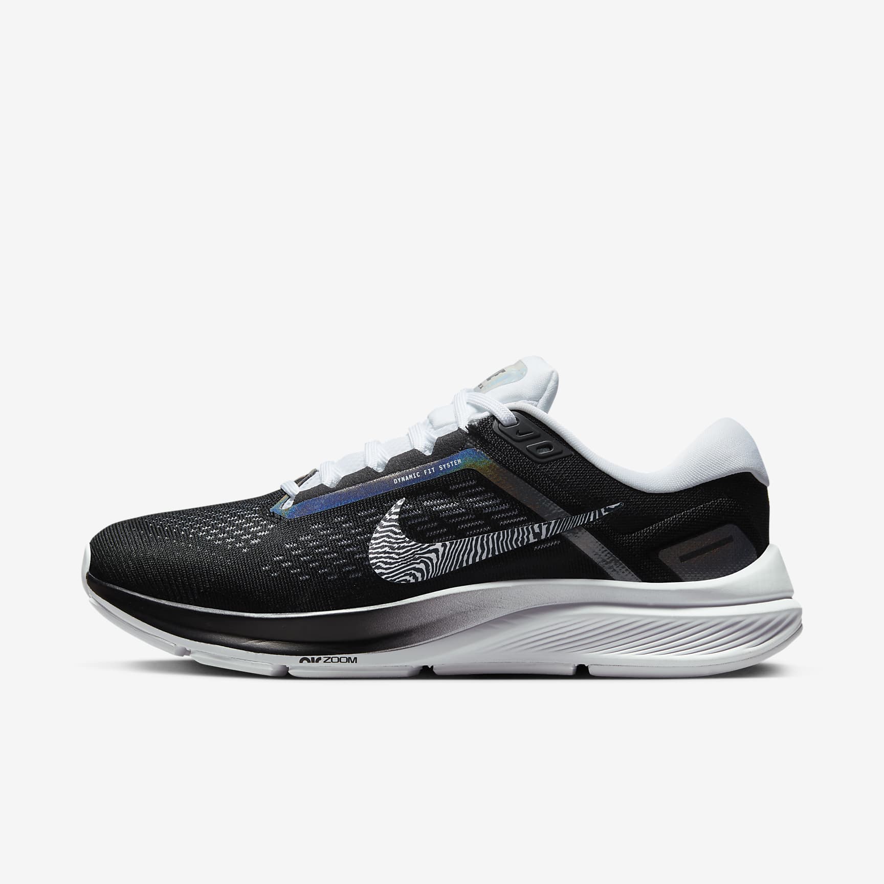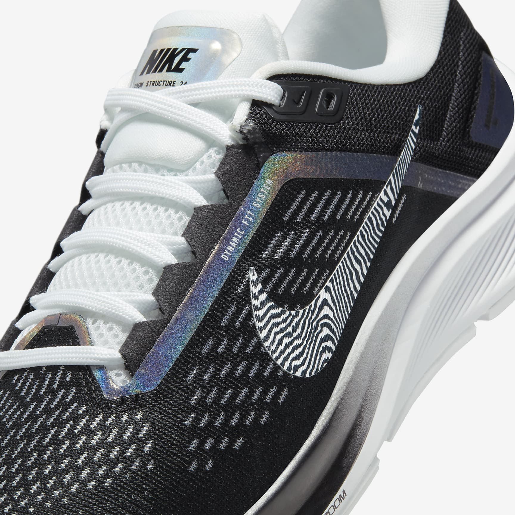 With stability where you need it and cushioning where you want it, the Nike Air Zoom Structure 24 Premium has you ready to hit the road. We tested hundreds of runners to design the crash pad under your heel that creates a cushioned, smooth transition from heel to toe. Those insights also created an airy upper with breathability right where you need it. Throwback Themed This flashy design, with its iridescent accents and a soundwave-themed graphic in the Swoosh logo that nod to a nostalgic era in music, will help you reset and get in the zone as your favourite anthem powers you to new gains. Cushioned Responsiveness A Zoom Air unit in the forefoot offers responsive cushioning. Every step helps create energy return to help drive you forwards. It's combined with a foam midsole for a firm, yet smooth and stable feeling as your foot hits the ground. Backed By Data Data from hundreds of runners helped inform the crash pad placement at the heel. It helps provide extra cushioning for heel-to-toe transitions, supporting runners that tend to overpronate. We used that info to put cooling exactly where you need it on the upper. Flexible and Tough The rubber sole provides durability for miles. Grooves in the forefoot to create flexibility and vertical grooves down the side help create stability. More Benefits * A softer and more durable lining around the heel and ankle helps keep socks from bunching up when you run. * Engineered mesh—stronger and more flexible than regular mesh—provides durability. * Cushiony tongue helps pad the laces. * Moulded heel securely hugs your foot. * Laces can be cinched down for a secure feel.