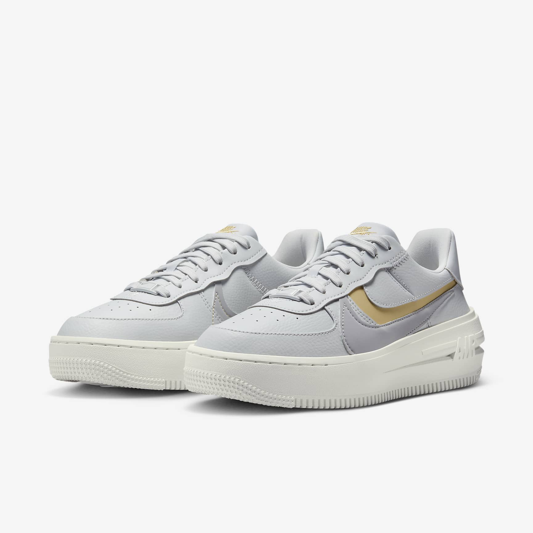 WHAT'S YOUR PLATFORM? Let classic, easy-to-wear AF-1 style rise to the occasion with the Nike Air Force 1 PLT.AF.ORM. Its elegantly shaped and lifted midsole delivers a proud, new voice to the hoops franchise. The leather on the upper breaks in easily and ages to soft perfection while the sculpted collar and pillowy heel keep it comfy. Captivate your audience. Rise Up The lifted midsole brings a new dimension to the AF-1 franchise, elevating your look while remaining easy to style. The soft foam underfoot adds to the comfort. Tried and True For 40 years, the Air Force 1 has been your go-to shoe. Keeping the features you love best—crisp leather, heritage details and performance comfort—it delivers a time-tested look you can wear again and again. Performance Comfort Originally designed for performance hoops, Air cushioning in the heel delivers lasting comfort. More Benefits * Fresh details like new dubrae and super-soft liner refine the look and feel of the shoe that has captured the eyes of the streets for 40 years. * Padded, low-cut collar looks sleek and feels great. * Rubber outsole with classic pivot circle pattern adds traction and durability. * New last with tapered toe box gives you a fit you'll fall in love with. Product Details * Traditional lacing * Foam midsole * "AIR" embossed on midsole * New design on Dubrae Air Force 1 Origins Debuting in 1982, the AF-1 was the first basketball shoe to house Nike Air, revolutionising the game while rapidly gaining traction around the world. Today, the Air Force 1 stays true to its roots with the same soft and springy cushioning that changed sneaker history.