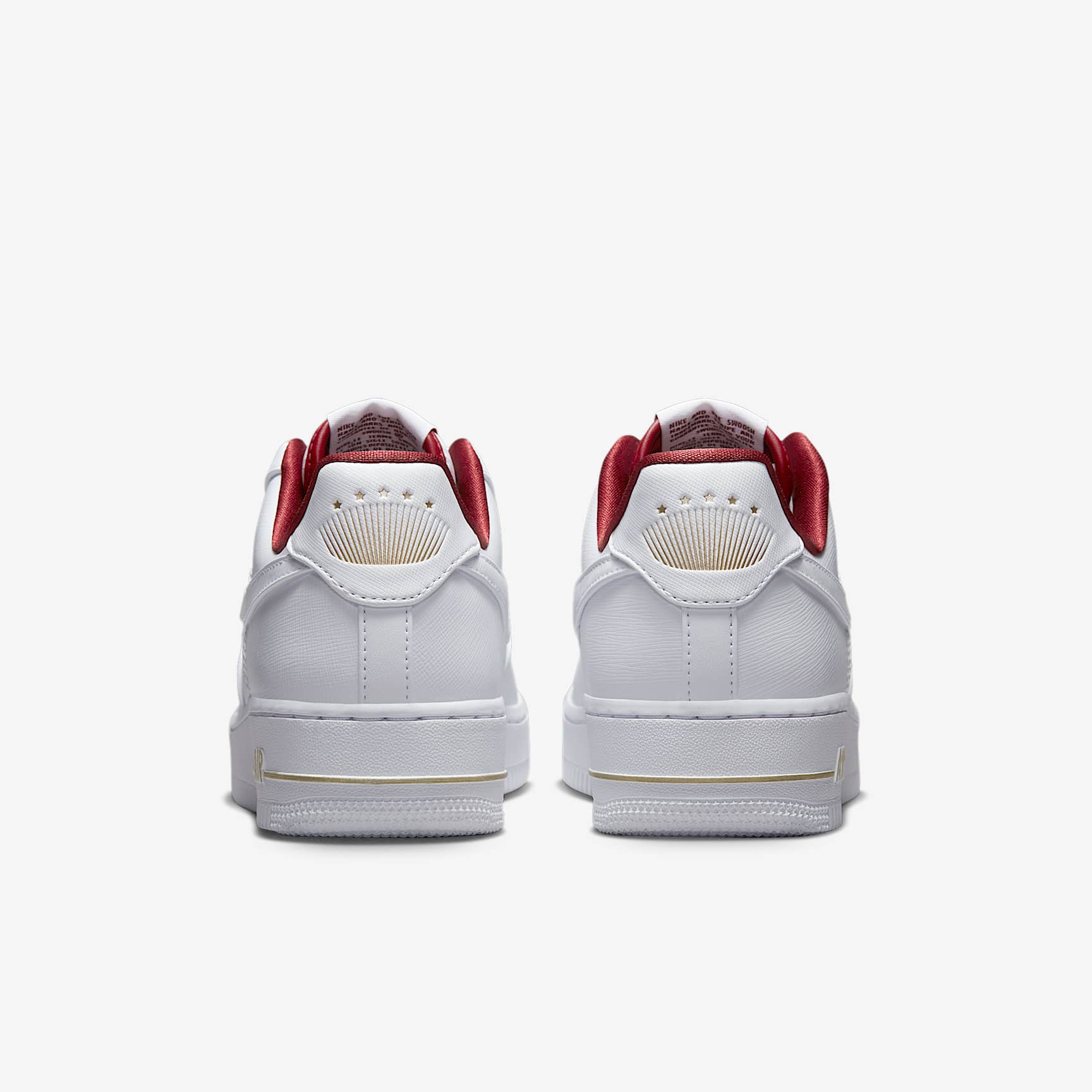 You're not just in the game, you're leading it. Celebrating women b-ball players with that off-court lifestyle embedded into everyday life, the AF-1 returns with nothin'-but-net style. Textured leather breaks in beautifully and adds a premium touch. And let's not forget the removable medallion. It can be tucked into the pocket on the Swoosh, worn as a pendant or added to a key ring—the options are endless. Benefits * 5 stars represent the players on the court, while the sunray graphic symbolises lifting up and supporting other women. * Cross-hatched leather adds texture and durability. * Nike Air technology absorbs impact for cushioning with every step. * Rubber outsole with heritage hoops pivot circles adds traction and durability. * Padded, low-cut collar looks sleek and feels great. Air Force 1 Debuting in 1982 as a basketball must-have, the Air Force 1 came into its own in the '90s. The clean look of the classic white-on-white AF-1 was endorsed from the basketball courts to the street and beyond. Finding its rhythm in hip-hop culture, releasing limited collabs and colourways, Air Force 1 became an iconic sneaker around the globe. And with over 2,000 iterations of this staple, its impact on fashion, music and sneaker culture can't be denied.