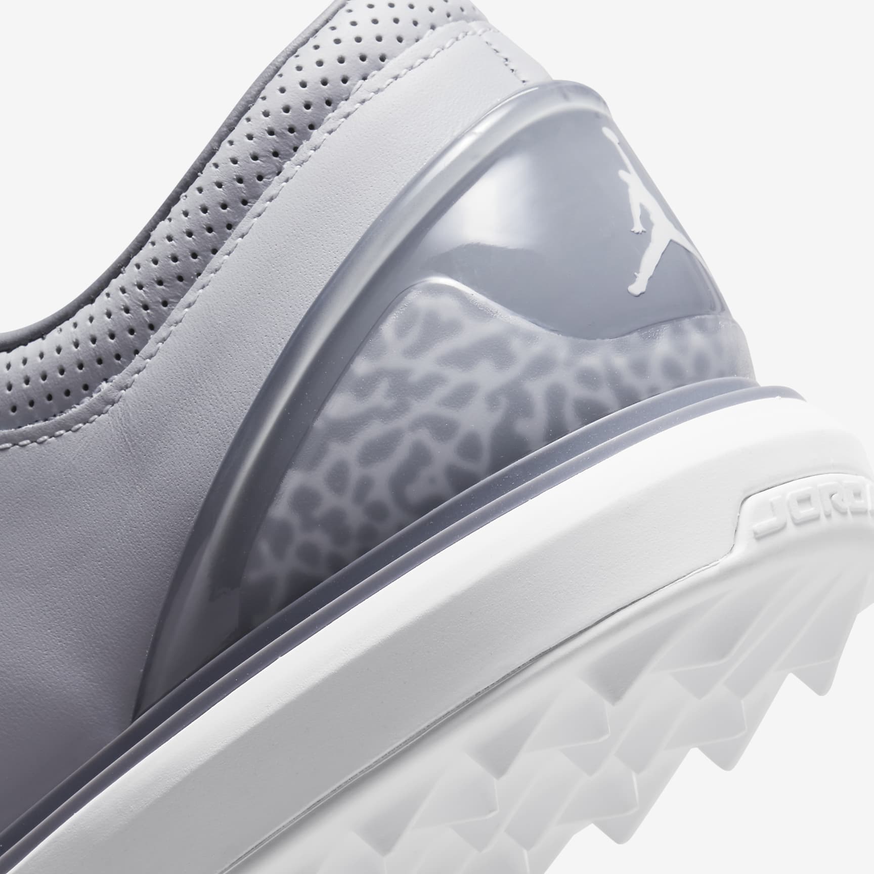 ALL-DAY GOLF. A request from MJ himself, the Jordan ADG 4 infuses an incredibly classic silhouette with retro Jordan flavour. Supple, full-grain leather shows off the iconic elephant print on the heel. The rubber sole has an integrated traction pattern that perfectly pairs the grip you need with the versatility and comfort you want. Benefits * Full-grain leather is soft and supple. * Nike React technology is a lightweight, durable foam that delivers a smooth, responsive ride. * Elephant print on the heel counter adds iconic hoops style. * Rubber sole has an integrated traction pattern that delivers excellent grip on a variety of surfaces.