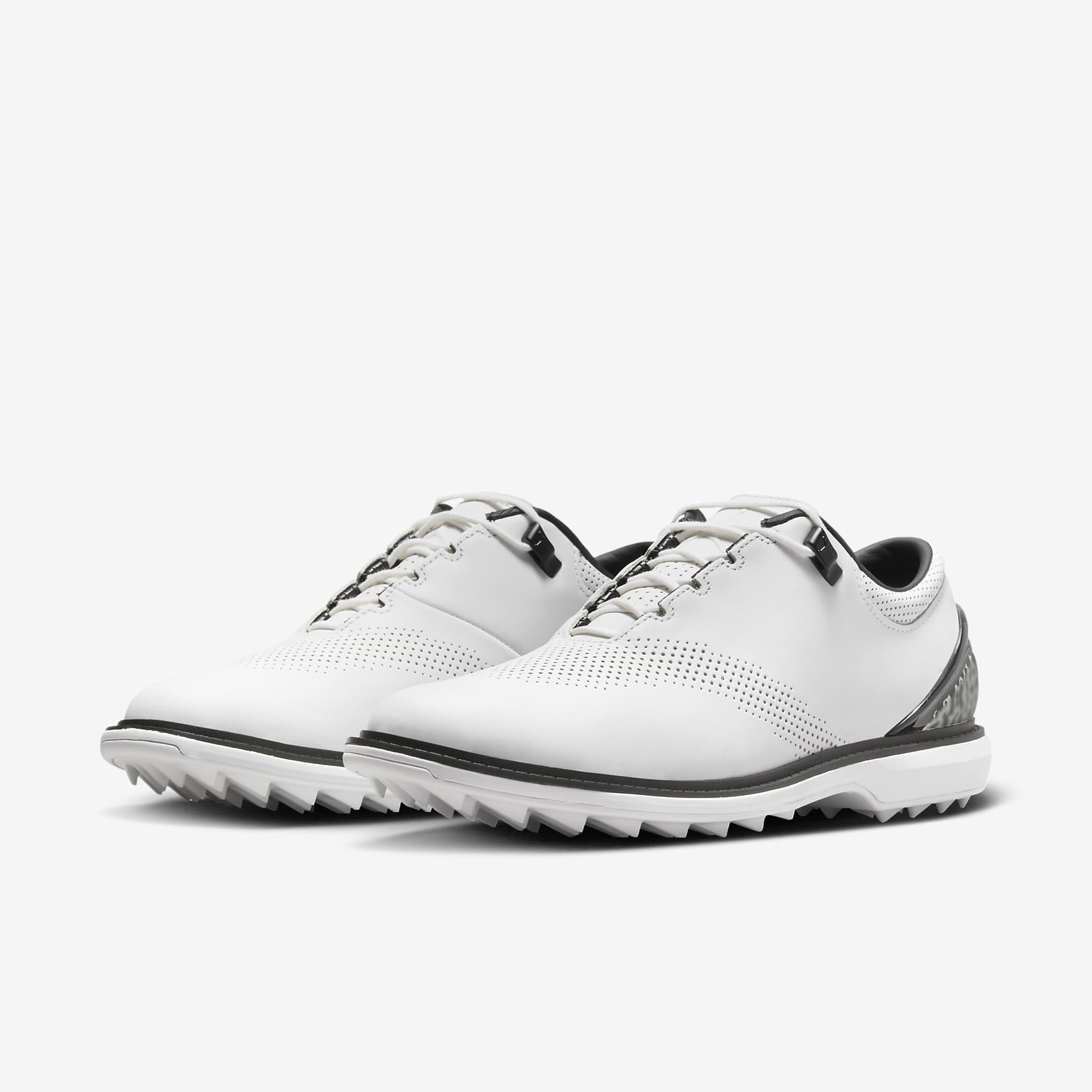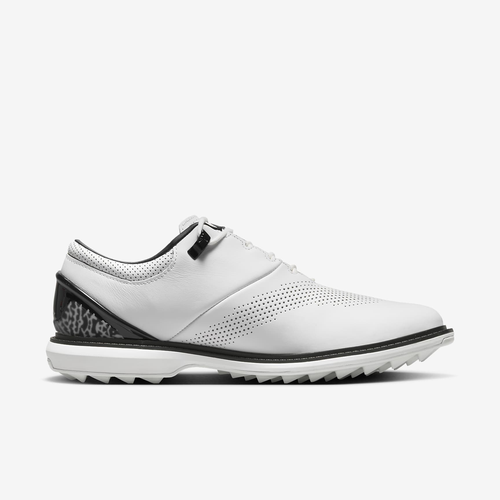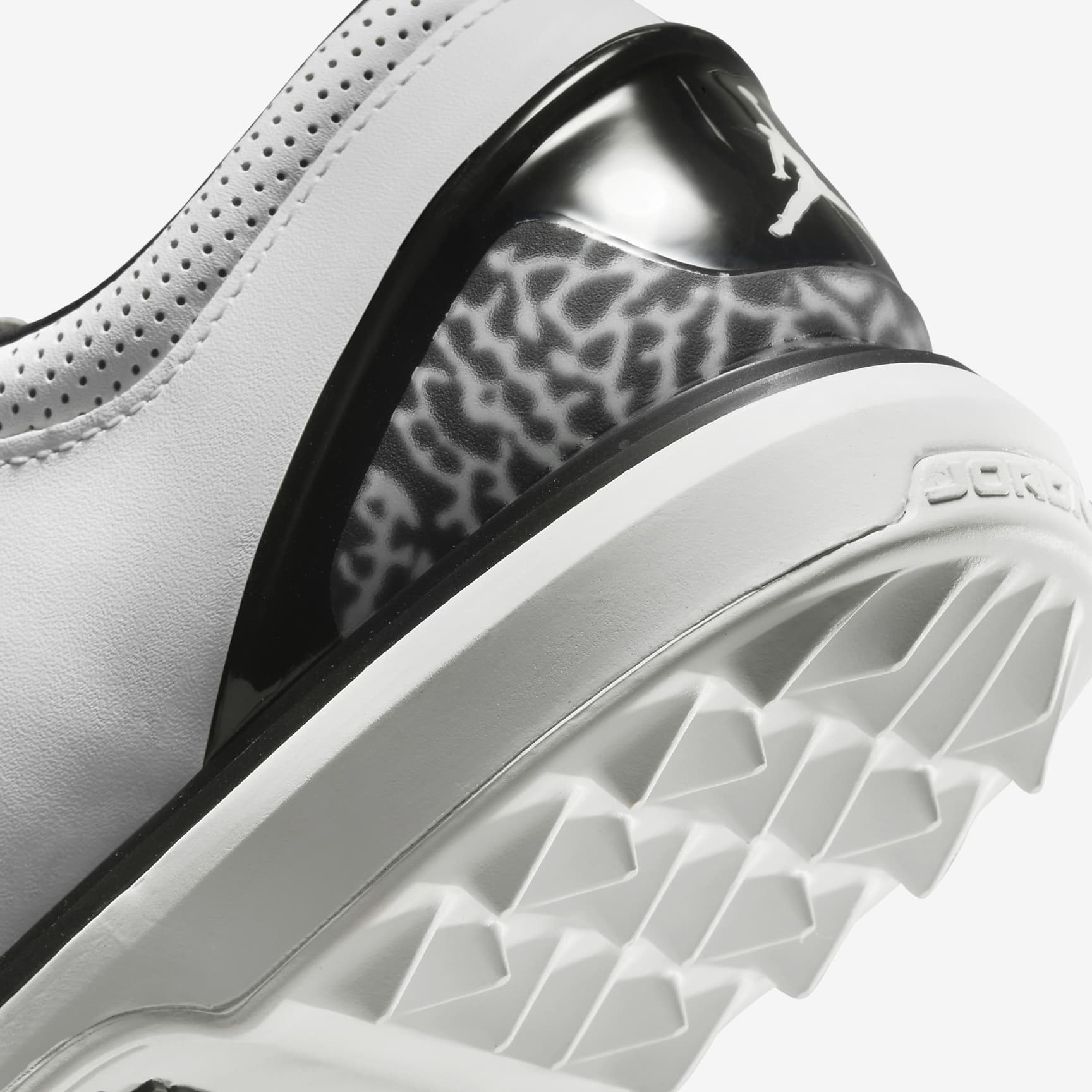 ALL-DAY GOLF. A request from MJ himself, the Jordan ADG 4 infuses an incredibly classic silhouette with retro Jordan flavour. Supple, full-grain leather shows off the iconic elephant print on the heel. The rubber sole has an integrated traction pattern that perfectly pairs the grip you need with the versatility and comfort you want. Benefits * Full-grain leather is soft and supple. * Nike React technology is a lightweight, durable foam that delivers a smooth, responsive ride. * Elephant print on the heel counter adds iconic hoops style. * Rubber sole has an integrated traction pattern that delivers excellent grip on a variety of surfaces.