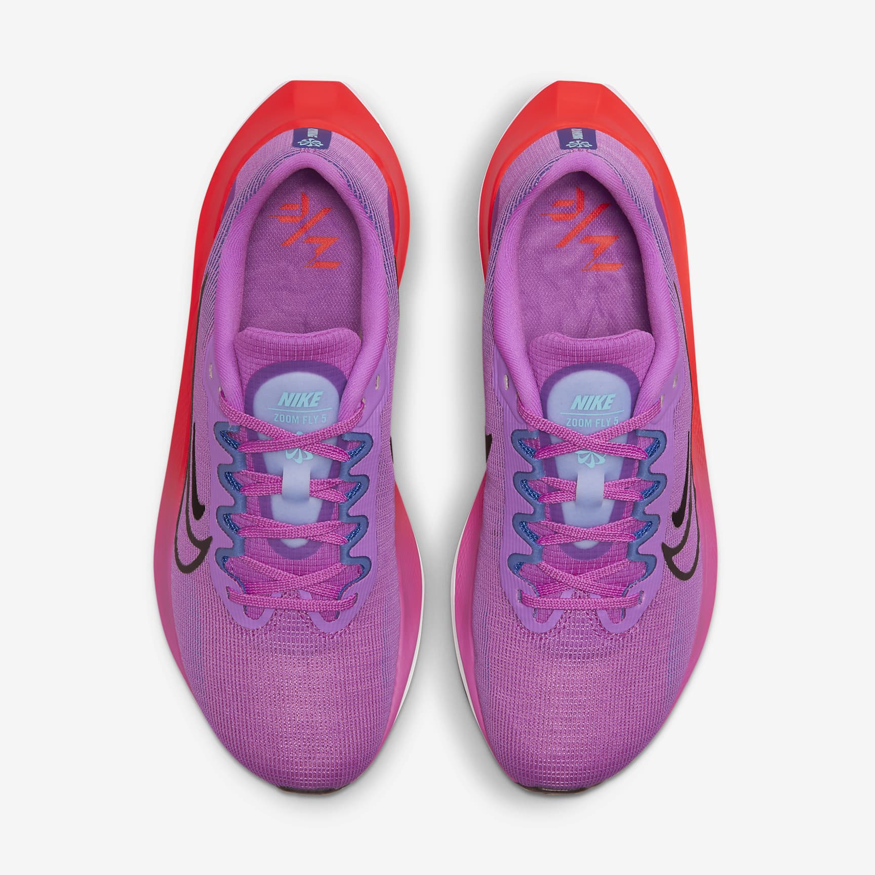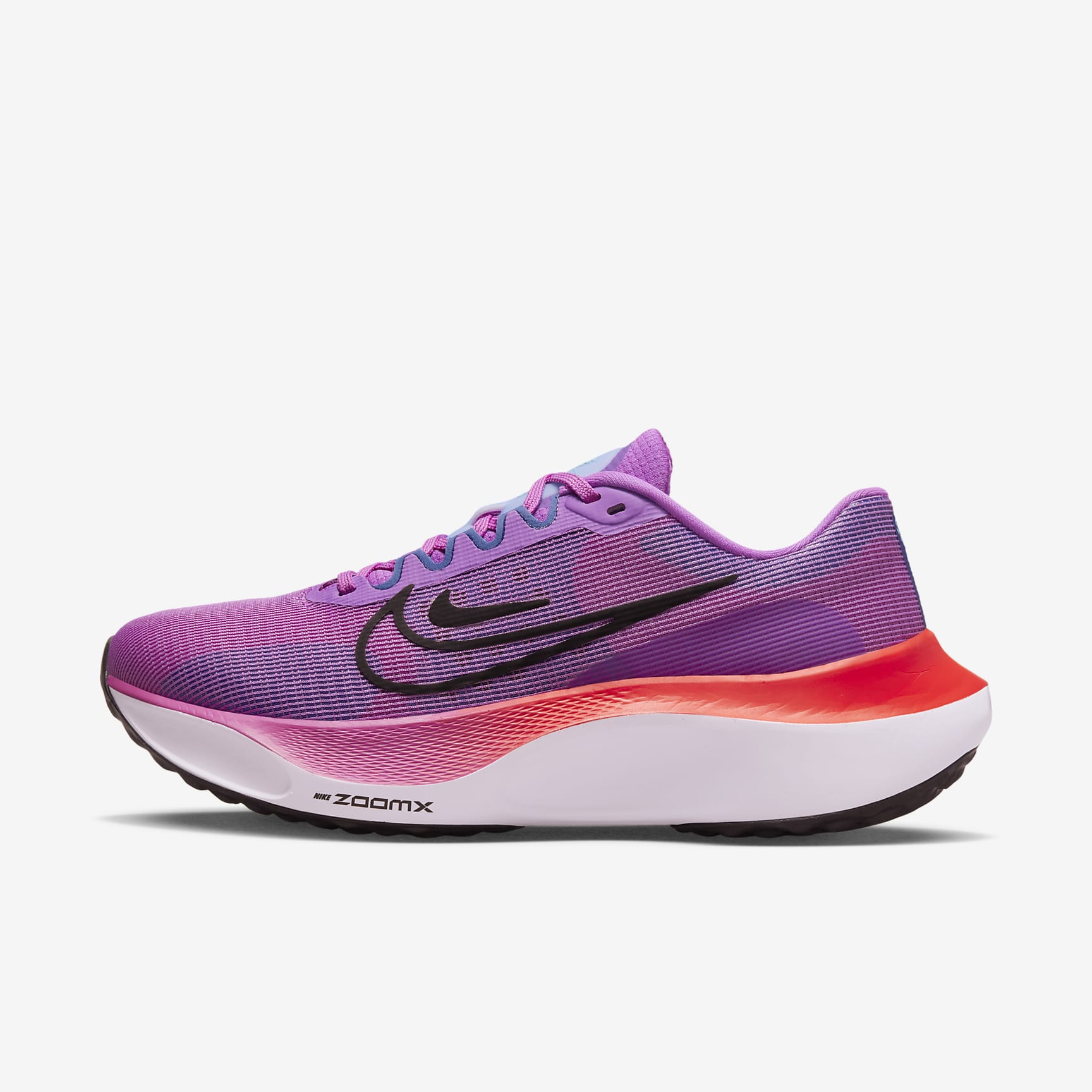 Bridge the gap between your weekend training run and race day in a durable design that can be deployed not just at the starting line of your favourite race but in the days and months after your conquest. It offers comfort and reliability but with a propulsive sensation that'll help you feel fast and fresh. That kind of versatility is uncommon in the running arena. But who said you can't have it all? More Bounce Newly implemented ZoomX foam in the midsole takes an already respected, trusted shoe to another performance level that wasn't present in the Zoom Fly 4. The addition makes for a lighter, more responsive cushioning system. Take advantage of these all-purpose traits that help you run easier and faster and have more fun on your runs. Stay in Rhythm Carbon-fibre plate delivers a propulsive sensation and a smooth transition at a variety of paces. The plate provides a sort of roll-forwards feel that makes you want to take on the next step. Stability When You Need It Both the forefoot and heel offer slightly wider bases for a stable platform, so you can tackle turns and long runs with confidence. Product Details * Dynamic lace-up fit and supportive containment in the midfoot wrap around your foot for a contoured and secure feel. * The upper is made from lightweight mesh for a softer, more breathable feel that contours to your foot.