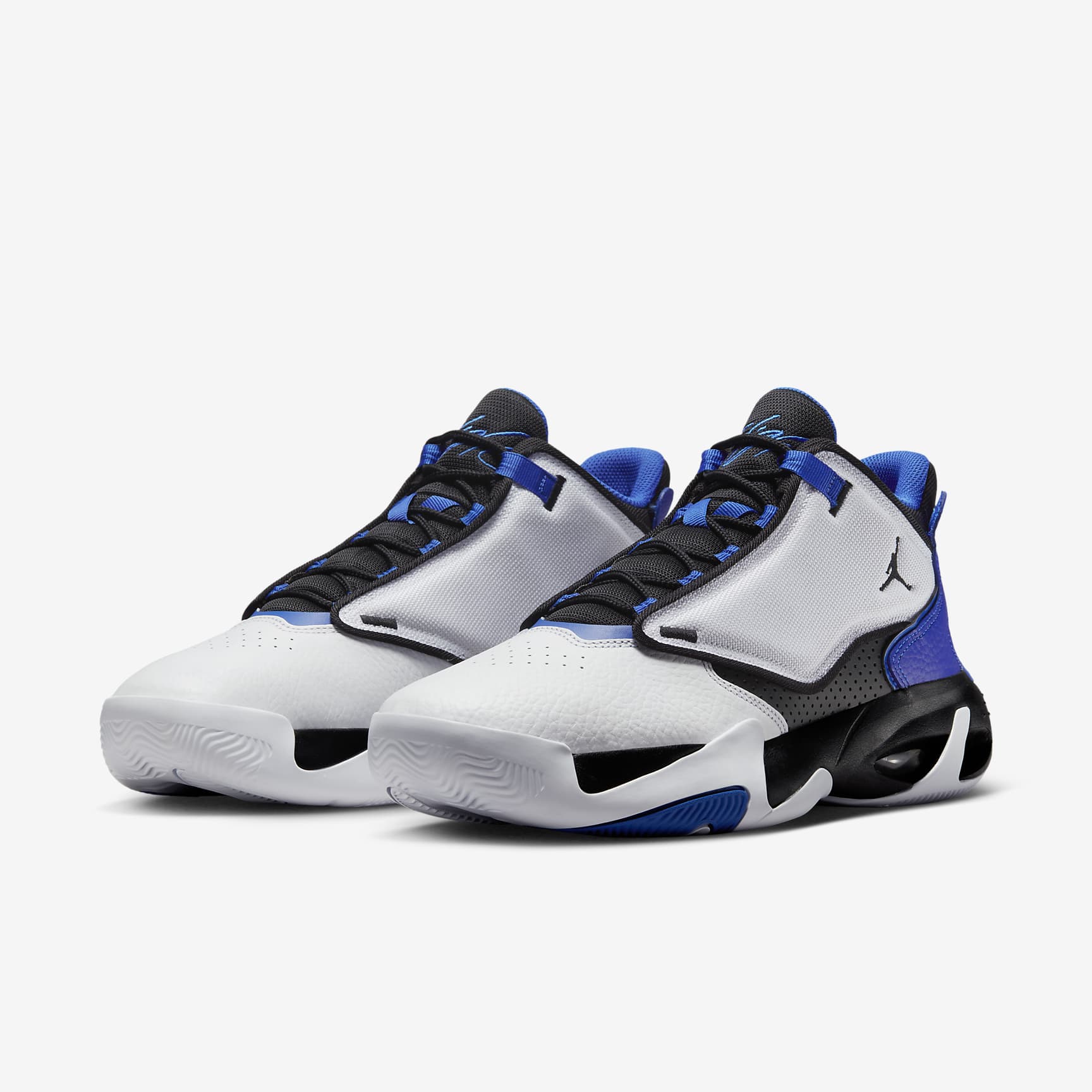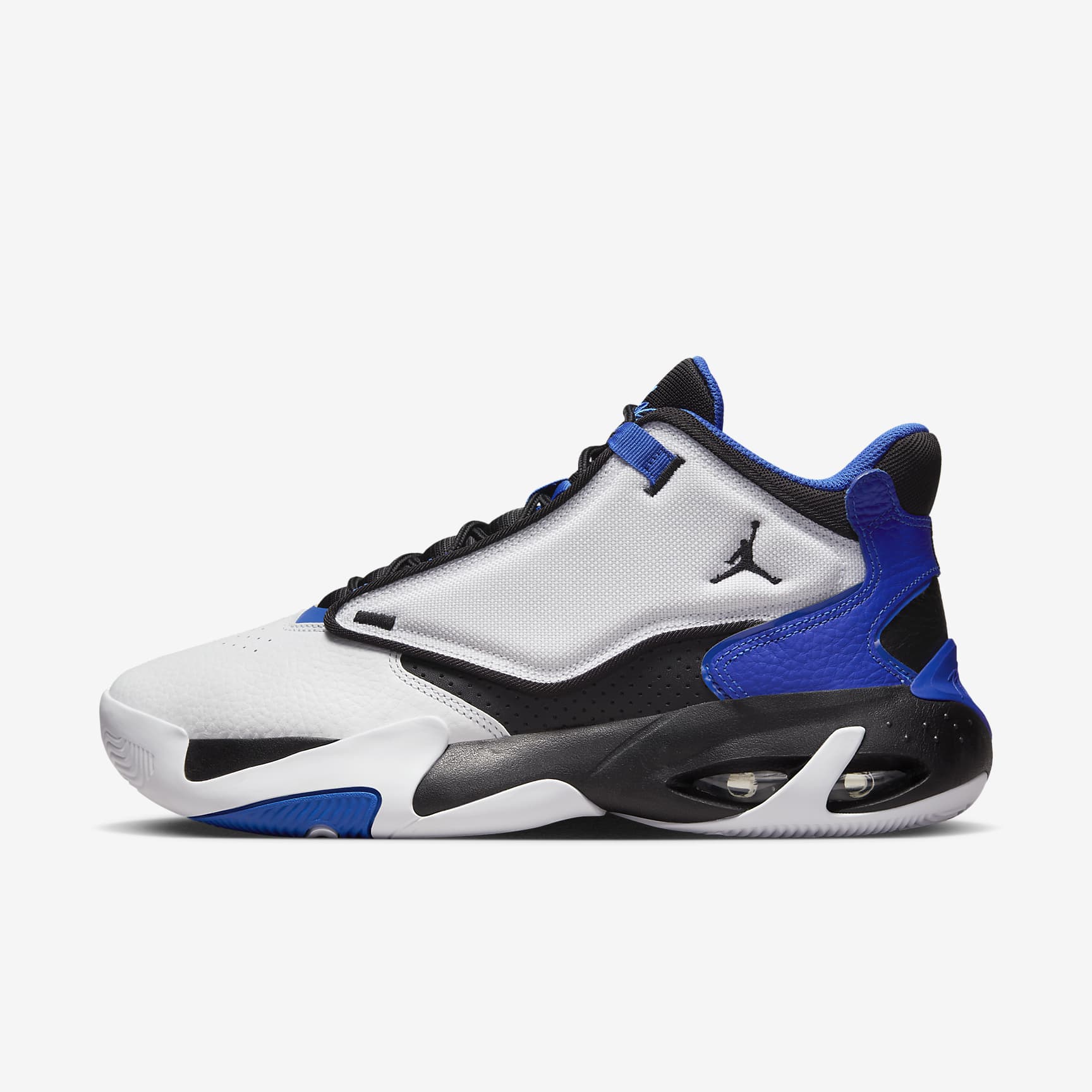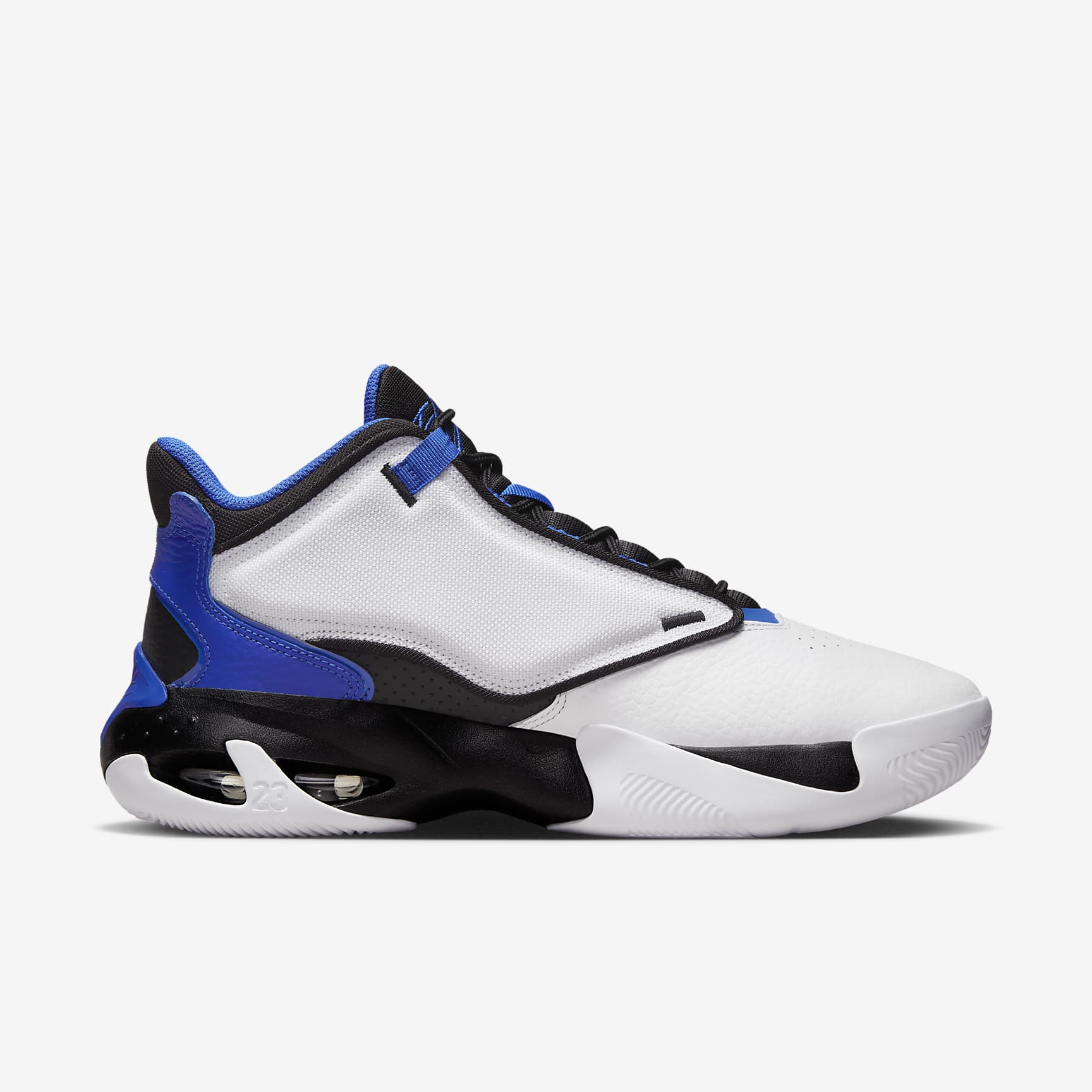 The lightweight cushioning found in this next generation basketball shoe takes cues from its predecessors. Take flight on the court with timeless style and cloud-like heel support. Benefits * Genuine leather, synthetic leather and polyester combine in the upper for exterior cushioning. * Classic branding shows up in moulded details and embroidered graphics. * Visible Max Air unit supplies lightweight impact cushioning and comfort beneath your heel. * Six futuristic waves of tread on the rubber outsole provide multi-surface traction. Product Details * Rubber outsole * Not intended for use as Personal Protective Equipment (PPE)