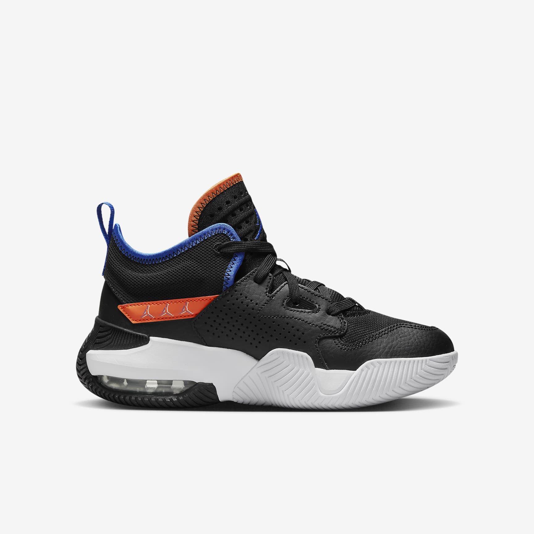 Gear up in Jordan heritage. With details drawn from decades of shoes, the Stay Loyal 2 is a collage of cool. Mesh and leather upper gives you stability without the worry of weighing you down. Air in the heel keeps you cushioned. Get out and play! Benefits * Nike Air technology absorbs impact for cushioning with every step. * Leather upper breaks in easily and makes for a long-lasting shoe. * Knit mesh toe lets your feet breath. Product Details * Jumpman logo heel band * Heel loop * Moulded eyelet detail