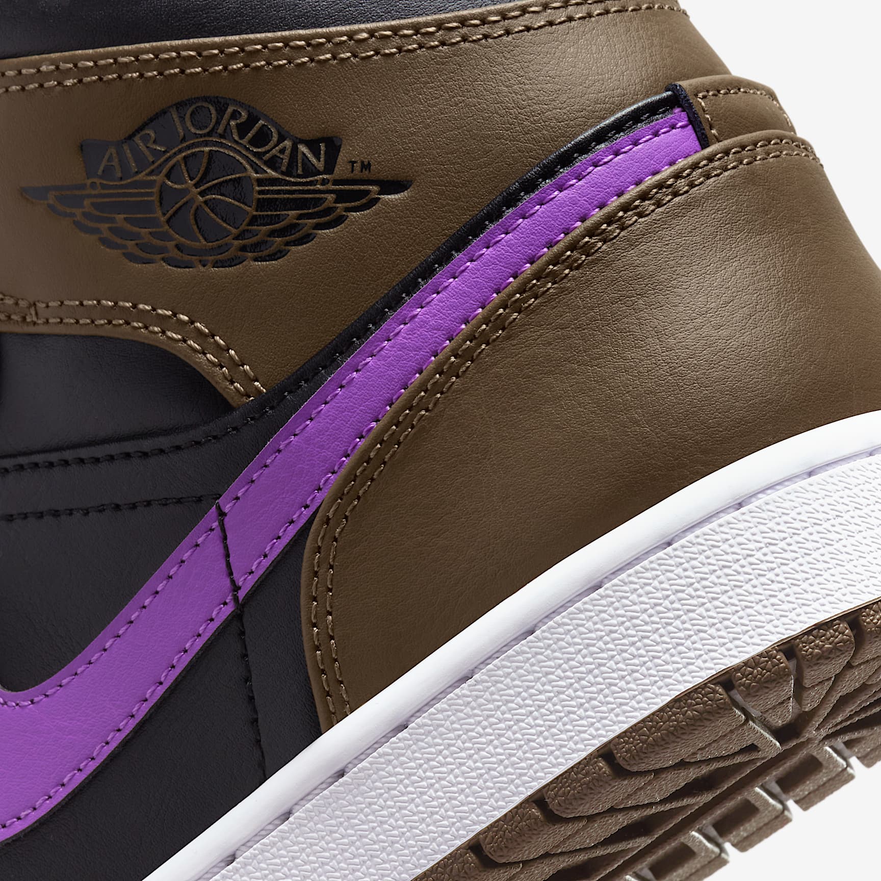 Inspired by the original AJ1, this mid-top edition maintains the iconic look you love while choice colours and crisp leather give it a distinct identity. Benefits * Leather, synthetic leather and textile upper for a supportive feel. * Foam midsole and Nike Air cushioning provide lightweight comfort. * Rubber outsole with pivot circle gives you durable traction.