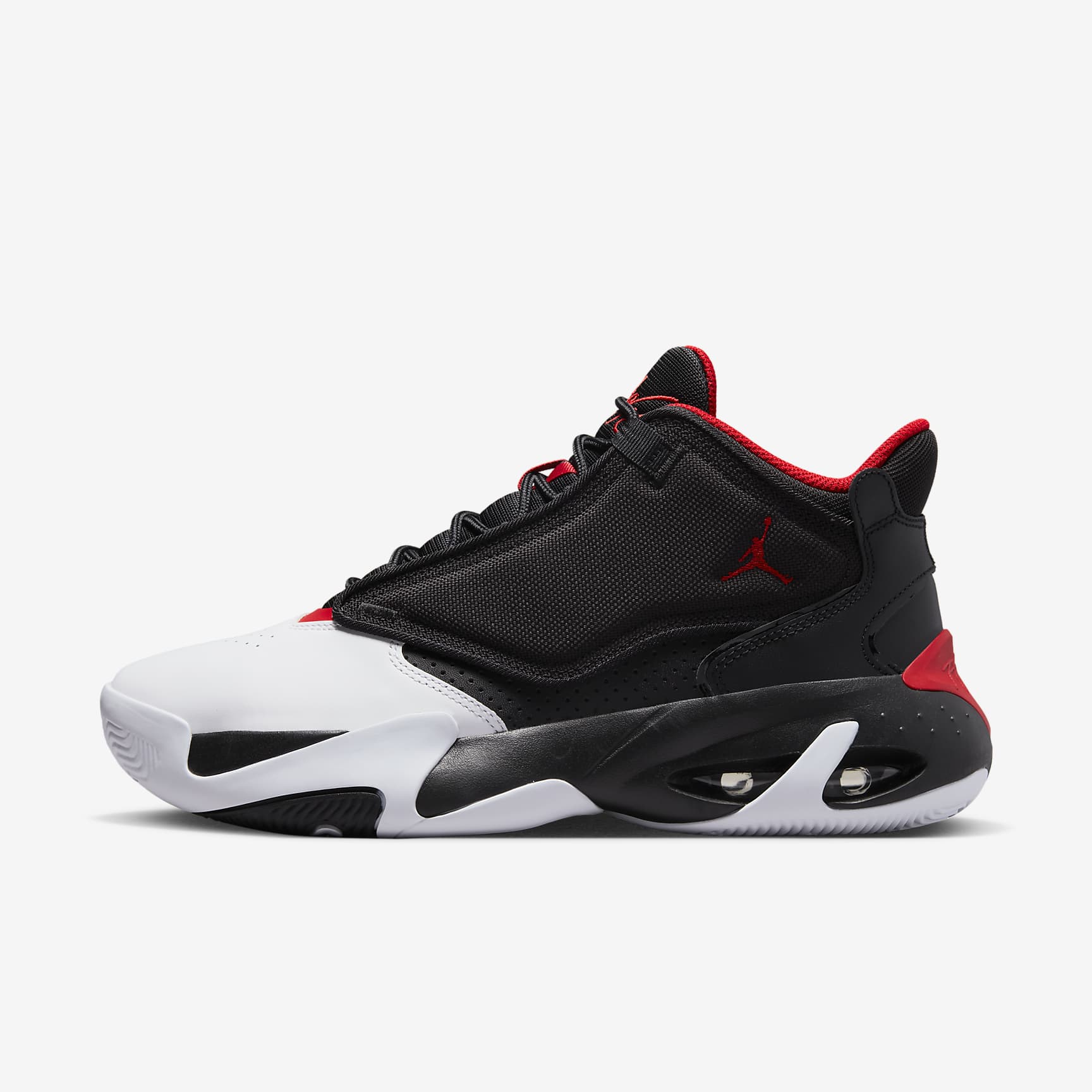 The lightweight cushioning found in this next generation basketball shoe takes cues from its predecessors. Take flight on the court with timeless style and cloud-like heel support. Benefits * Genuine leather, synthetic leather and polyester combine in the upper for exterior cushioning. * Classic branding shows up in moulded details and embroidered graphics. * Visible Max Air unit supplies lightweight impact cushioning and comfort beneath your heel. * Six futuristic waves of tread on the rubber outsole provide multi-surface traction. Product Details * Rubber outsole * Not intended for use as Personal Protective Equipment (PPE)