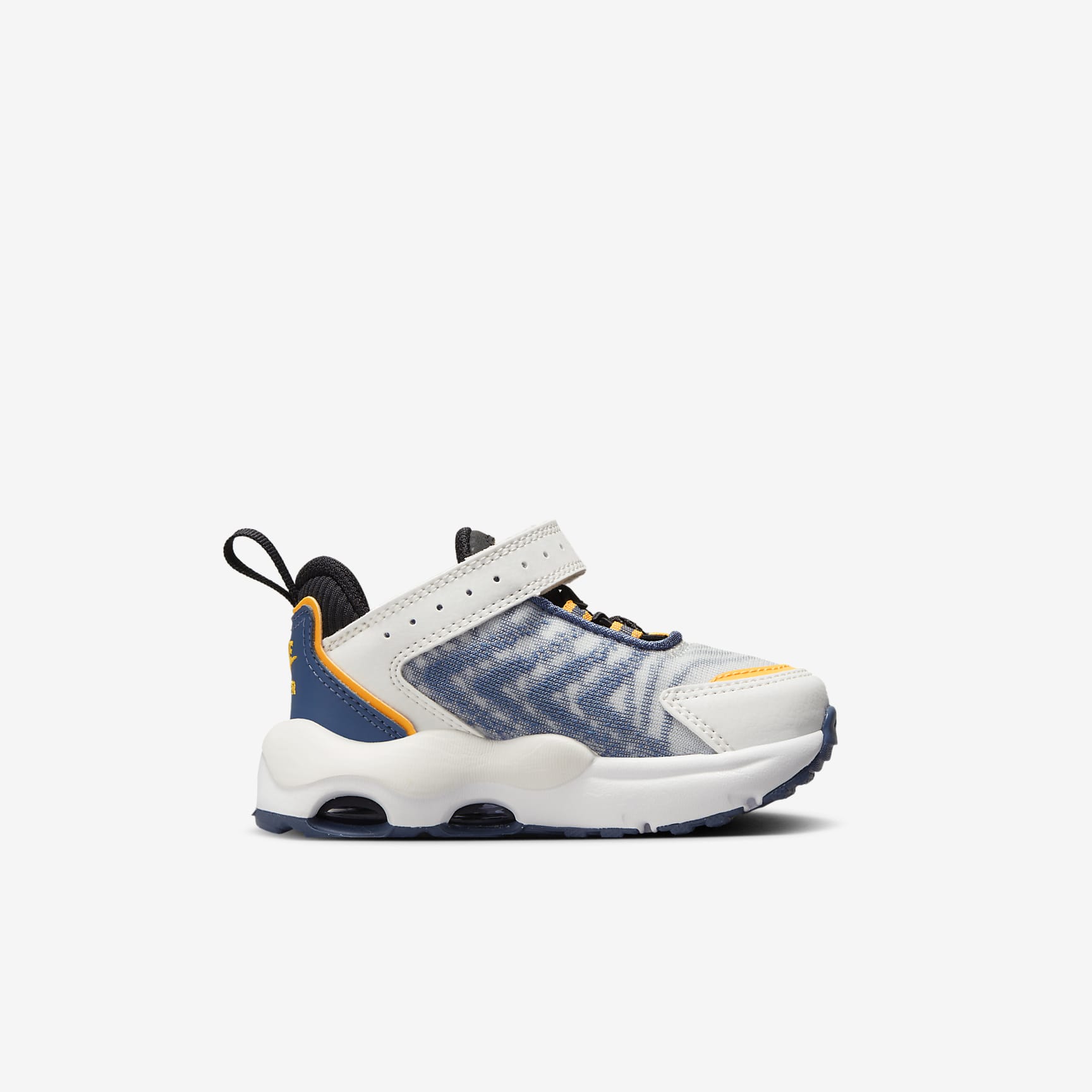 What do you think your little one will notice first about the Nike Air Max TW? Will it be the cool bubble of Air in the heel? Or will it be the sweet boomerang design on the sides? Inspired by our iconic Tailwind, which introduced the running world to Air cushioning, these are the lightweight and breathable shoes your little one will want to crawl and play in all day. Built to Breathe Double-layered mesh is lightweight and breathable so little ones can move, dance and play comfortably. Synthetic leather adds durability and a feeling of support. Walk on Air Inspired by the Tailwind design of the '90s, an Air unit under the heel is combined with soft foam underfoot for lightweight cushioning. Tailwind for the Future From the updated design lines to the Nike Air units, these shoes draw inspiration from the Tailwind franchise that became a favourite from 1979 through to the '90s. Originally a running shoe, they're made to wear everyday—from home to the playground. More Benefits * Full-length rubber sole with rubber pods provides durable traction on multiple surfaces. * Elastic laces and a hook-and-loop strap make these shoes easy to get on and off.