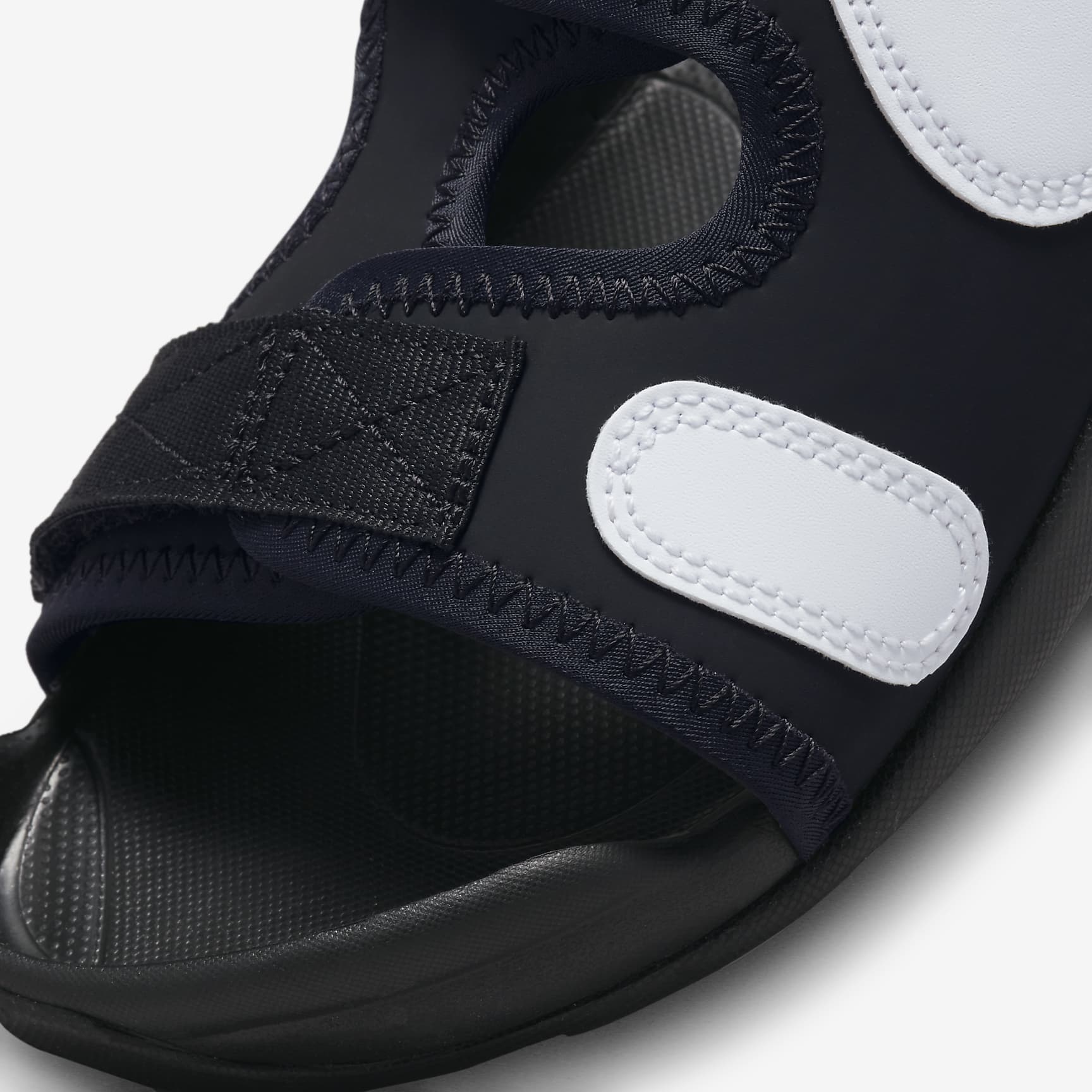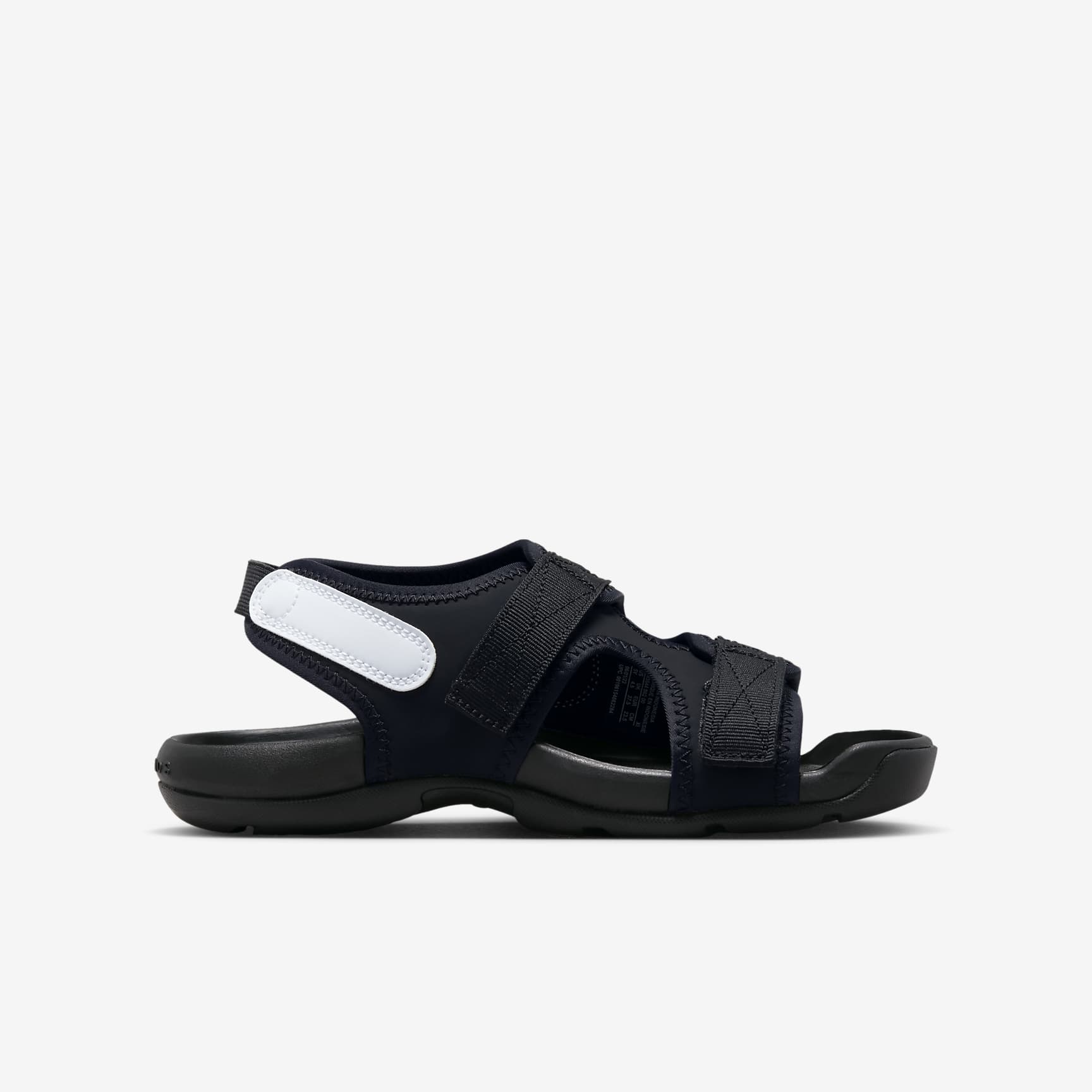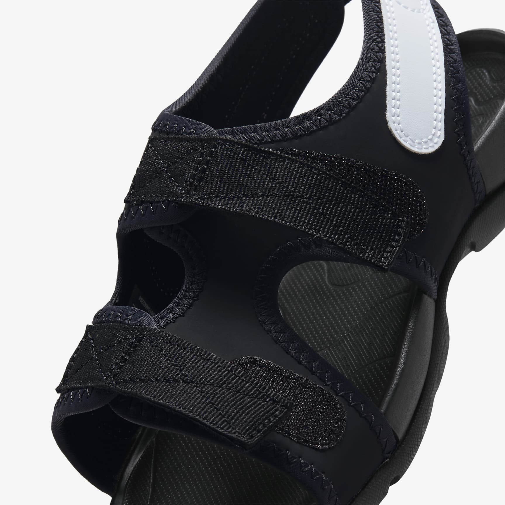 Made for those mega-fun beach days. Maybe swimming classes at the pool. Or you just need an easy slip-on to play under the sun. The Nike Sunray Adjust 6 is super plush when the warm weather hits. The edges help keep your feet contained when you play—we don't like slipping! Also, what's easier than a strap closure? Staying secure will be the least of your worries. Benefits * Super-soft and stretchy upper provides plush comfort and helps prevent uncomfortable rubbing against your feet. * Hook-and-loop strap makes the slides easy to get on and off. * Elastic strap on the heel helps give a snug fit. * Soft foam underfoot provides lightweight cushioning. * Toe-bumper design helps keep toes contained inside the slides. * Rubber on the outsole gives extra durability. Product Details * Hook-and-loop strap closure