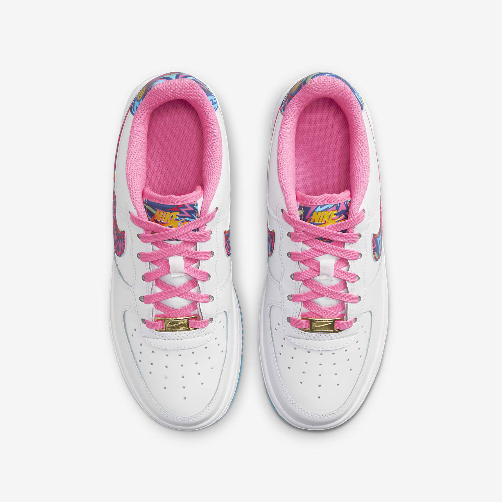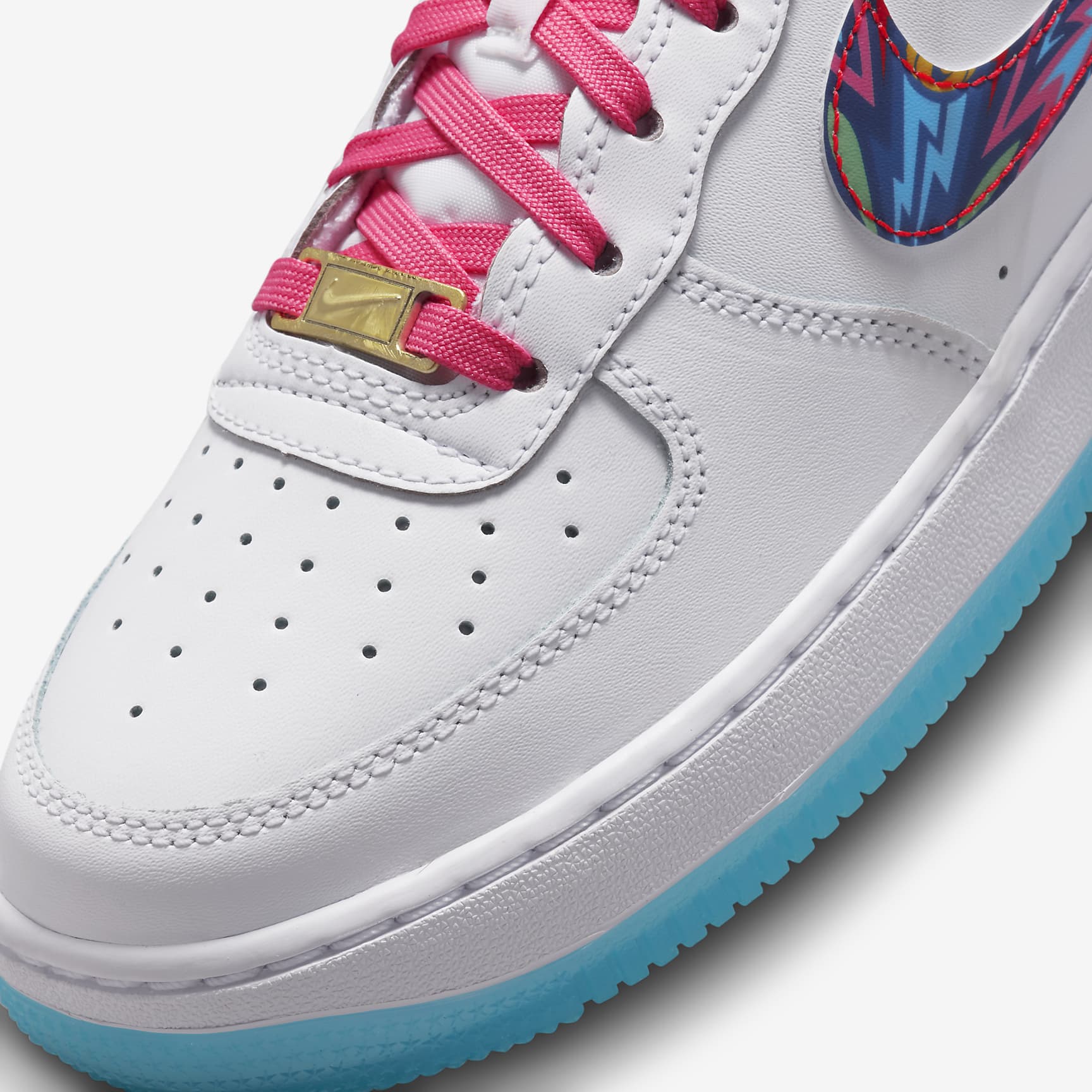 The Nike AF-1s are a legend for a reason. From the basketball courts in the '80s to the streets and schools today, they've been a sneaker icon everywhere for decades—meaning a long time! Soft, durable leather lasts for many days of play. Bright colours are made to pop, and only on this special all-star edition. Be a Star This all-star edition is inspired by eye-catching bright colours that look like they're in a kaleidoscope. Classic Feel Real and synthetic leather is made to be durable with a throwback feel. All About Air The hidden Air-Sole unit under the heel provides cushioning—like the original AF-1 released in 1982. Ground Control The rubber sole provides durable traction. The circular pattern was originally designed to help basketball players pivot on the court. Product Details * Classic laces