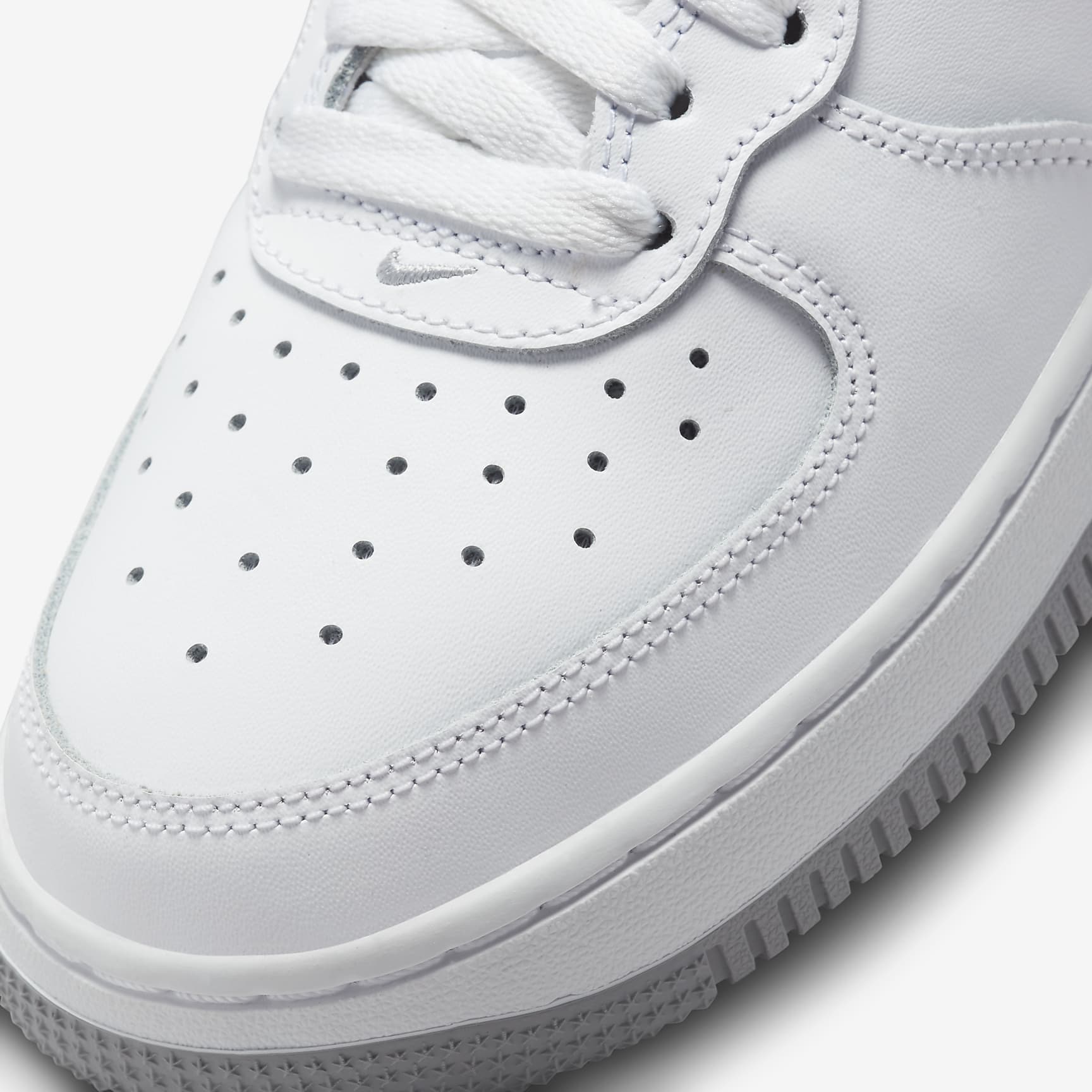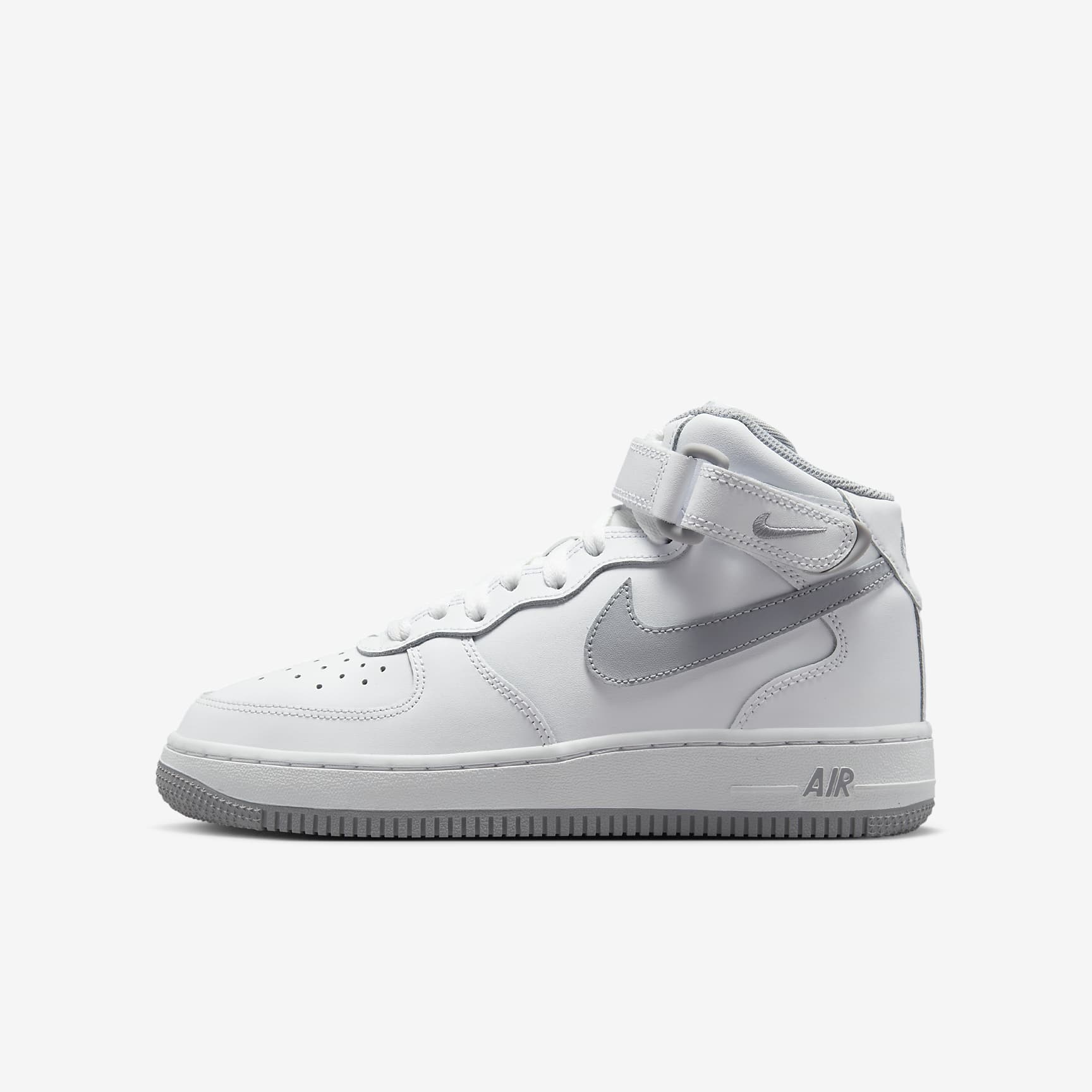 SALUTE TO A LEGEND. The Nike Air Force 1 Mid LE brings back the '82 hardwood icon into an everyday style in all-white or all-black.The durability, feel and Air-Sole cushioning are still there in this classic style you know and love. Classic Style This '82 original is made from real and synthetic leather for durability and throwback style. All About Air The hidden Air-Sole unit brings cushioning underfoot just like the original. Made to Last The rubber sole provides durable traction with the iconic circle tread pattern that was designed for basketball players to easily pivot on the court. Product Details * Cupsole construction * Perforations on the toe Air Force 1 Origins Debuting in 1982, the AF-1 was the first basketball shoe to house Nike Air, revolutionising the game while rapidly gaining traction around the world.Today, the Air Force 1 stays true to its roots with the same soft and springy cushioning that changed sneaker history.