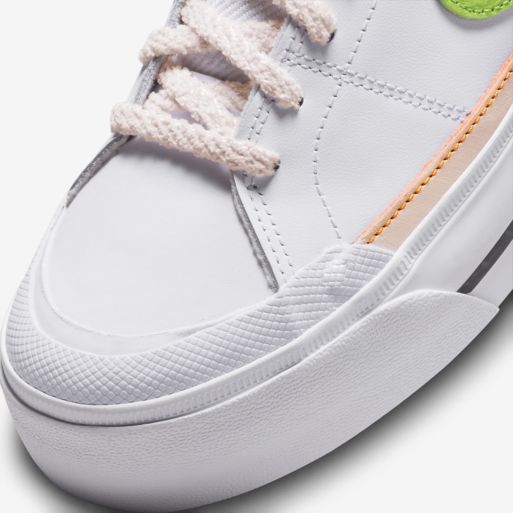 Elevate your style with the Nike Court Legacy Lift. Its platform midsole delivers a bold statement on top of a classic, easy-to-wear design. And don't worry, we've kept the fit you love. Benefits * Subtly layered upper keeps it classic and easy to wear with real and synthetic leather. * Padded heel and plush tongue feel soft. * Rubber outsole delivers traction and durability.