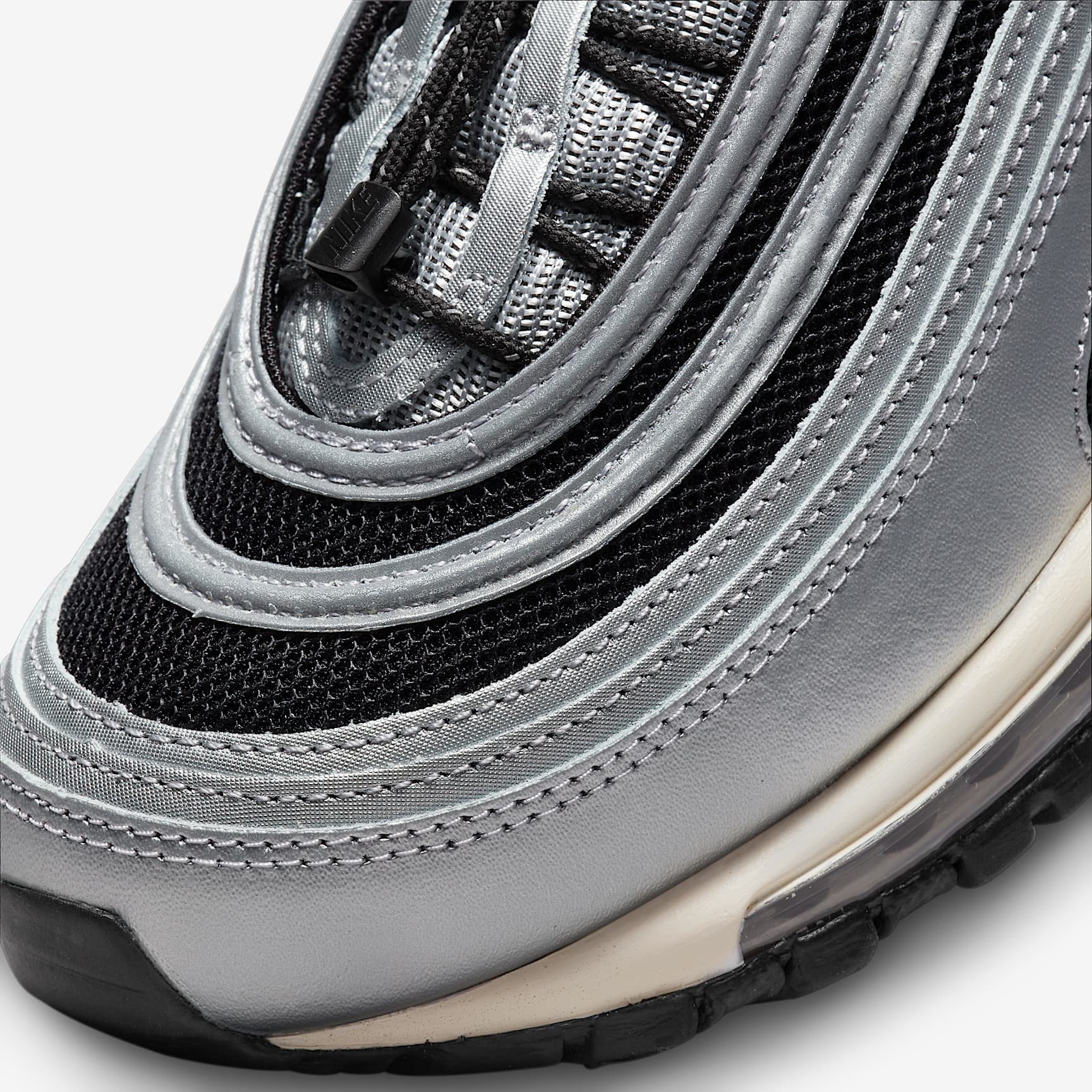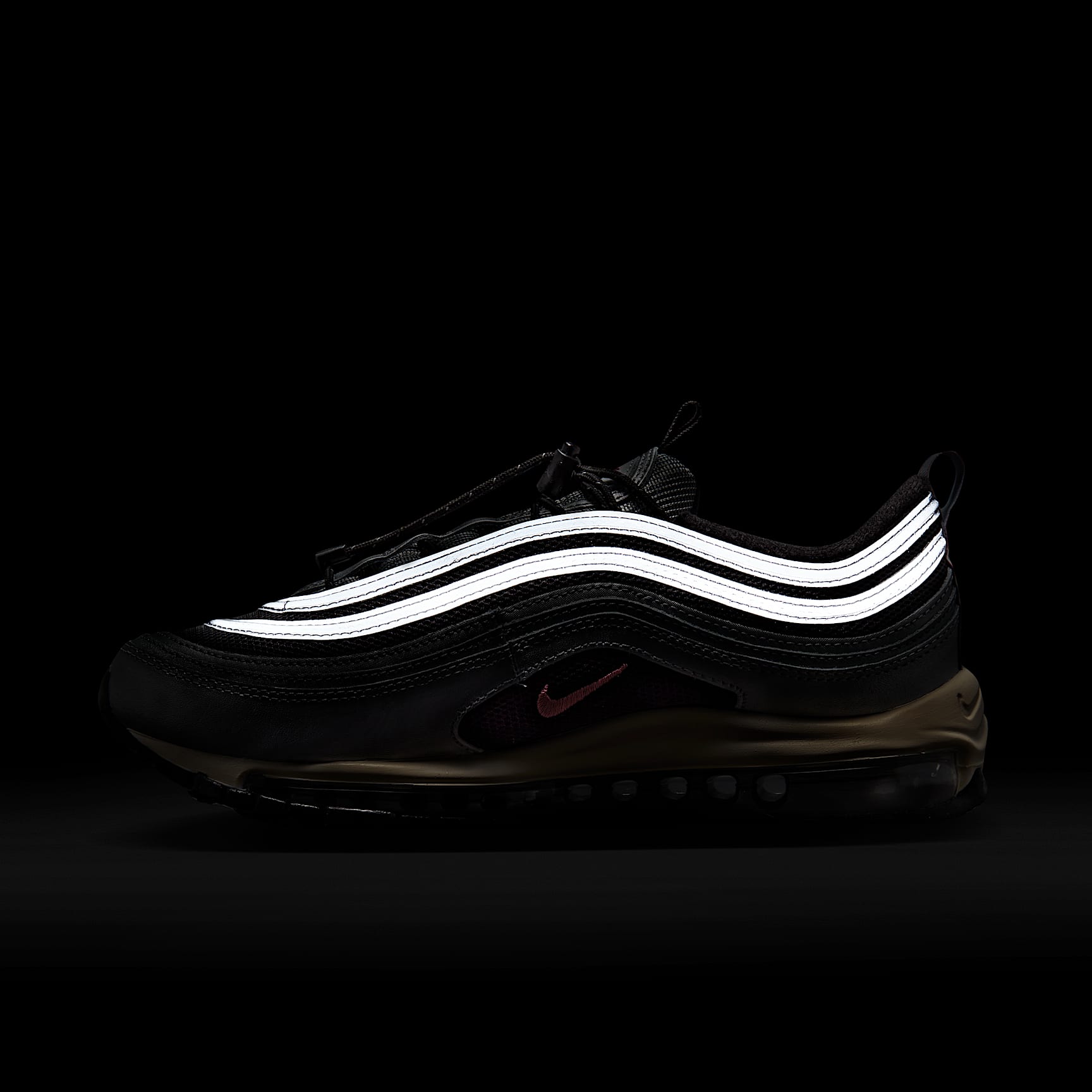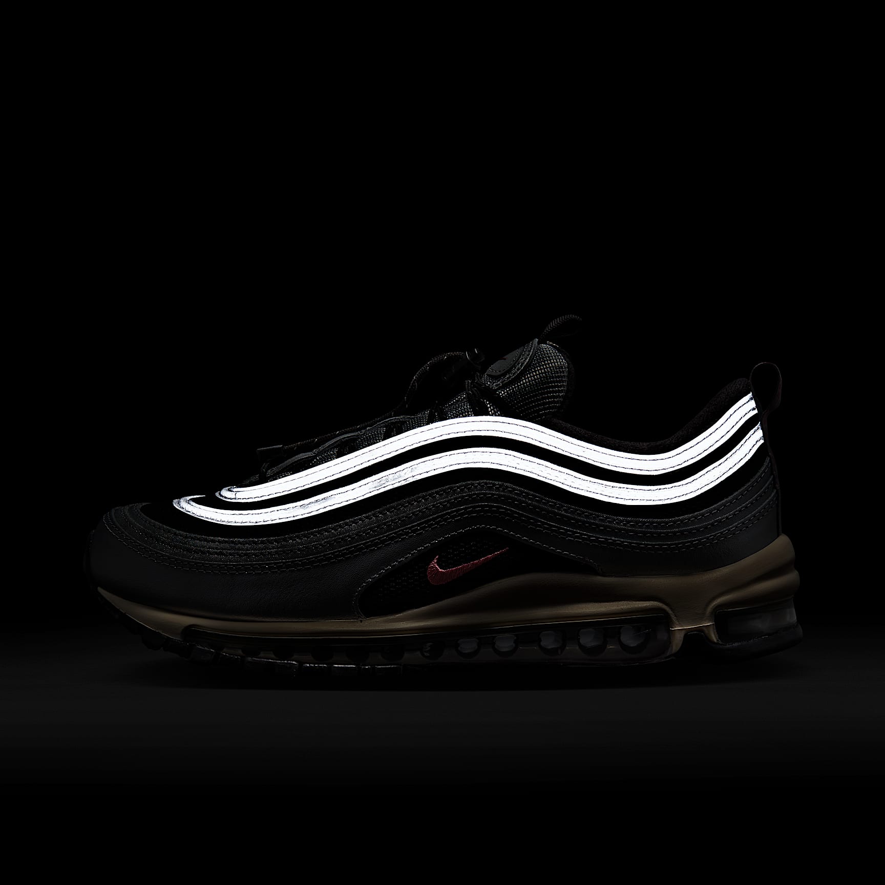 Push your style into the future with the Nike Air Max 97. Rippled design lines give this iconic sneaker a sleek and fast-paced look. To ensure they really turn heads, we added smooth leather in Metallic Silver. Of course, we kept the full-length Nike Air cushioning, letting you capture the spotlight in comfort. Benefits * Originally designed for performance running, full-length Nike Air cushioning (the first of its kind) pairs best-in-class comfort with sporty style. * Hidden lacing system delivers a streamlined look. * Foam midsole delivers plush cushioning. * Rubber outsole adds traction and durability. Product Details * Reflective design details * Not intended for use as Personal Protective Equipment (PPE)