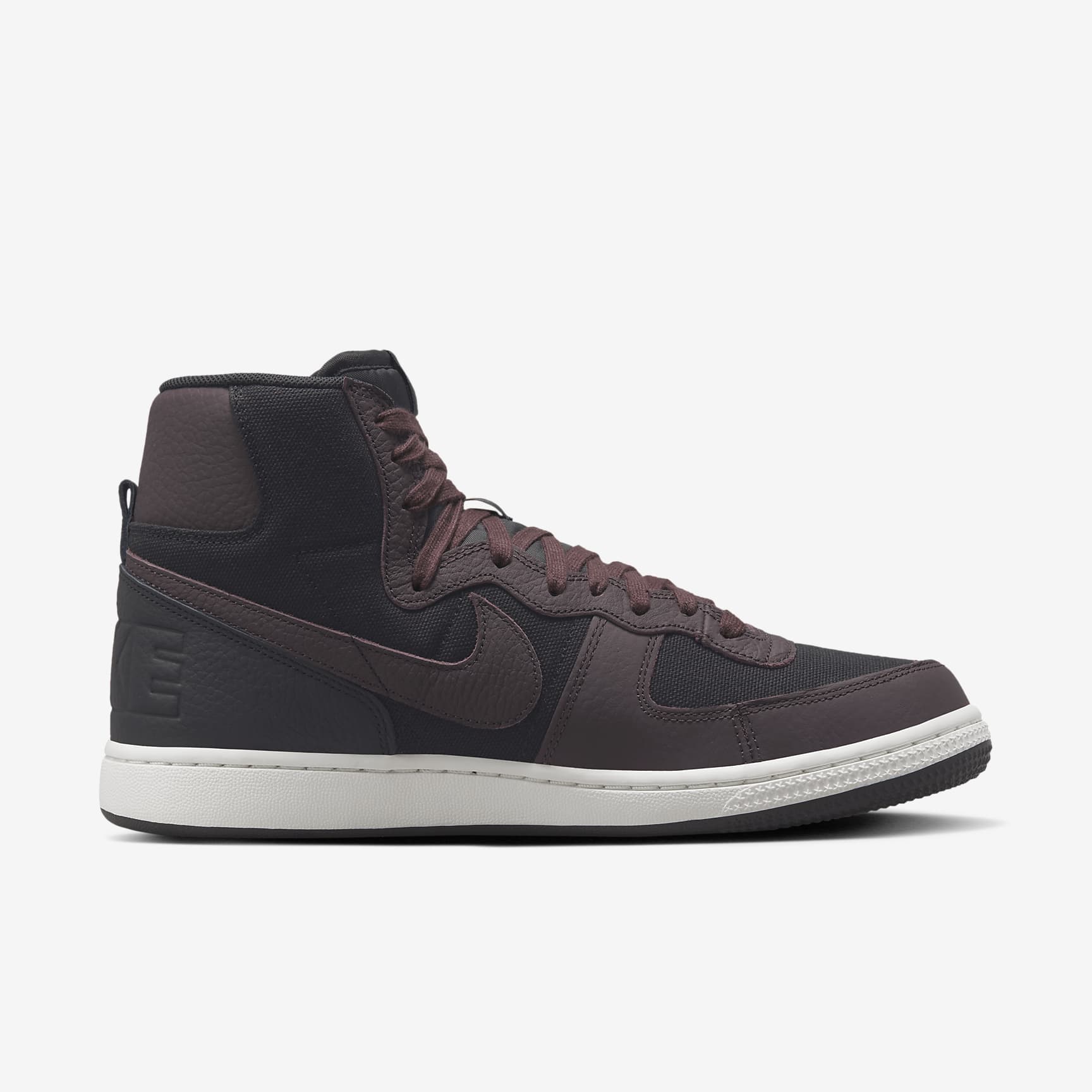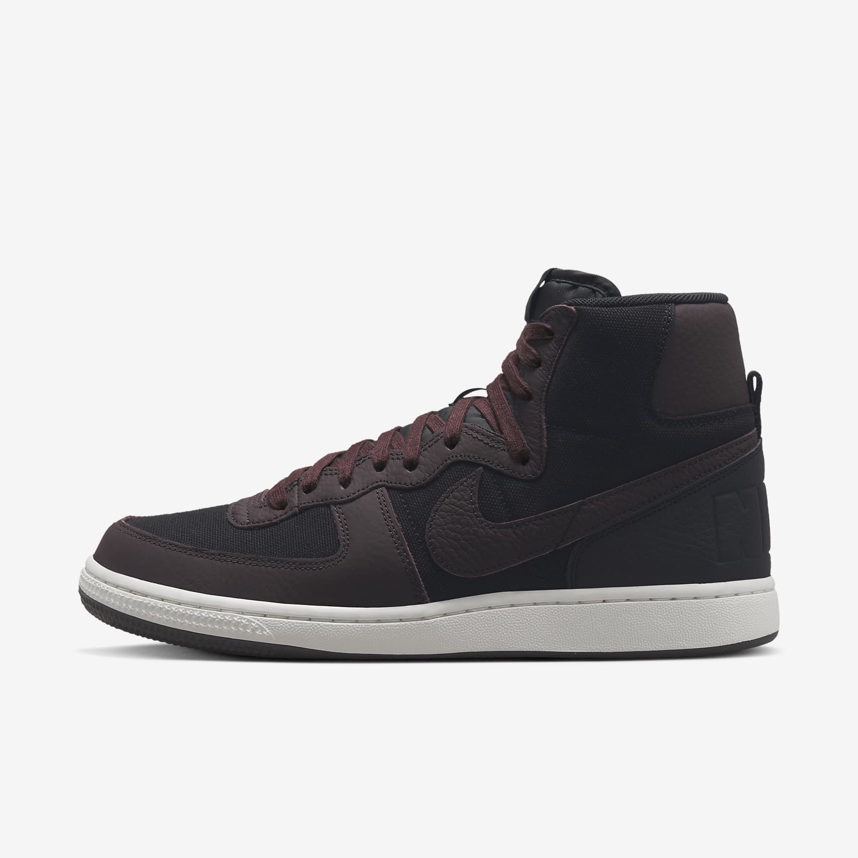 Straight from the vault but decked out with extra off-court flair, the Terminator High bridges the era of hook shots, knee pads and calf-high socks with modern-day sneaker culture. Returning to the '85 original (the 1st signature school shoe by Nike), the throwback look sets the stage with premium leather and classic canvas. This rare colour combo is full of mystique, while crafted branding adds an artisan twist. It's game time! Benefits * Tough leather and durable canvas on the upper stands up to the demands of your day. * Padded, high-top collar adds an old-school look that feels great. * Rubber outsole gives you durable traction. Product Details * 2 sets of laces * Woven tongue label * Traditional lacing