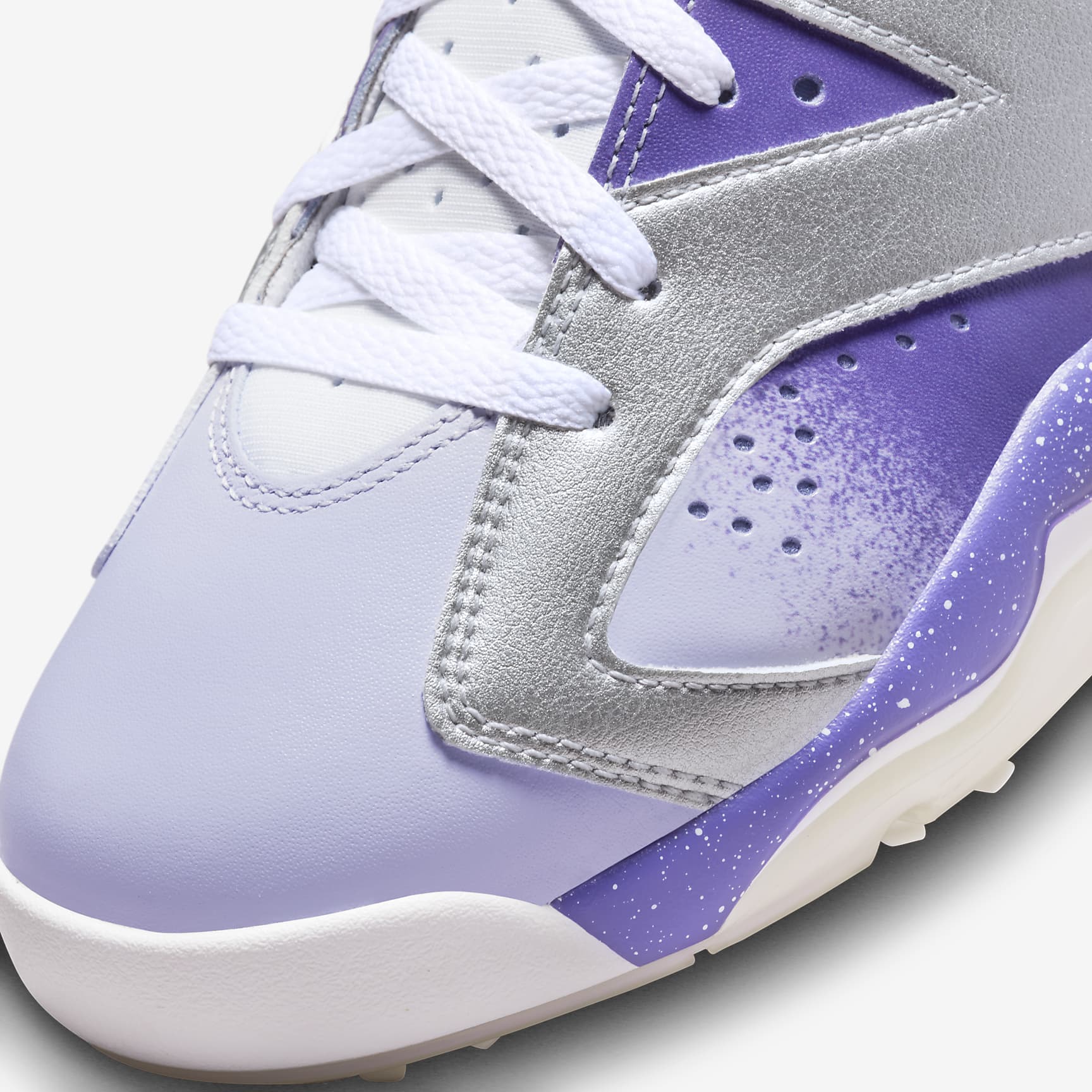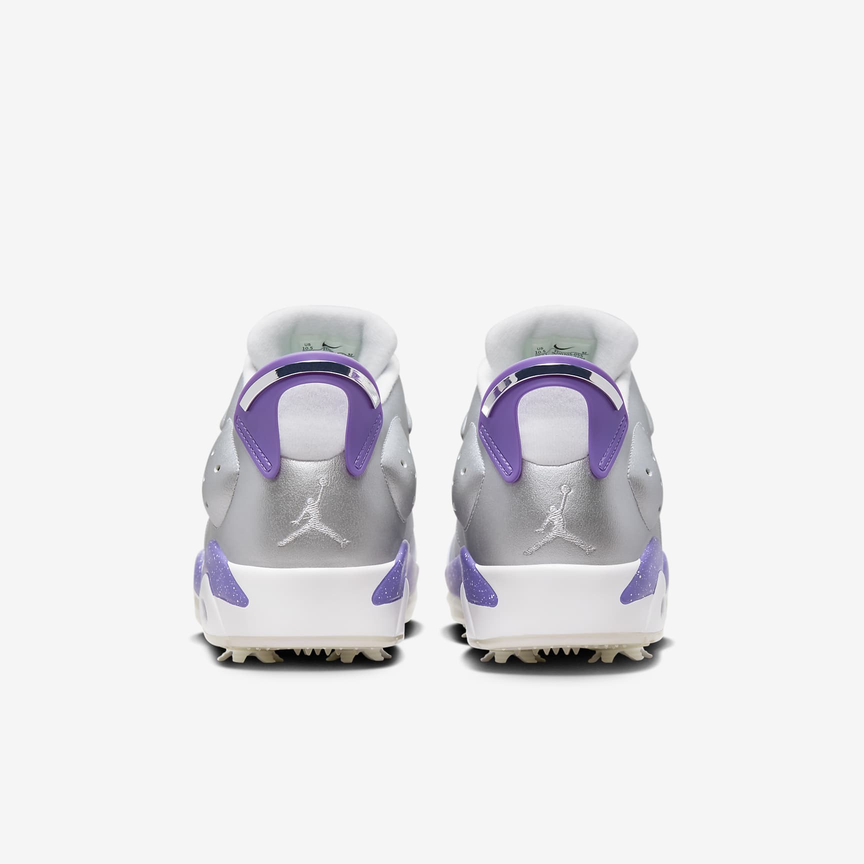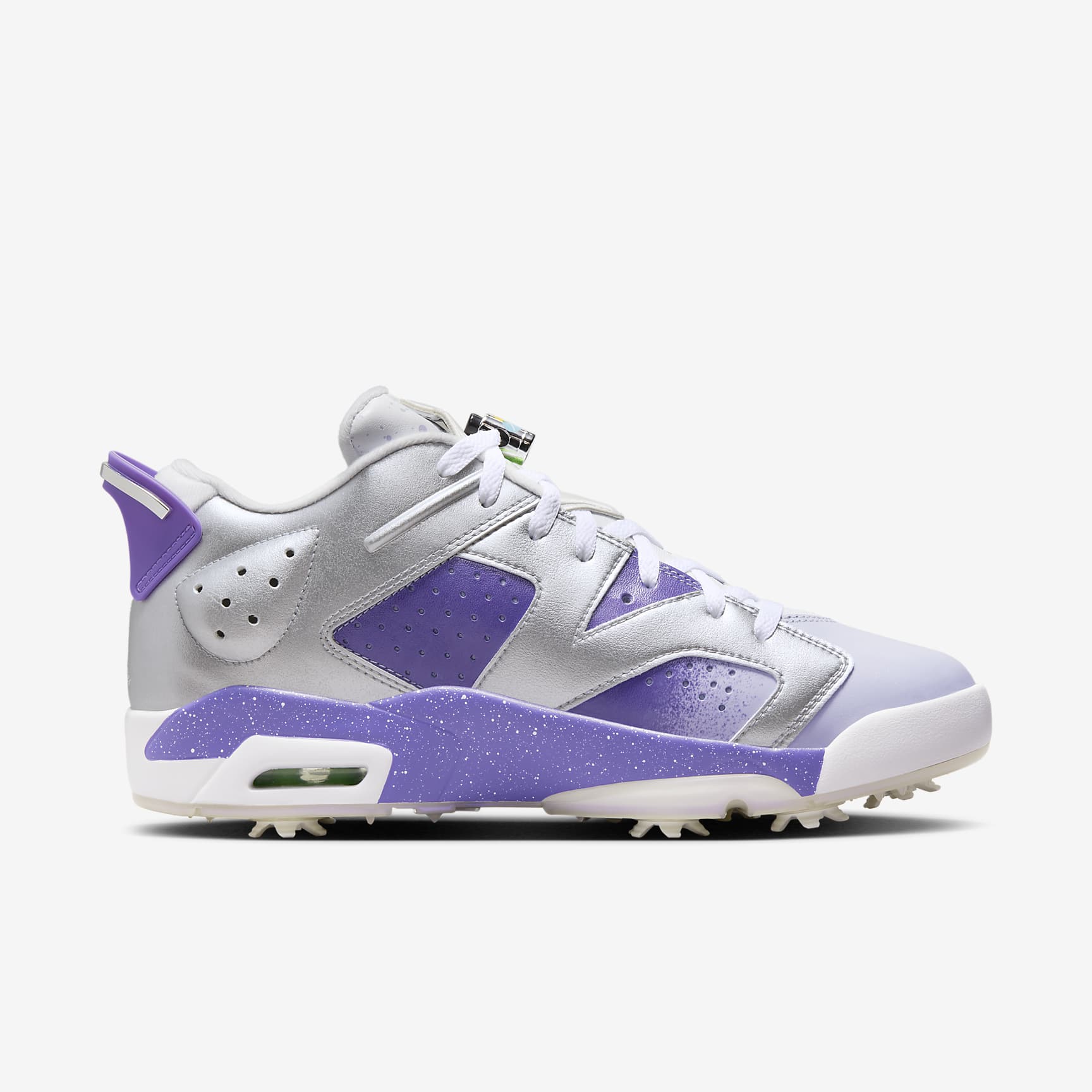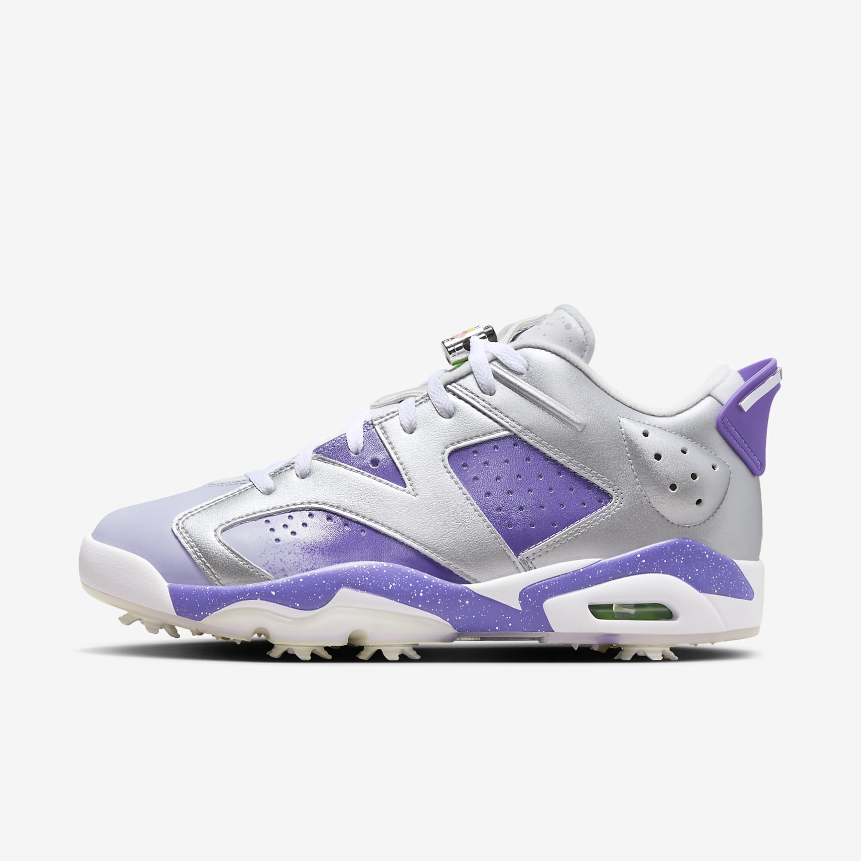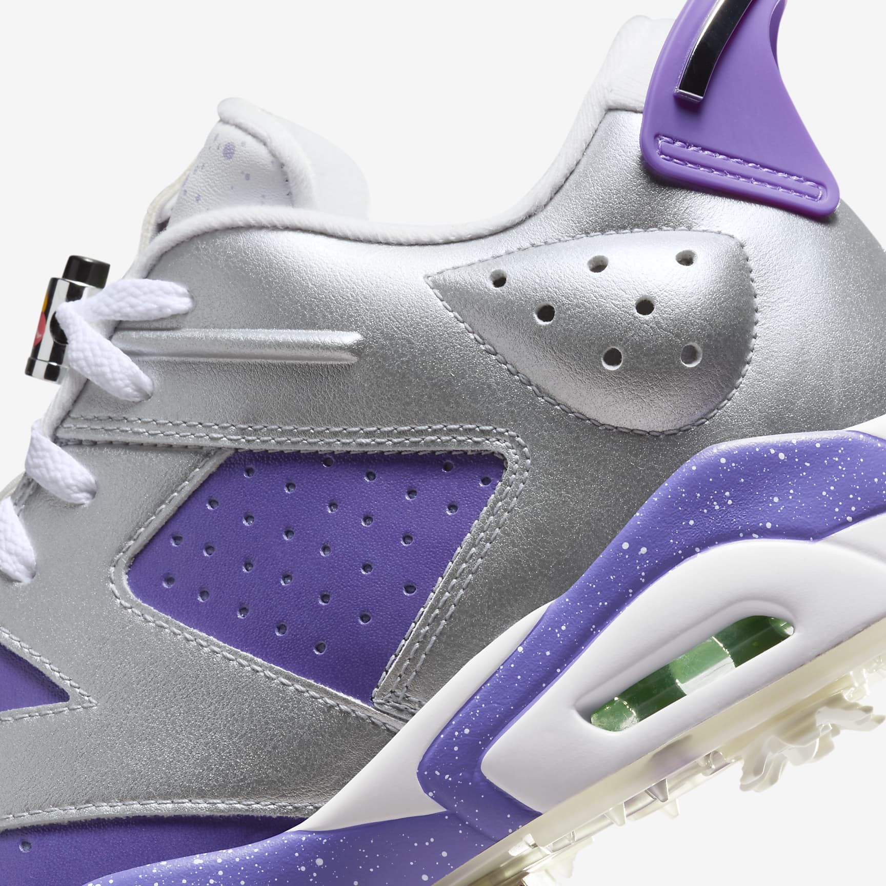 Feel unbeatable from the tee box to the final putt in a design that's pure early MJ: speed, class and laden with true early-90s touches, like visible Air and a translucent plastic sole that stand the test of time. This model fuses the strut of MJ's 1st championship with some of our best golf technology, helping you make a statement of confidence when it comes time to tame the course. This special design celebrates the City of Angels, where the summertime vibes are always immaculate, electric, yet laid back, just like the host of one the nation's biggest events. Summertime Vibes Silver overlays speak to Tinseltown's VIP vibes while spray-paint-can-like lace tips nod to the gritty and grimy graffiti craft that canvases special parts of the city. The vibrant colours uplift a bright community where everyone contributes their own unique touch. AJ 6 Inspiration MJ's German sports car served as the inspiration for the original shoe's design, with its very essence conveying speed and class. A moulded heel tab is on the back of the shoe, something Jordan himself required back in '91 so that it wouldn't hit his Achilles tendon when putting it on. Two holes in the tongue nod to the original AJ 5. Course Traction Spikes on the outsole add grip and stability for the course. More Benefits * Provides water repellency in all weather conditions. * Lightweight foam midsole provides comfort and stability throughout your round. Product Details * 2-year waterproof warranty * Cushioned insole
