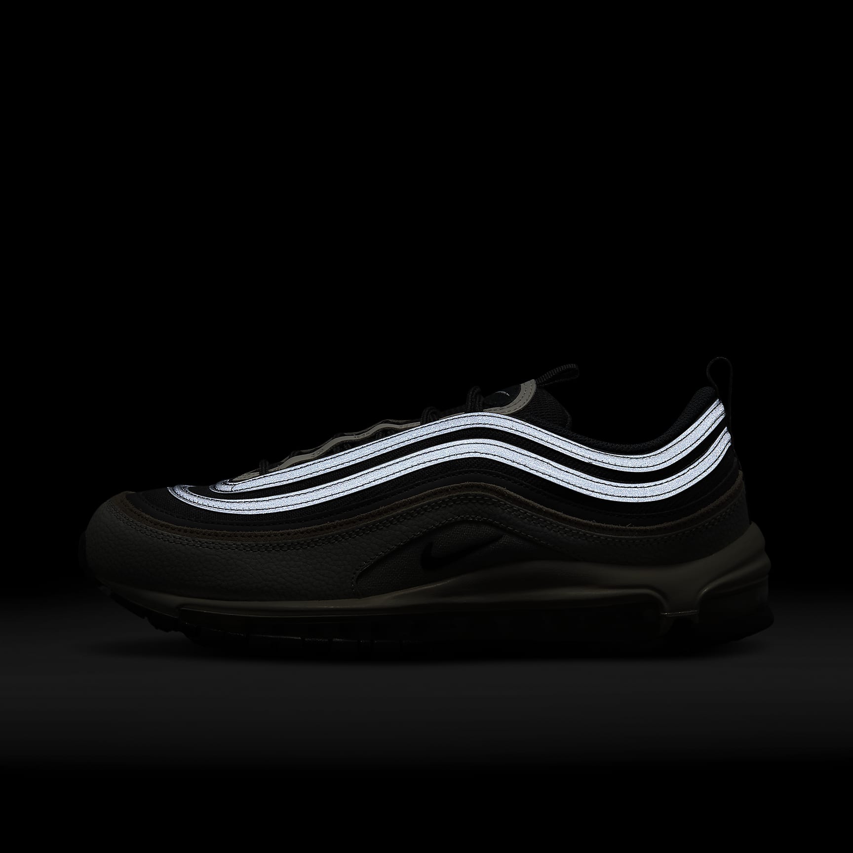 Layer on style with the Air Max 97. The cracked leather and soft suede update the iconic design while the original look (inspired by Japanese bullet trains and water droplets) still takes centre stage. Easy-to-style colours let you hit the streets quickly. Benefits * Originally designed for performance running, the full-length Max Air unit adds soft cushioning. * The suede and synthetic leather upper with mesh underlays adds breathability and durability. * Hidden lacing system was a first of its kind, and allows for a streamlined look * Pull tabs on heel and tongue for easy on and off. Product Details * Round laces * Foam midsole * Rubber outsole Nike Air Max Origins Revolutionary Air technology first made its way into Nike footwear in 1978. The Air Max 1 debuted with visible Air technology in its heel, allowing fans more than just the feel of Air cushioning—suddenly they could see it. Since then, next-generation Air Max shoes have become a hit with athletes and collectors by offering striking colour combinations and reliable, lightweight cushioning.