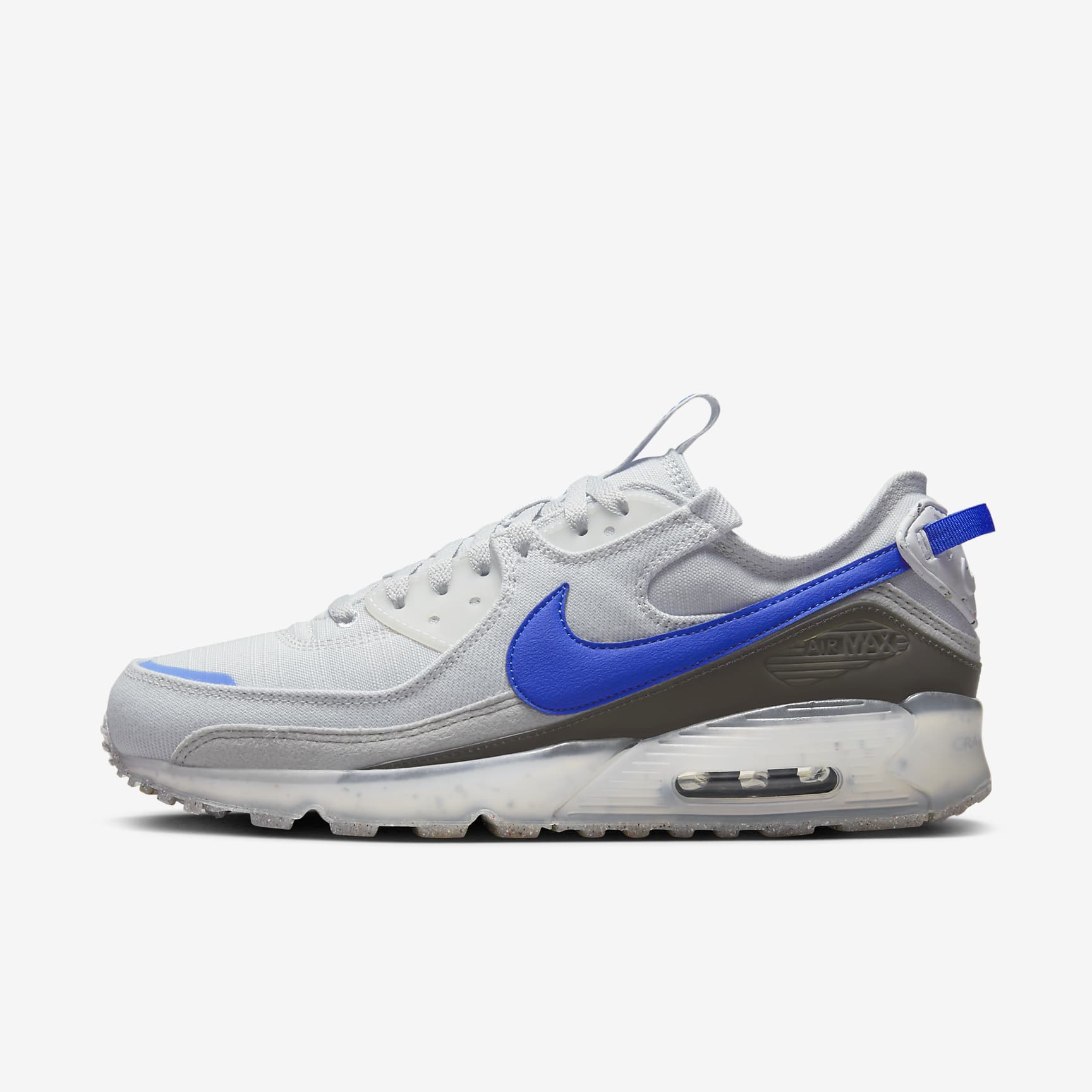 Consider for a moment that pause when you see something new. Something exciting. That's the Nike Air Max Terrascape 90. A flashy new outsole with translucent rubber is combined with a Crater Foam midsole to bring you the spa treatment. Go ahead, introduce yourself. Designed to Handle the Grind The new outsole design features translucent rubber and wraps onto the mudguard for added durability. Breathable mesh on the upper keeps it light and airy, while overlays on the sides add toughness that can handle streets or trails. Classic Meets Modern To put it bluntly, it's a classic made for today. Featuring the new Terrascape logo on the tongue, sleek triple-stitching around the collar and durable Crater Foam, it's tried and tested—perfected. Perfectly 90 Nothing as fly, nothing as comfortable, nothing as proven. Staying true to its original roots, it features the iconic Waffle outsole, stitched overlays and plastic accents on the eyestays. More Benefits * Perfecting the comfort, Crater Foam adds stability and a unique aesthetic to every step. * Originally designed for performance running, the Max Air unit in the heel adds unbelievable cushioning. * Low-top, padded collar looks sleek and feels great. * Modern Swoosh extends around the back to form a pull tab for easy on and off. Product Details * Pull tab on the heel and tongue * Foam midsole Nike Air Max Origins Revolutionary Air technology first made its way into Nike footwear in 1978. In 1987, the Air Max 1 debuted with visible Air technology in its heel, allowing fans more than just the feel of Air cushioning—suddenly they could see it. Since then, next-generation Air Max shoes have become a hit with athletes and collectors by offering striking colour combinations and reliable, lightweight cushioning.