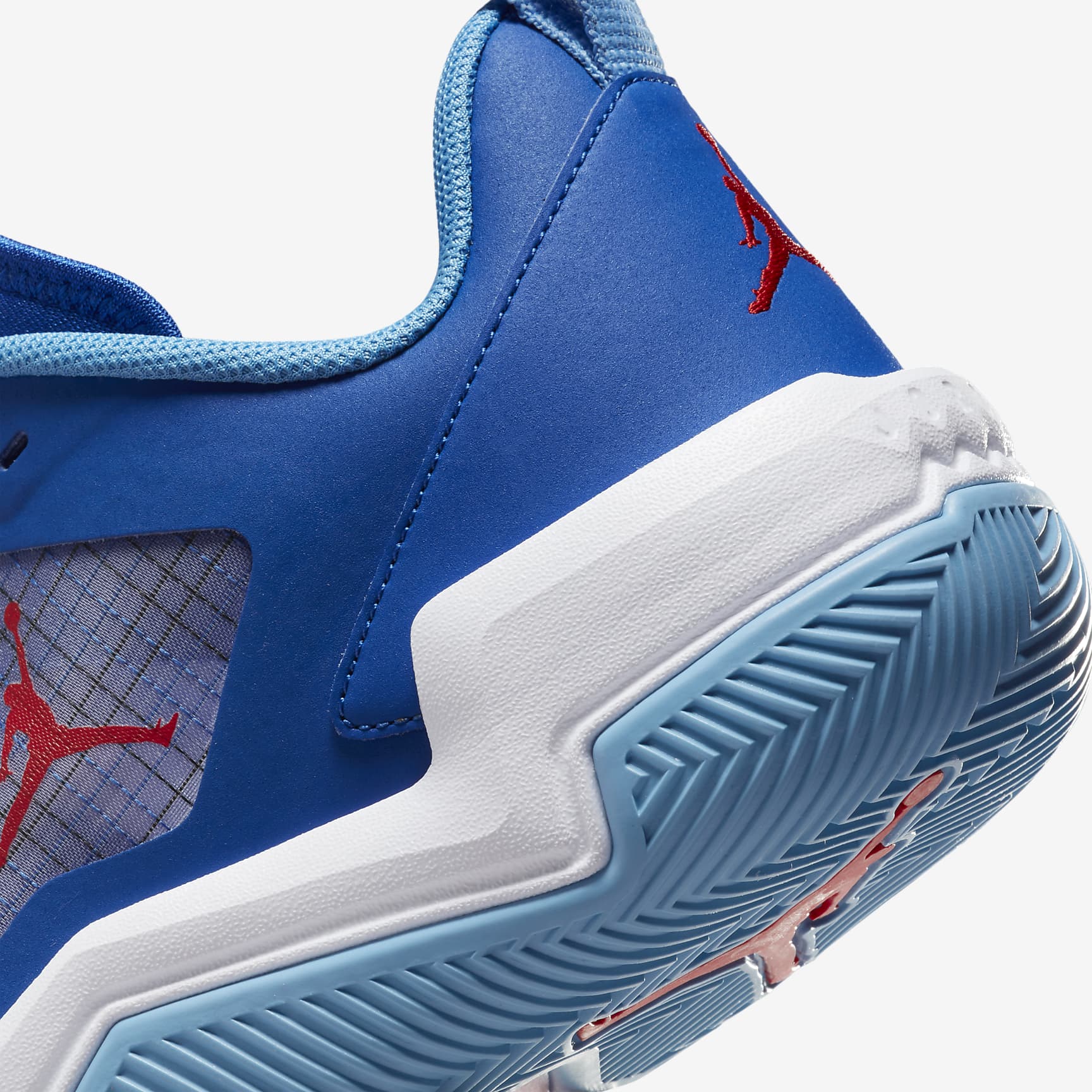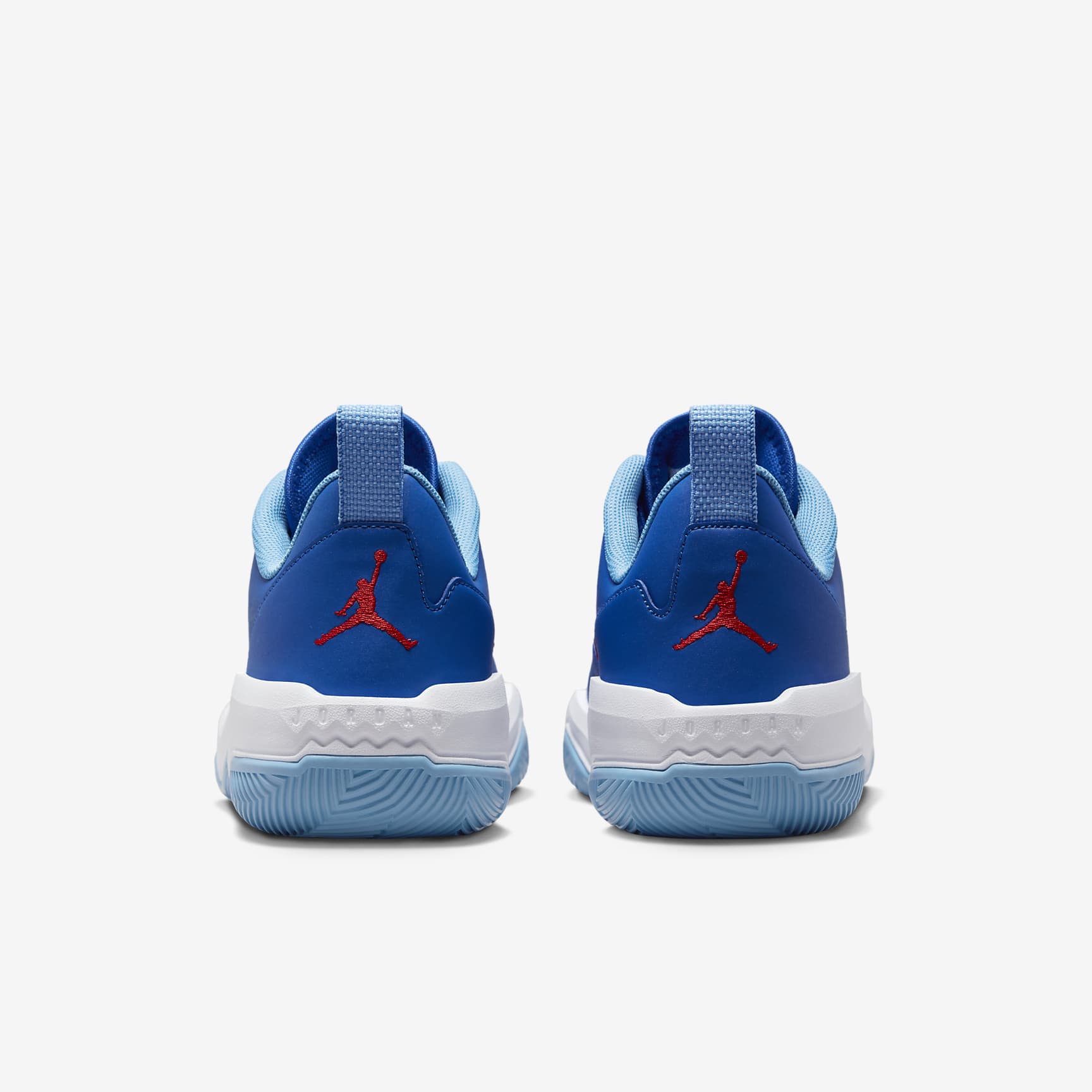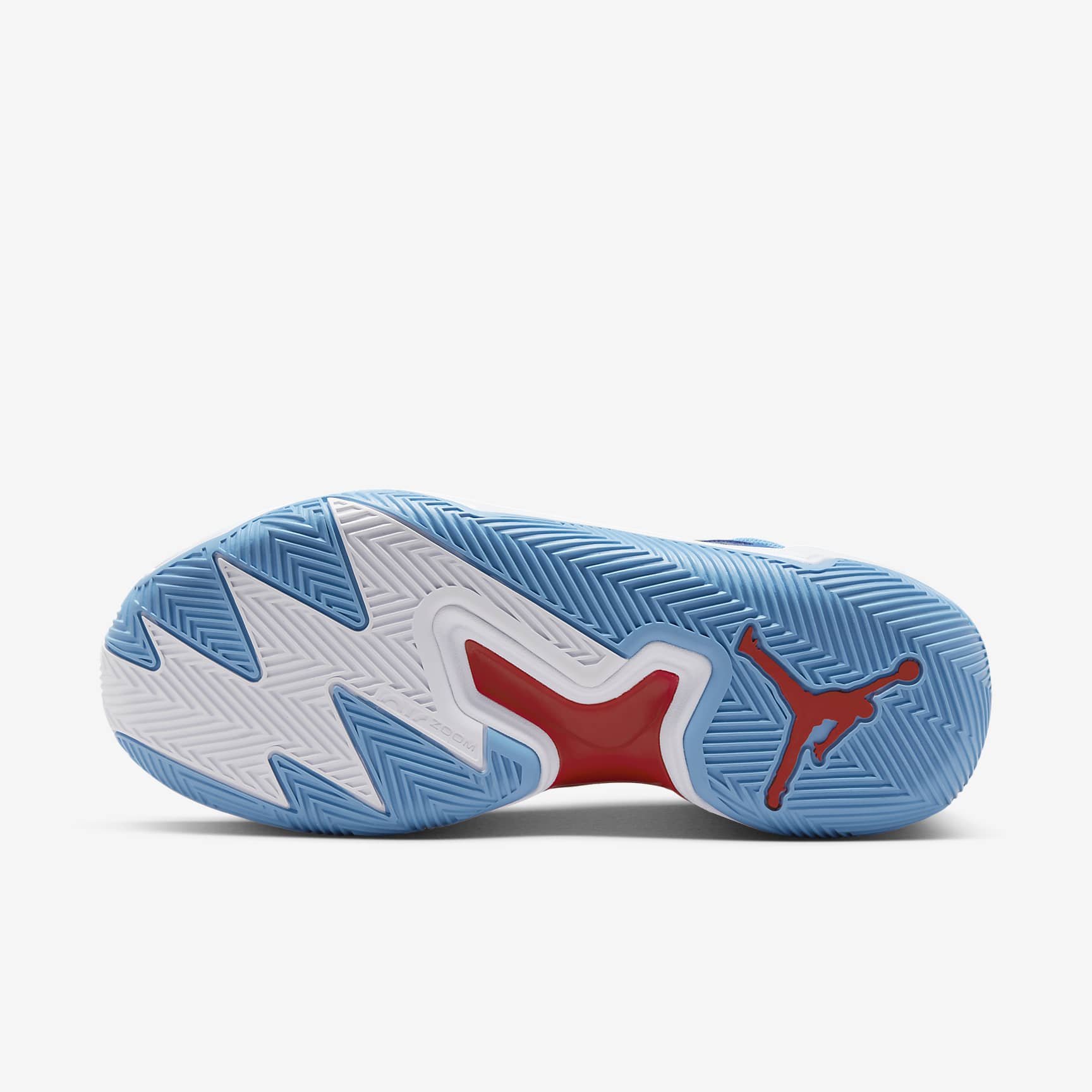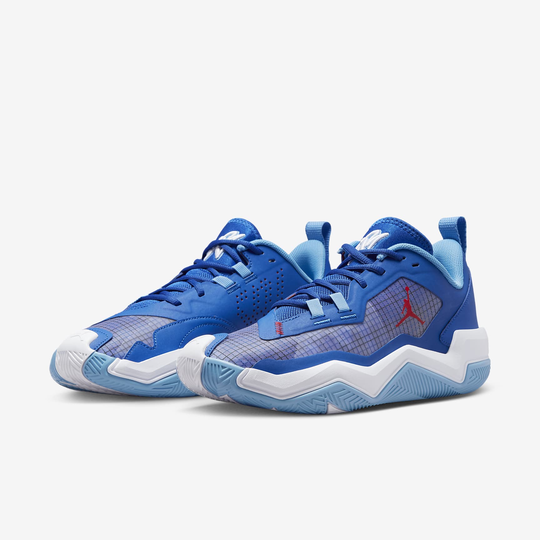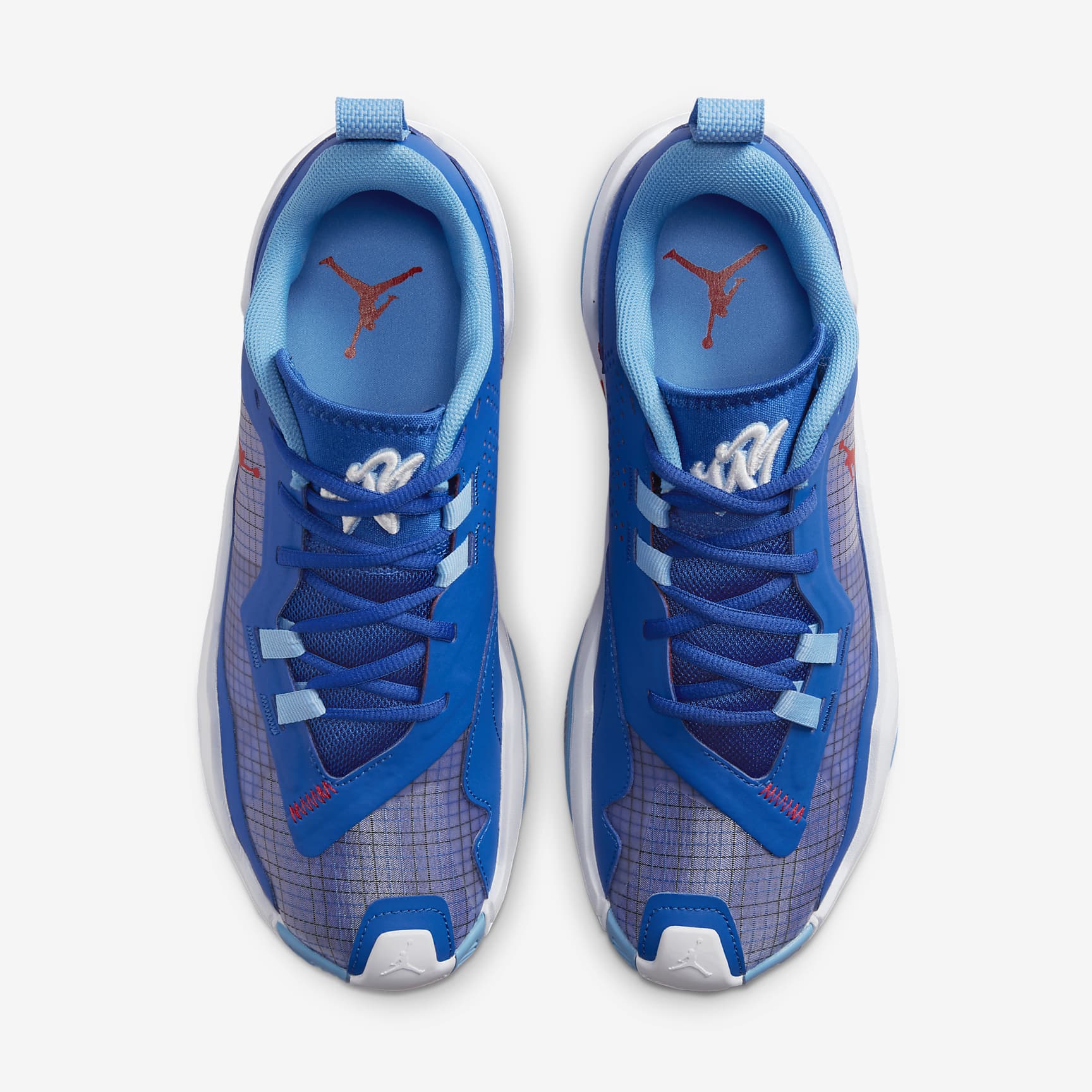 Get that speed you need, just like Russ. Inspired by Russell Westbrook's latest signature shoe, the outsole of the Jordan One Take 4 wraps up nearly to the midsole so you can start, stop or change direction in an instant. Meanwhile, energy-returning Zoom Air cushioning in the forefoot keeps you goin' (and goin' and goin'). Up-front Response The Zoom Air unit in the forefoot is top-loaded, bringing the responsive sensation closer to your foot when you're driving hard down the court. Cool Containment Made from synthetic leather, Ripstop and mesh, the airy-yet-durable upper keeps you contained with a unique, asymmetrical design. Lock loops give your feet even more security on the court. More Benefits * Midfoot plate runs through the shoe for added stability. * Herringbone outsole provides ample traction.