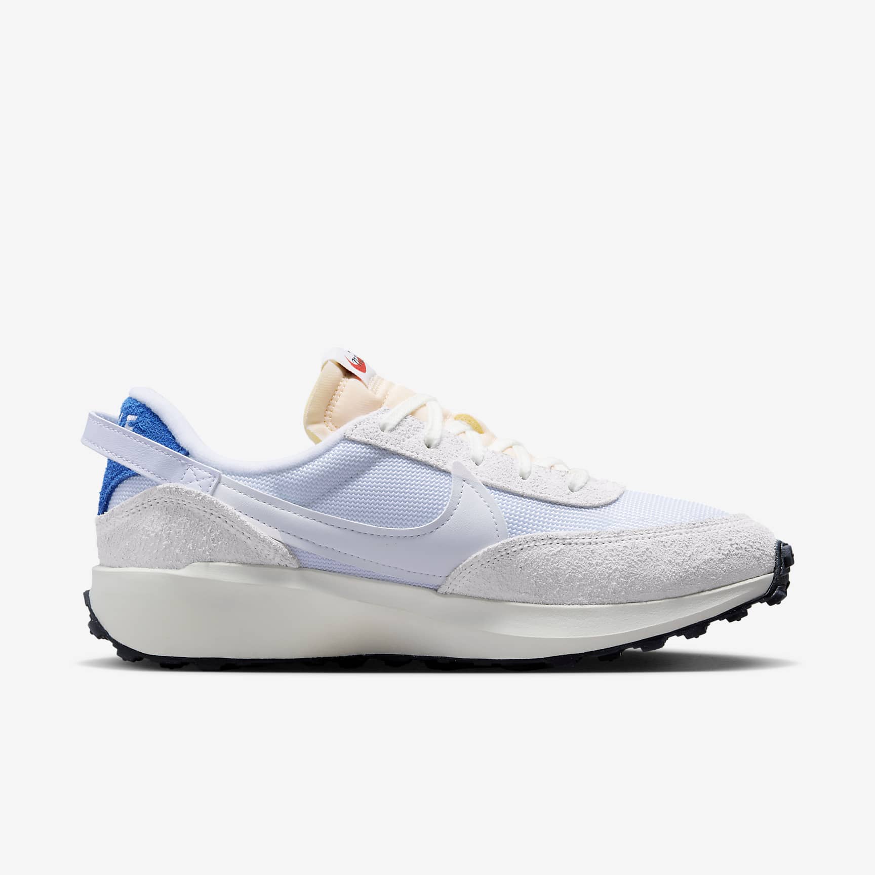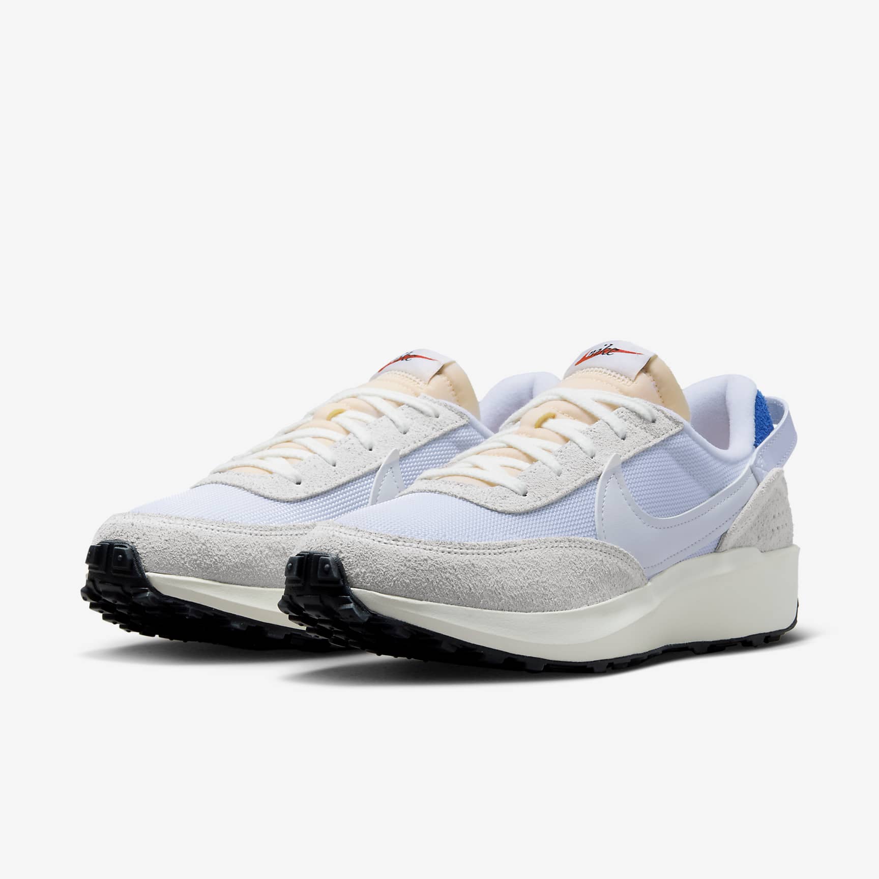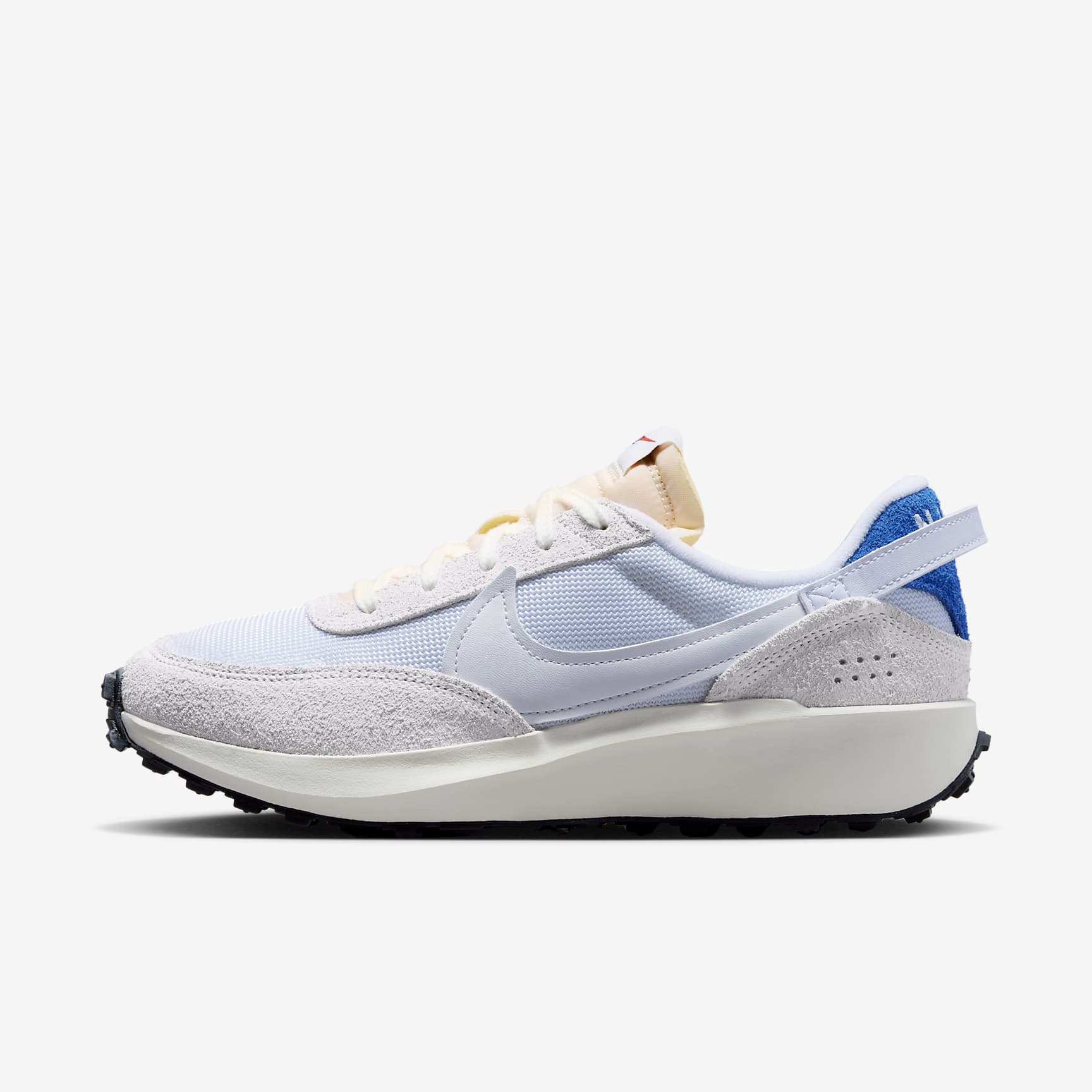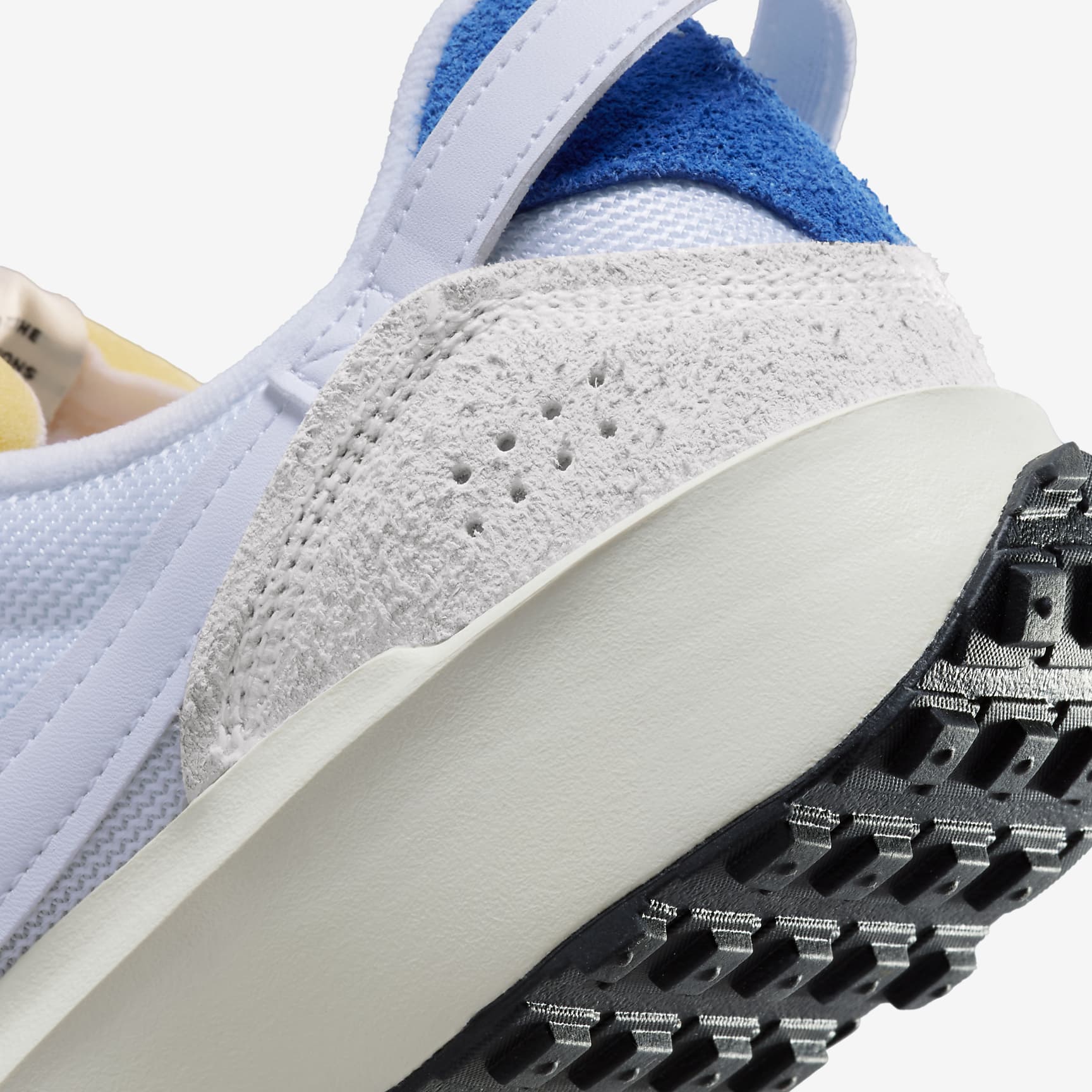 We've got a secret: these retro kicks are brand spanking new. Done in fluffy suede and airy textile, they deliver era-echoing, '70s style with modern comfort. An updated wedge midsole gives the cushioning a serious boost, while maintaining the iconic Waffle outsole you know and love. Benefits * Swoosh wraps around the back to form a pull tab for easy on and off. * Lifted foam midsole gives you an elevated look and comfortable feel. * Soft suede adds a vintage vibe, while textile underlays keep it breathable and durable. * Rubber Waffle outsole adds durable traction and heritage style.