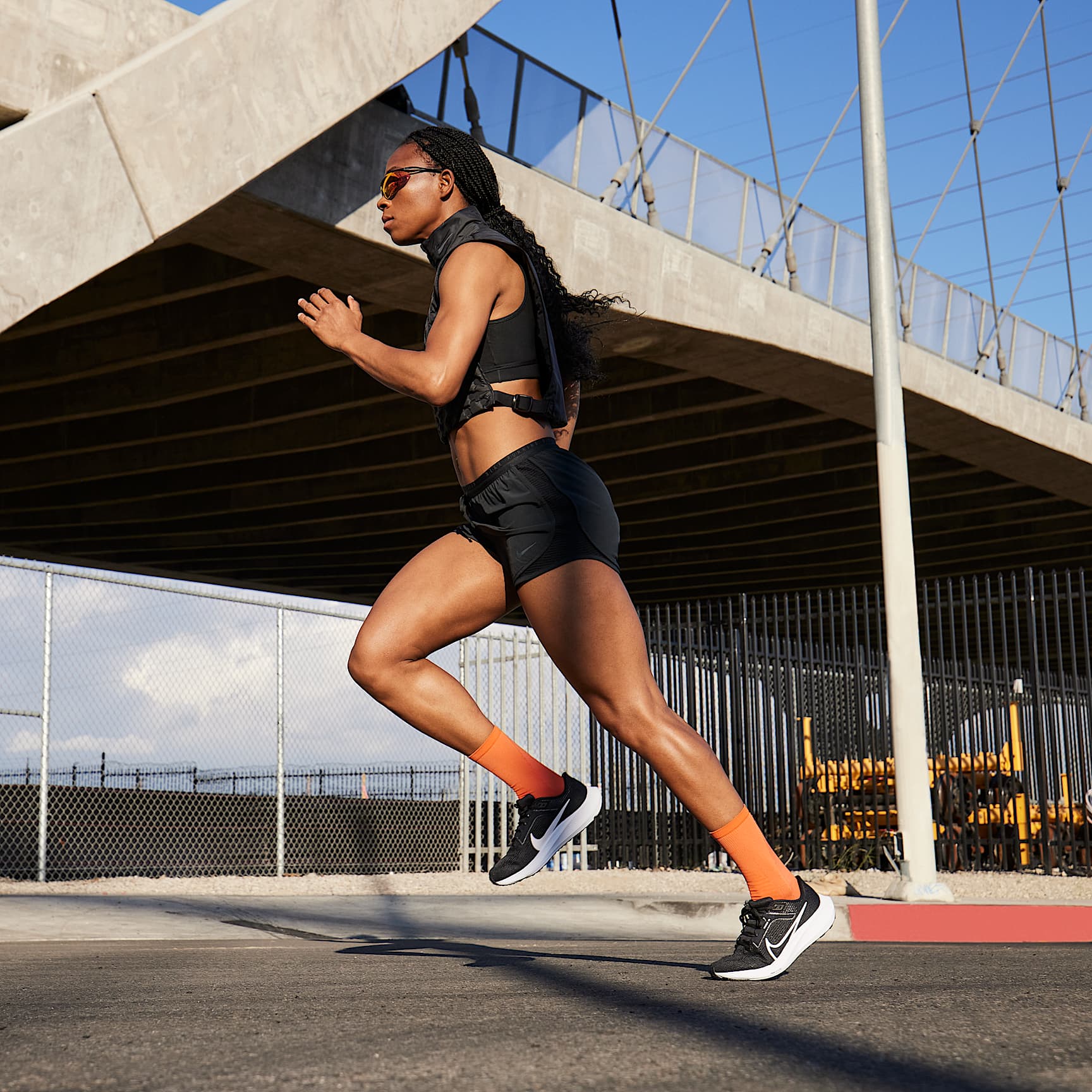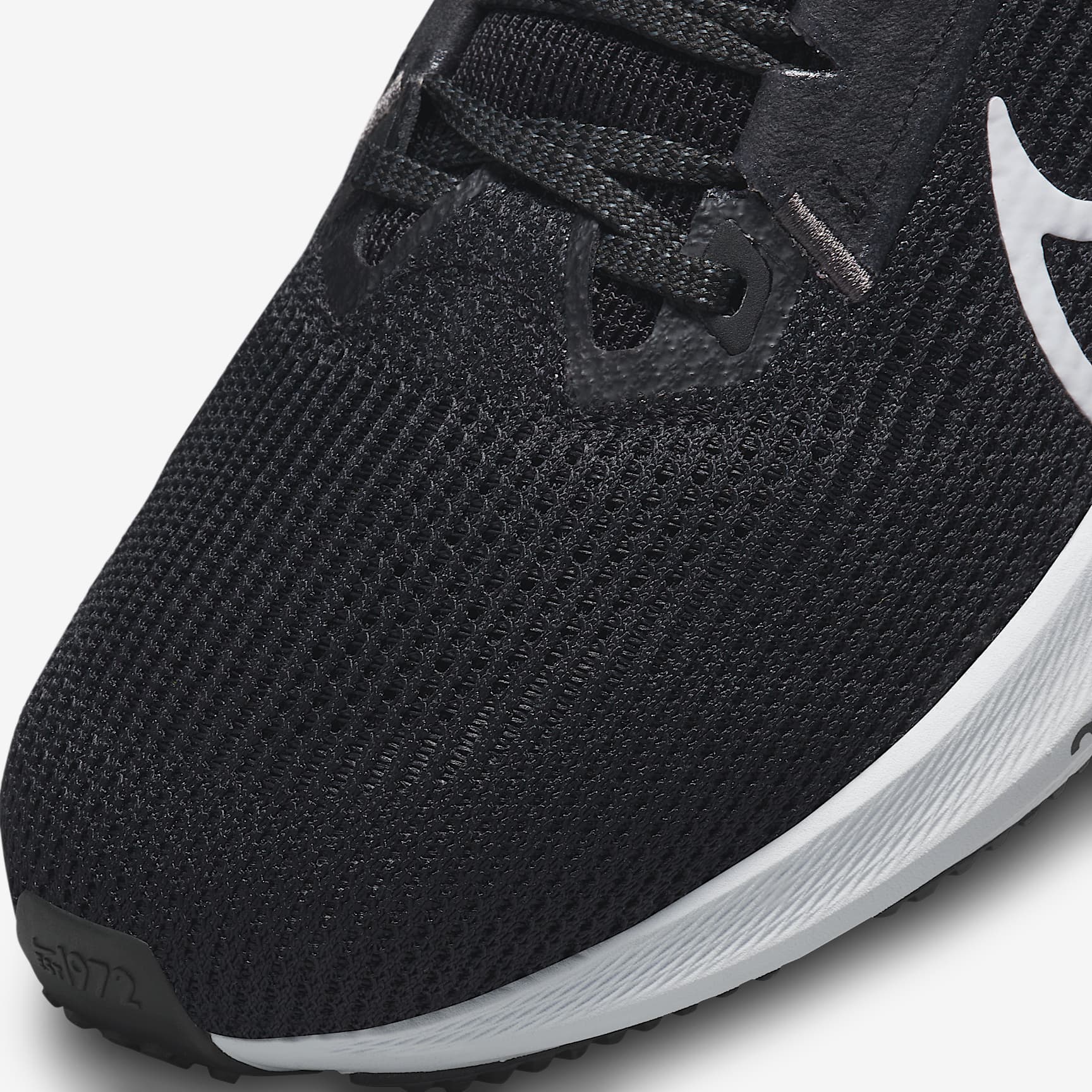 A springy ride for any run, the Peg's familiar, just-for-you feel returns to help you accomplish your goals. This version has the same responsiveness and neutral support you love but with improved comfort in those sensitive areas of your foot, like the arch and toes. Whether you're logging long marathon miles, squeezing in a speed session before the sun goes down or hopping into a spontaneous group jaunt, it's still the established road runner you can put your faith in, day after day, run after run. Support: Neutral The more supportive the shoe, the more stability it can give to your natural stride. A combination of tuned support and intentionally placed cushioning helps you feel secure with every step. The Peg 40 has neutral support. It gives you balance, whether you're a heel or a forefoot striker. It's good for long and short runs, too, providing a smooth transition from heel to toe. Cushioning: Medium The more cushioning that you have underfoot, the softer and more comfortable your running experience can be. Cushioning helps soften the impact as your feet hit the ground. Feel connected to the ground with Nike React technology: a lightweight, durable foam that delivers a comfortable, responsive ride. It holds its shape run after run to give you a consistent feeling. Responsiveness: High The more responsive the shoe, the more energy return you can get back with each step. Whether you want to run a little bit faster or with a little less effort, responsive shoes help give you slightly more spring in your step to get more out of your run. We paired Nike React technology with 2 Zoom Air units (1 in the forefoot and the heel) to give you a bouncy, springy sensation and an energised feel at toe-off. Inviting Fit and Feel A highly tuned single-layer mesh creates an inviting feel and fit. We redesigned the midfoot strap for a more moulded fit to the foot, shaped for all sized arches. What's New About the Peg 40? When we sat down to design the Peg 40, we took an inside-out approach, literally, starting with an implemented midfoot band for a more secure, but forgiving sensation, like the Peg is giving your arch a welcoming, gentle hug. We wanted to make the inner confines of the shoe comfortable, breathable and forgiving in the toes, arch and heel, where your feet are most sensitive, with an engineered circular pattern that allows it to adapt to your foot. More Benefits * The heel area optimises the landing space and improves transition and durability. * Waffle-inspired pattern provides traction for the road. * An extra flex groove offers a smooth toe-off. Product Details * Not intended for use as Personal Protective Equipment (PPE)
