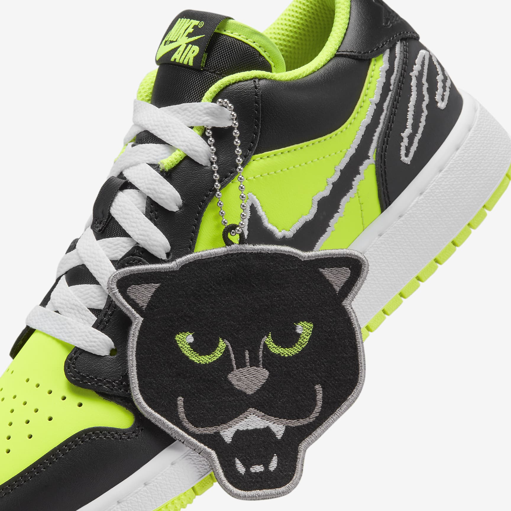 Wherever this summer takes you, you're ready to pounce with this pair of AJ1s. The look you love is infused with big-cat energy: an embroidered claw-torn Swoosh and claw marks plus a removable panther patch keep your look ferocious. Benefits * Leather offers durability and structure. * Nike Air-Sole units provide lightweight cushioning. * Solid rubber outsoles give you everyday traction. Product Details * Wings logo stamped on heel * Nike Air design on the tongue * Rubber traction