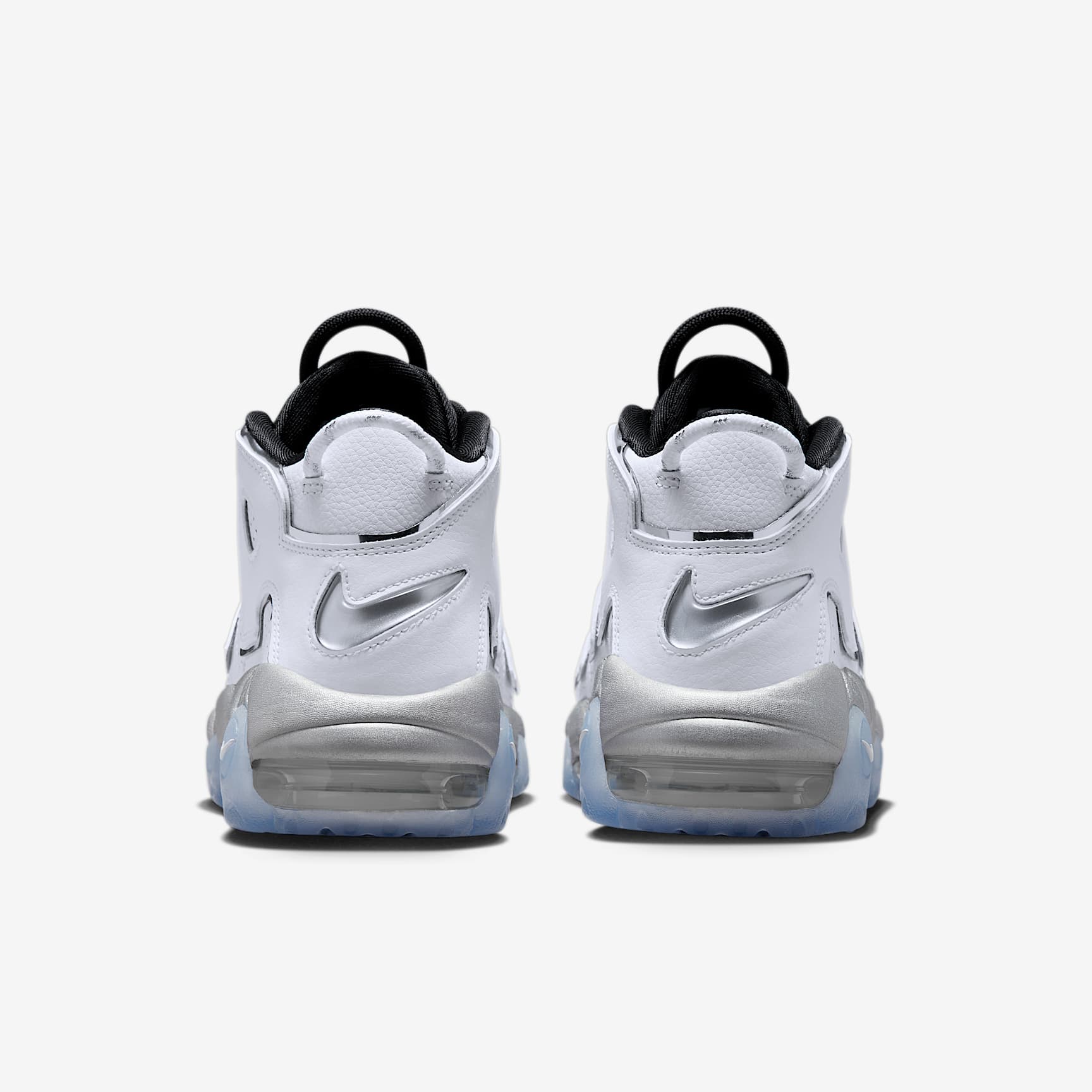 More than perhaps any other silhouette, the Air More Uptempo encapsulates '90s basketball flavour at its finest. Big and loud, the unapologetic design represents a hybrid of style and innovation that made major waves when it debuted—and still turns heads today. This crafted take keeps it subtle with a crisp white upper, set off by pops of Metallic Silver. The iconic AIR graphic comes outlined in metallic detailing for a little extra off-court flair. After all, "a little extra" is what these shoes do best. Benefits * Real and synthetic leather upper is durable and delivers a classic feel—just like the original. * Originally designed for performance hoops, Max Air units in the forefoot, midfoot and heel add cushioning you have to feel to believe. * 3 elastic straps over the tongue help keep these kicks in place, whether you rock them laced or unlaced. * Rubber sole gives you durable traction. Product Details * Not intended for use as Personal Protective Equipment (PPE) Nike Air The first of its kind, Nike Air technology absorbs impact for cushioning with every step. It's been built to help reduce the weight of the shoe without sacrificing performance, supporting both the athlete and the lifespan of the shoe.