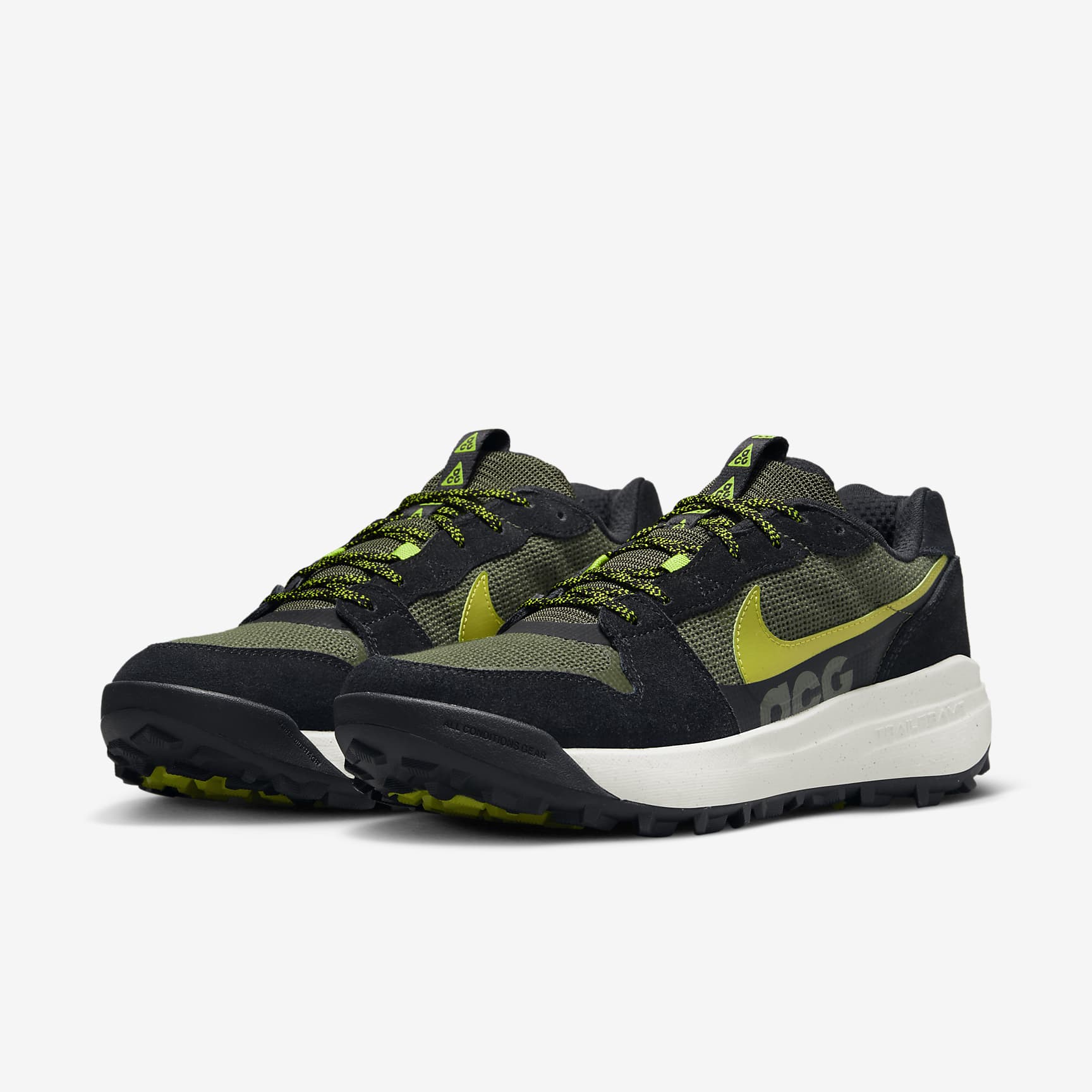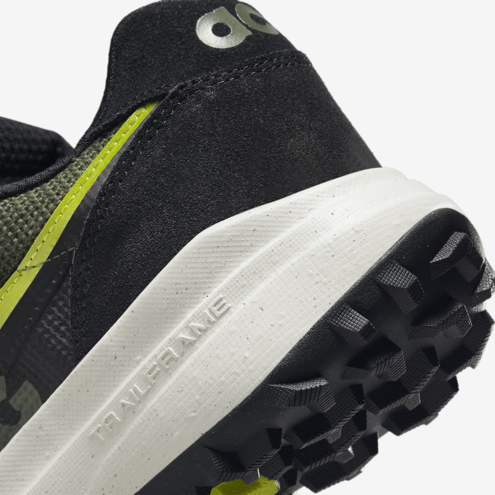 From streets to parks to trails, build up the miles in these city-to-adventure shoes. Designed and tested in the rugged Pacific Northwest, the mixed-material upper pairs durability with easy styling. A rubber outsole with a heavy-duty, tuned lug pattern grips slick and rocky terrain, so you can go up, down, through and around. City Style Meets Adventure Style A mixed-material upper delivers a classic outdoors look, is easy to style and can be taken from extra-wild lunch breaks to serious meetings in a flash. Get Going, Keep Going Trailframe underfoot (a shank above the midsole) provides support, especially when carrying heavy loads. Go Up, Go Down A rubber outsole with tuned lug pattern delivers traction while ascending, descending and on a variety of surfaces. More Benefits * Midfoot webbing locks in the fit. * Pull tab on the tongue provides easy on and off and doubles as a clip-in point, so you can easily attach them to your pack. Nike ACG Ready to conquer or escape the urban landscape, Nike All Conditions Gear outfits you in modern wear that tackles the elements. Windproof and waterproof fabrics and breathable technologies keep you covered, while next-level design equips you with versatile storage and style options.