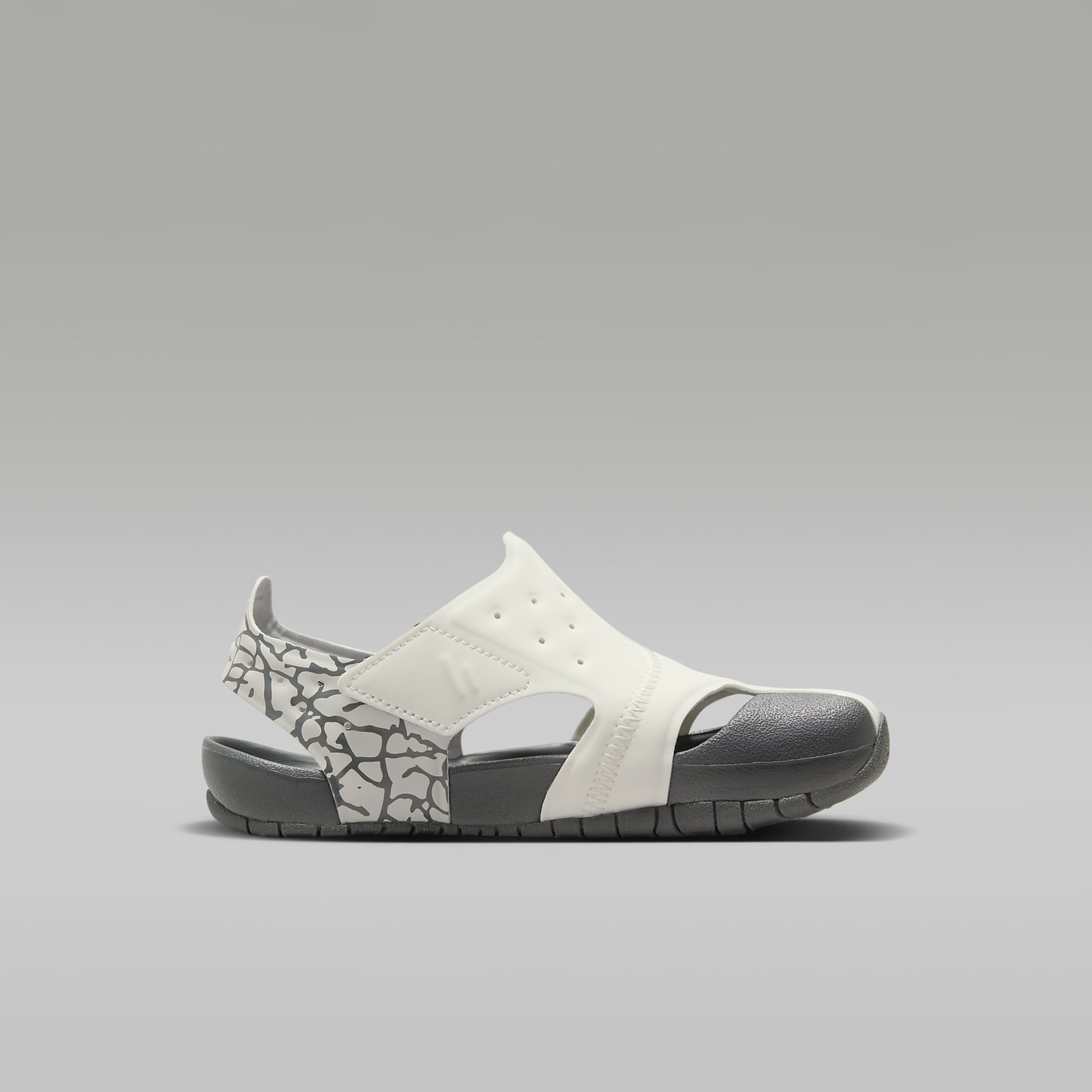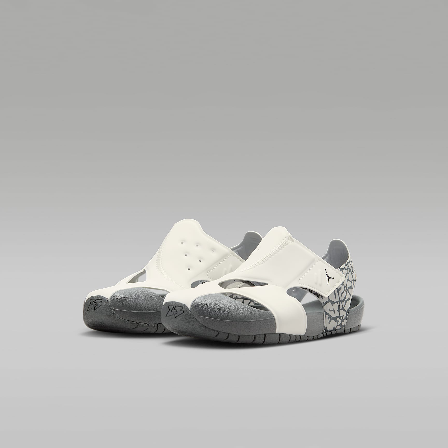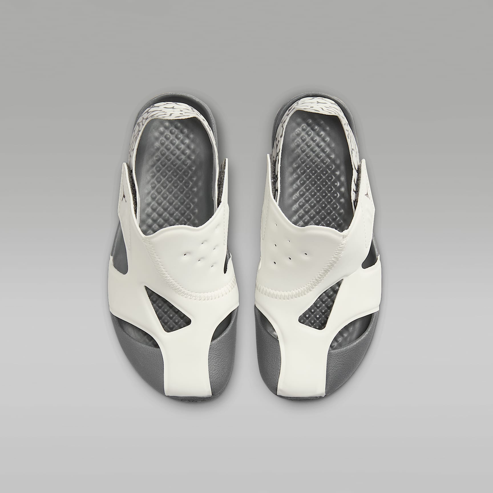 MADE TO RUN AND PLAY. Perfect for active kids, the Jordan Flare is light, breathable and comfortable. It's easy to get on, has a heel band to keep it from slipping off and is covered in the front to help prevent toe stubs. Benefits * Stretchy, quick-drying material has a snug, comfortable fit. * The soft rubber outsole provides traction on multiple surfaces and has grooves for flexibility. * A moulded heel piece helps the sandal fit snugly. * The textured footbed is soft and comfortable. * A hook-and-loop strap makes it easy to get on and off. Product Details * Closed toe area