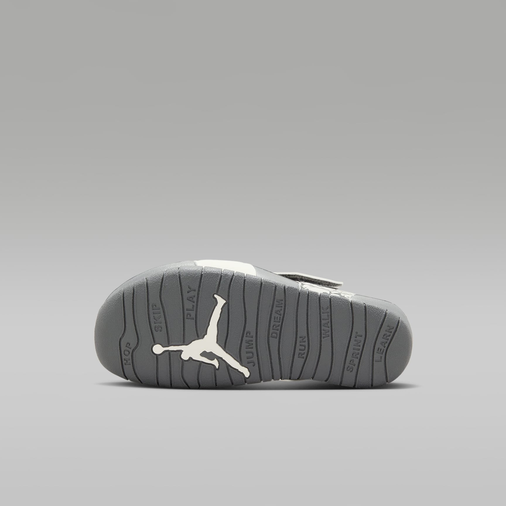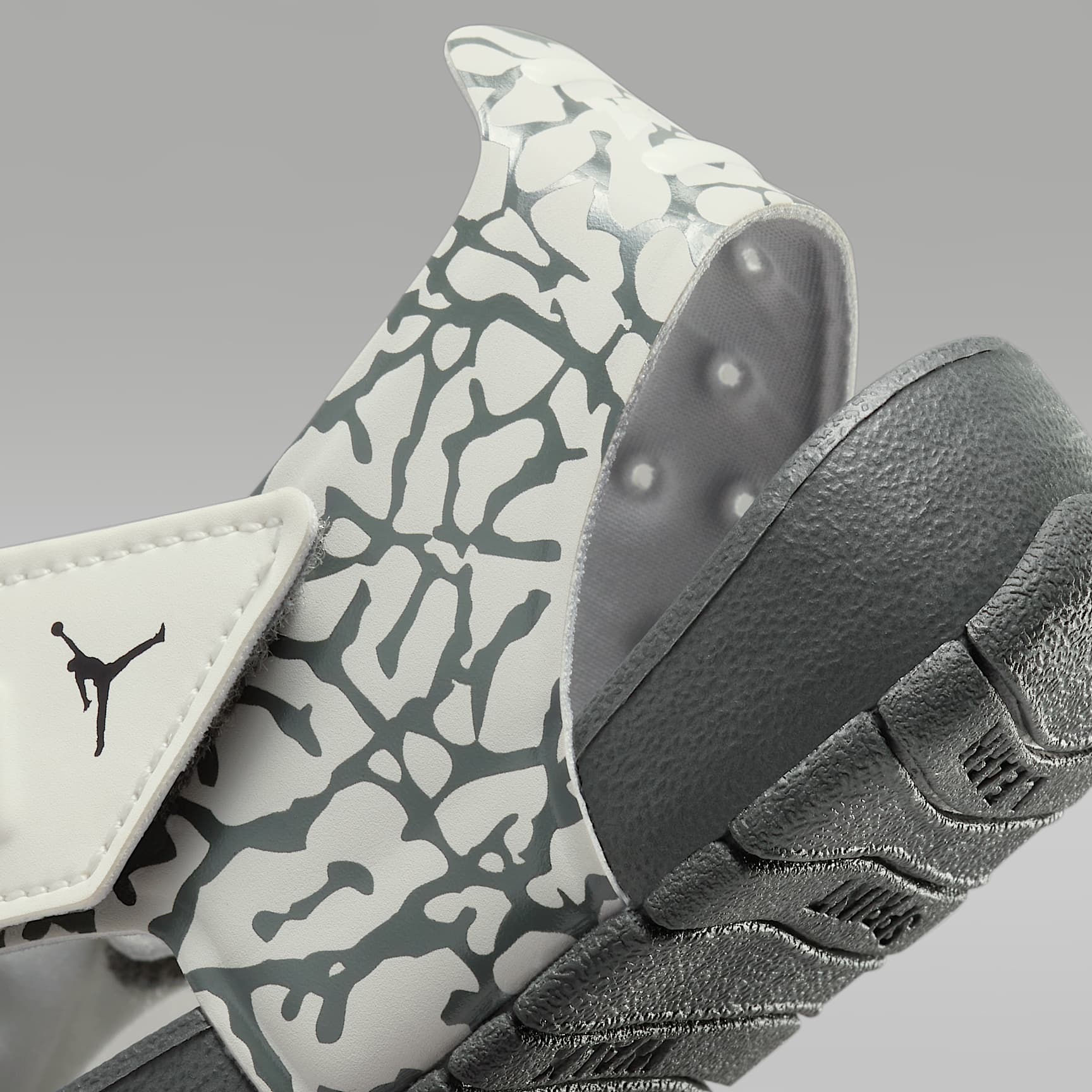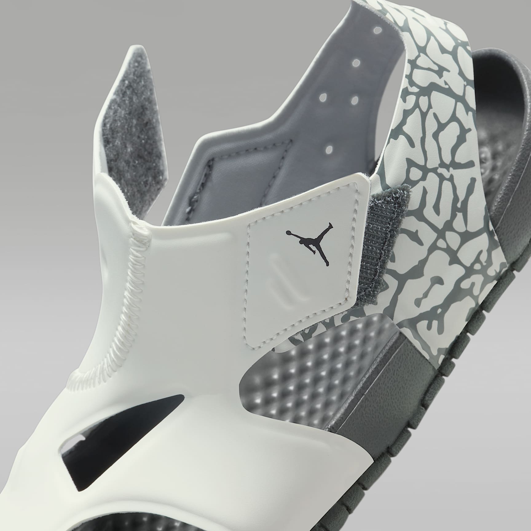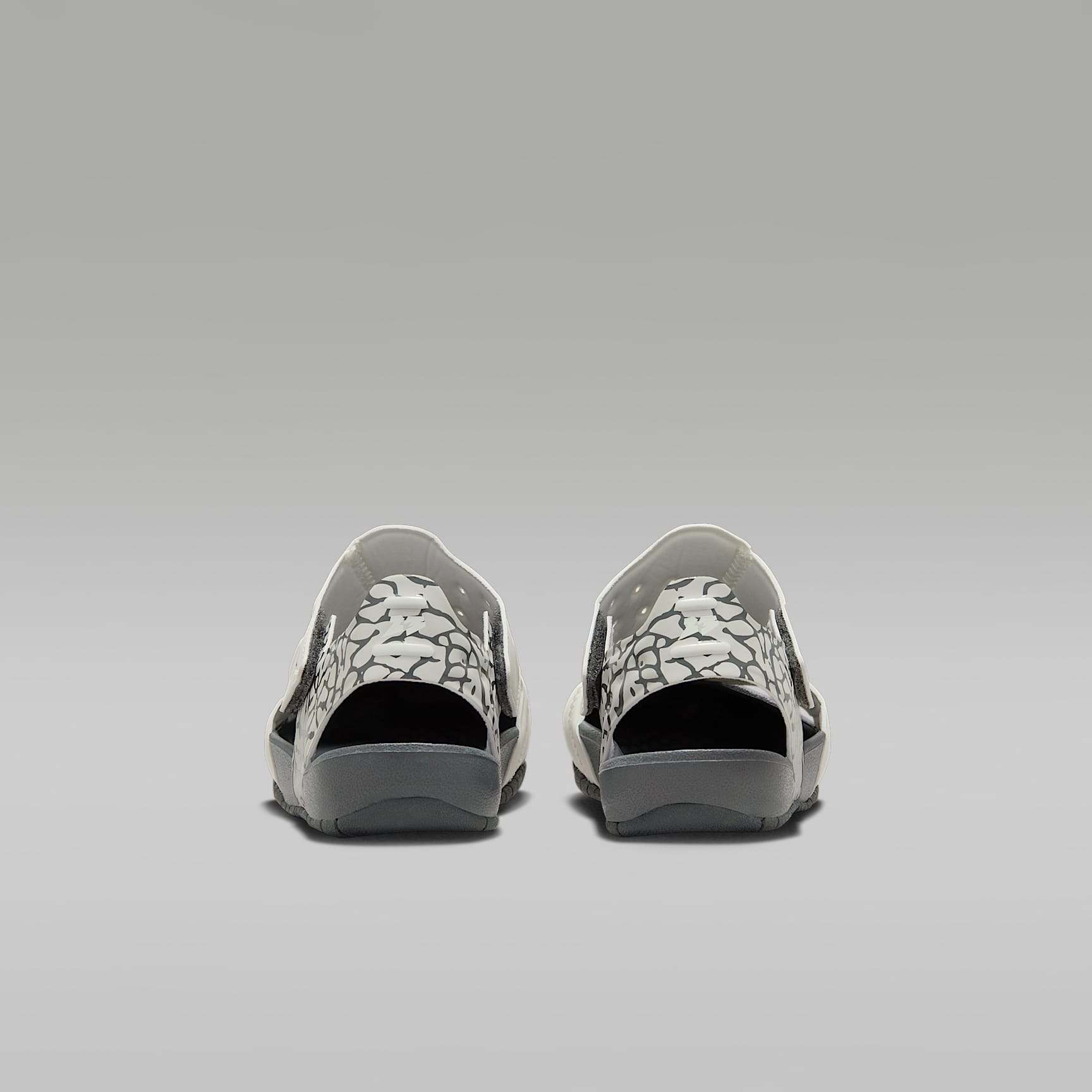 MADE TO RUN AND PLAY. Perfect for active kids, the Jordan Flare is light, breathable and comfortable. It's easy to get on, has a heel band to keep it from slipping off and is covered in the front to help prevent toe stubs. Benefits * Stretchy, quick-drying material has a snug, comfortable fit. * The soft rubber outsole provides traction on multiple surfaces and has grooves for flexibility. * A moulded heel piece helps the sandal fit snugly. * The textured footbed is soft and comfortable. * A hook-and-loop strap makes it easy to get on and off. Product Details * Closed toe area