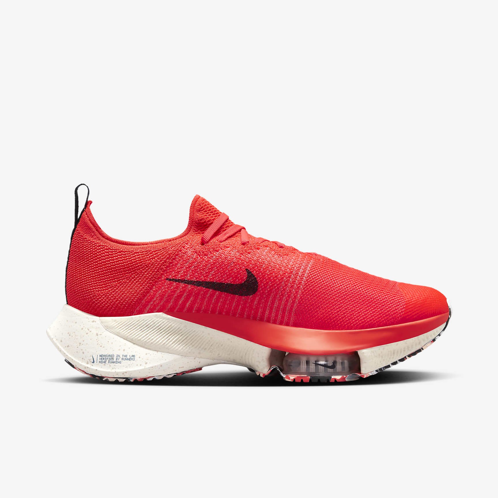 A DURABLE TRAINER, MADE TO BREAK RECORDS. While these speedsters could easily pass the test on race day, they double as your go-to shoe for your training routine. The supportive fit and soft cushioning work together to make them comfortable enough to withstand those double-digit mileage days, and light enough to help quicken your tempo when the time is right. Responsive Feel The Nike ZoomX foam in the footbed delivers energy return, while a visible Zoom Air unit provides responsive cushioning—giving you an additional spring with your stride. Nike React technology is a lightweight, durable foam that delivers a smooth, responsive ride. Runner-Informed Traction Using data from hundreds of runners, traction is placed where your foot needs the most grip on multiple surfaces. Fast Fit A translucent Flyknit upper provides breathability in areas where your foot heats up the most. It uses strong, stretchy yarns to create a lightweight-yet-supportive feel with every mile. More Benefits * Asymmetrical lacing helps keep your foot secure and in place. * Semi-adhesive removable sockliner allows for easy replacement. Product Details * Cushioned heel pods * Heel pull tab * Rubber outsole