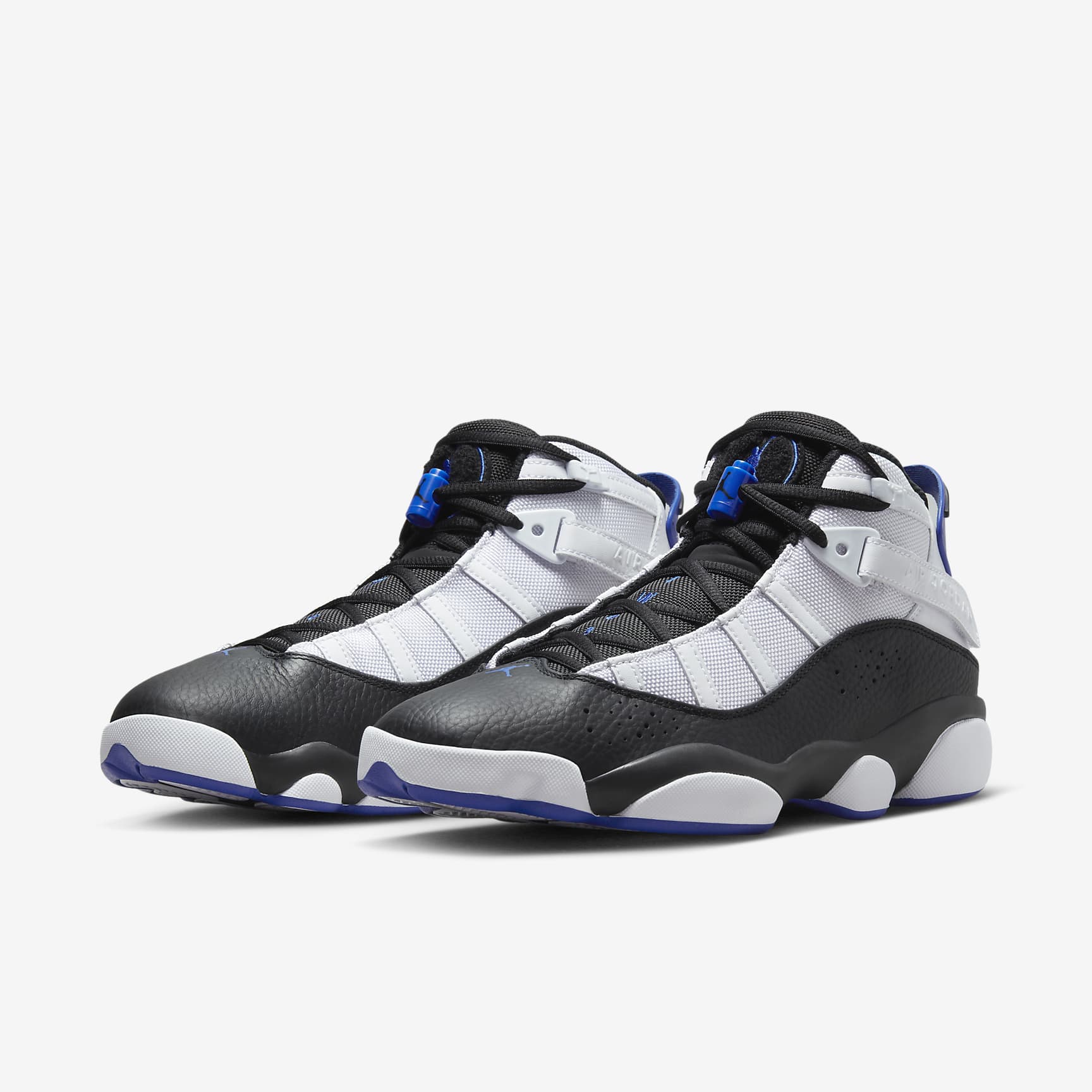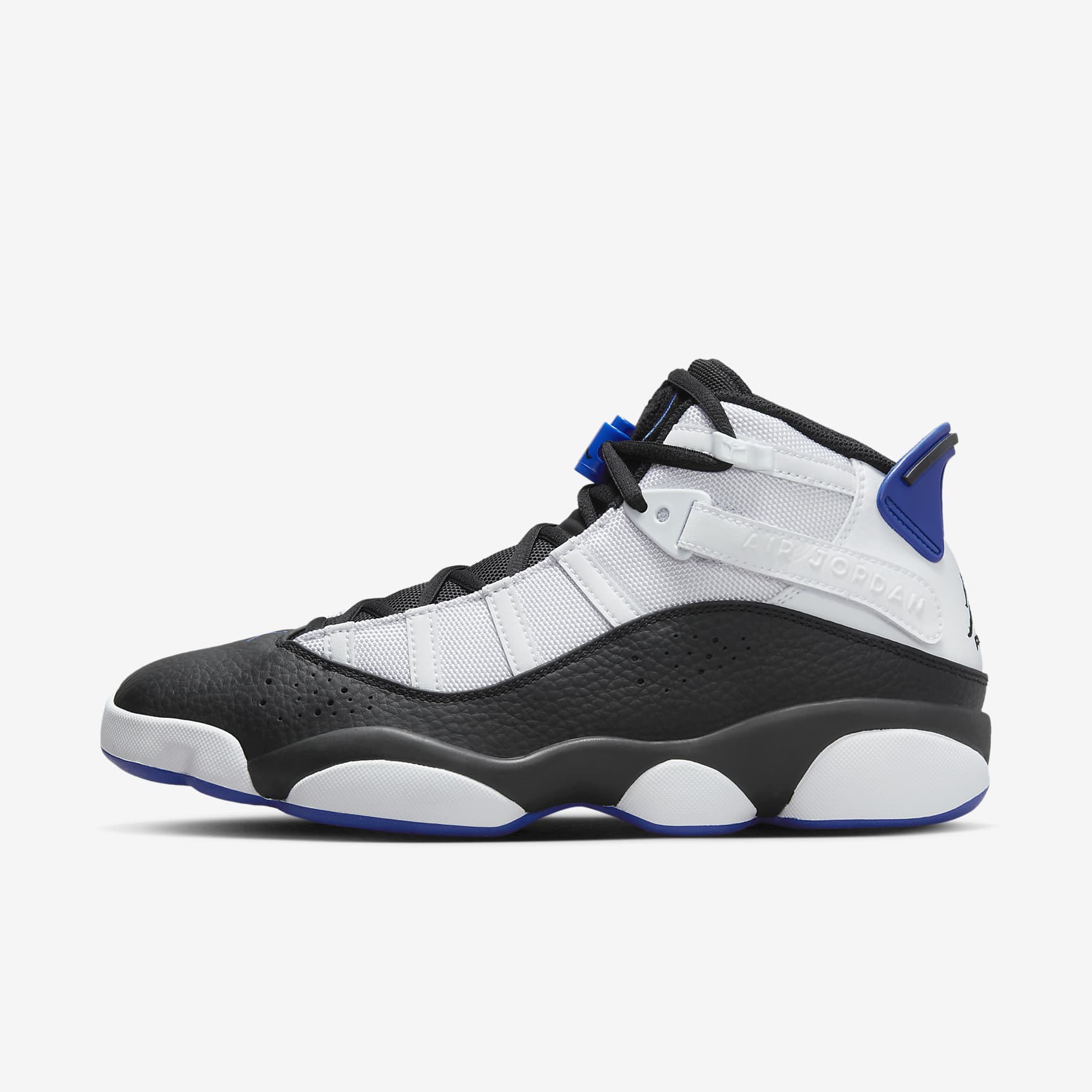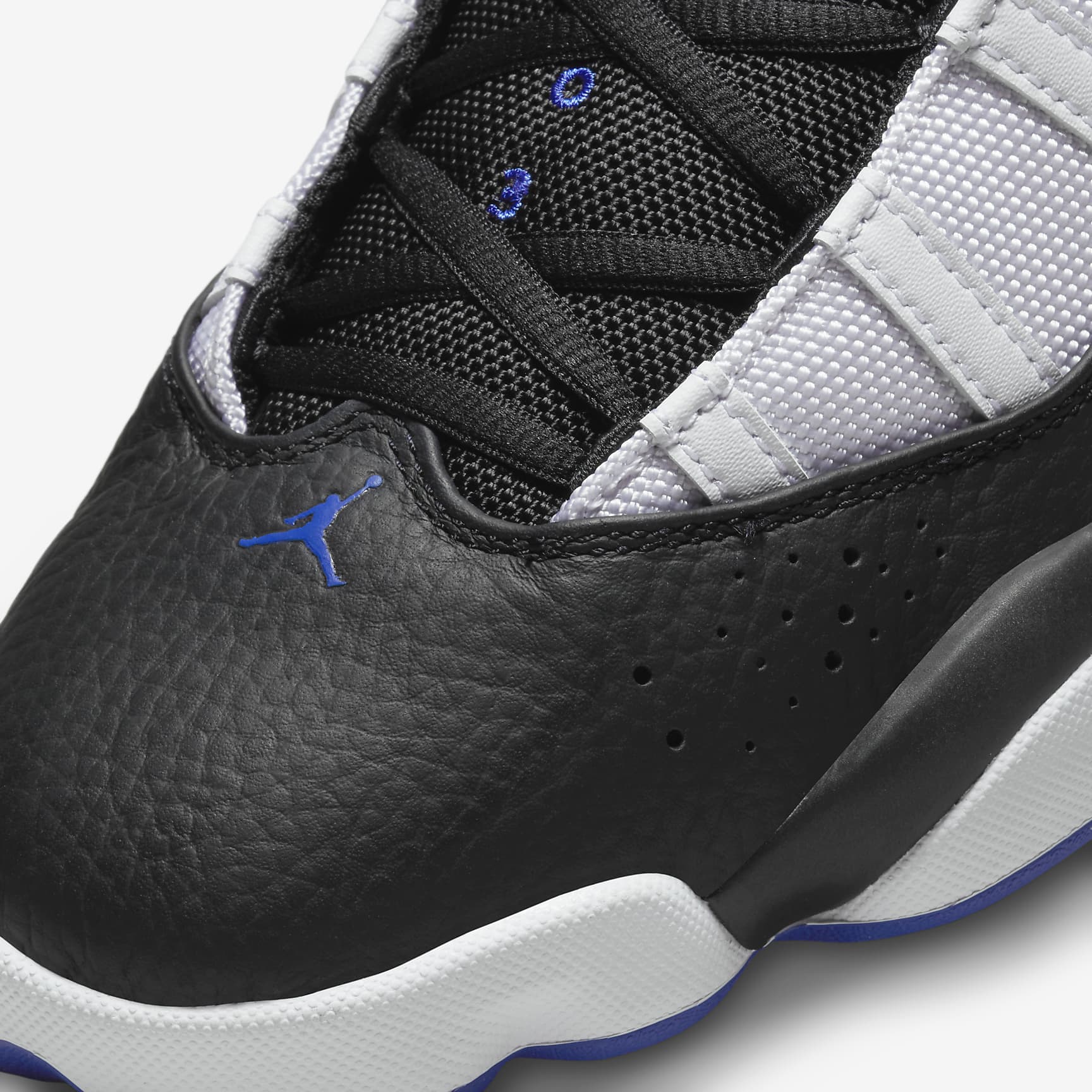 LIGHTWEIGHT DESIGN. HEAVYWEIGHT LEGACY. Celebrate the legendary career of "His Airness" with the Jordan 6 Rings. Incorporating key features of each shoe worn during the championship series, it has premium details and lightweight, low-profile Zoom Air cushioning that delivers a responsive feel underfoot. Benefits * Zoom Air units in the heel and forefoot provide lightweight, responsive cushioning. * Leather, synthetic leather and/or textile materials in the upper for comfort and durability. * Foam midsole for stability and lightweight cushioning. * Rubber outsole offers durability and traction. * Heel tab for easy on and off.