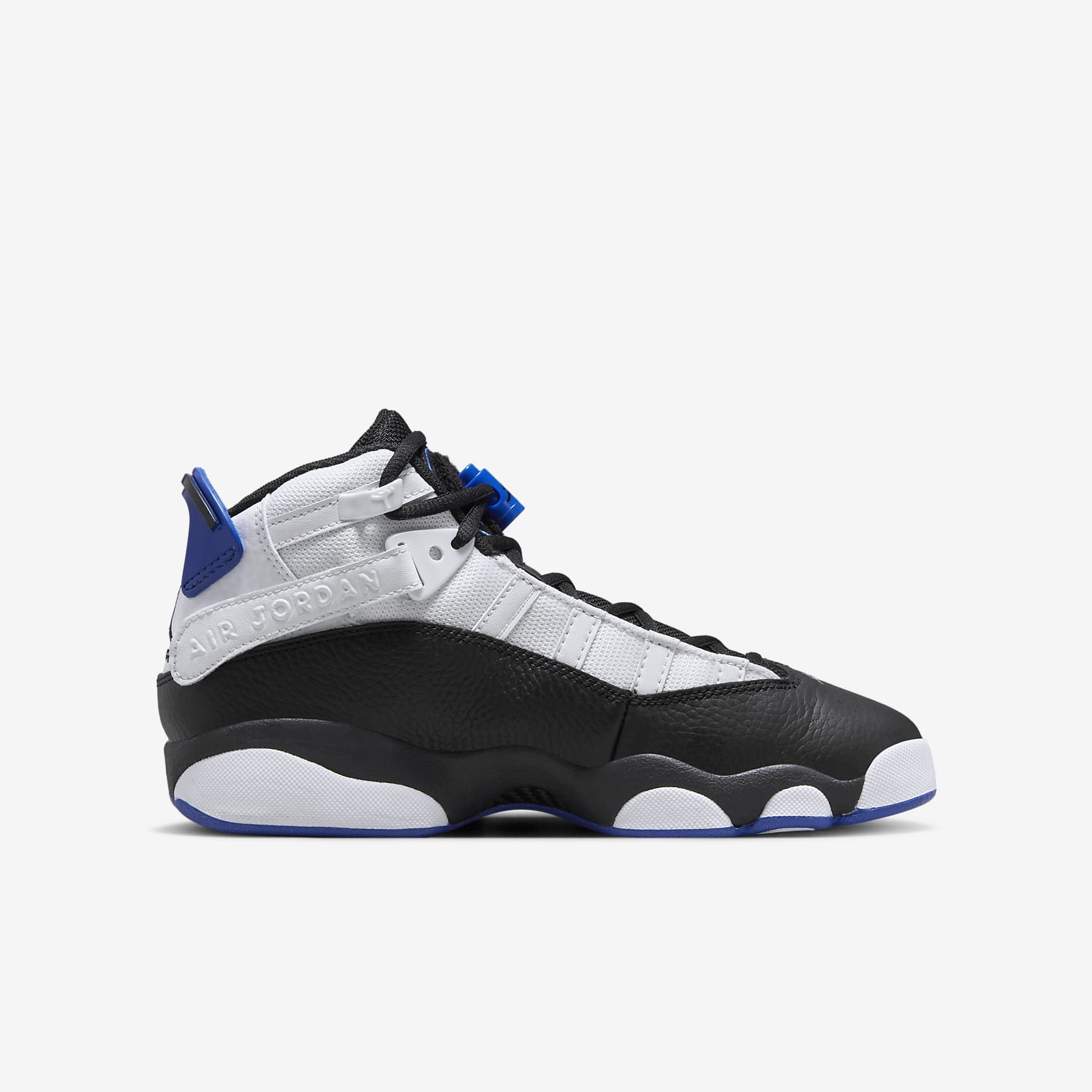 LIGHTWEIGHT COMFORT, HEAVYWEIGHT LEGACY. Celebrate the legendary career of "His Airness" with the Jordan 6 Rings. Incorporating key features of each shoe worn during the championship series, it has premium details and lightweight cushioning for a luxe look. Benefits * Leather, synthetic leather and/or textile materials in the upper for comfort and durability. * Foam midsole for stability and lightweight cushioning. * Rubber outsole offers durability and traction. * Heel tab for easy on and off.
