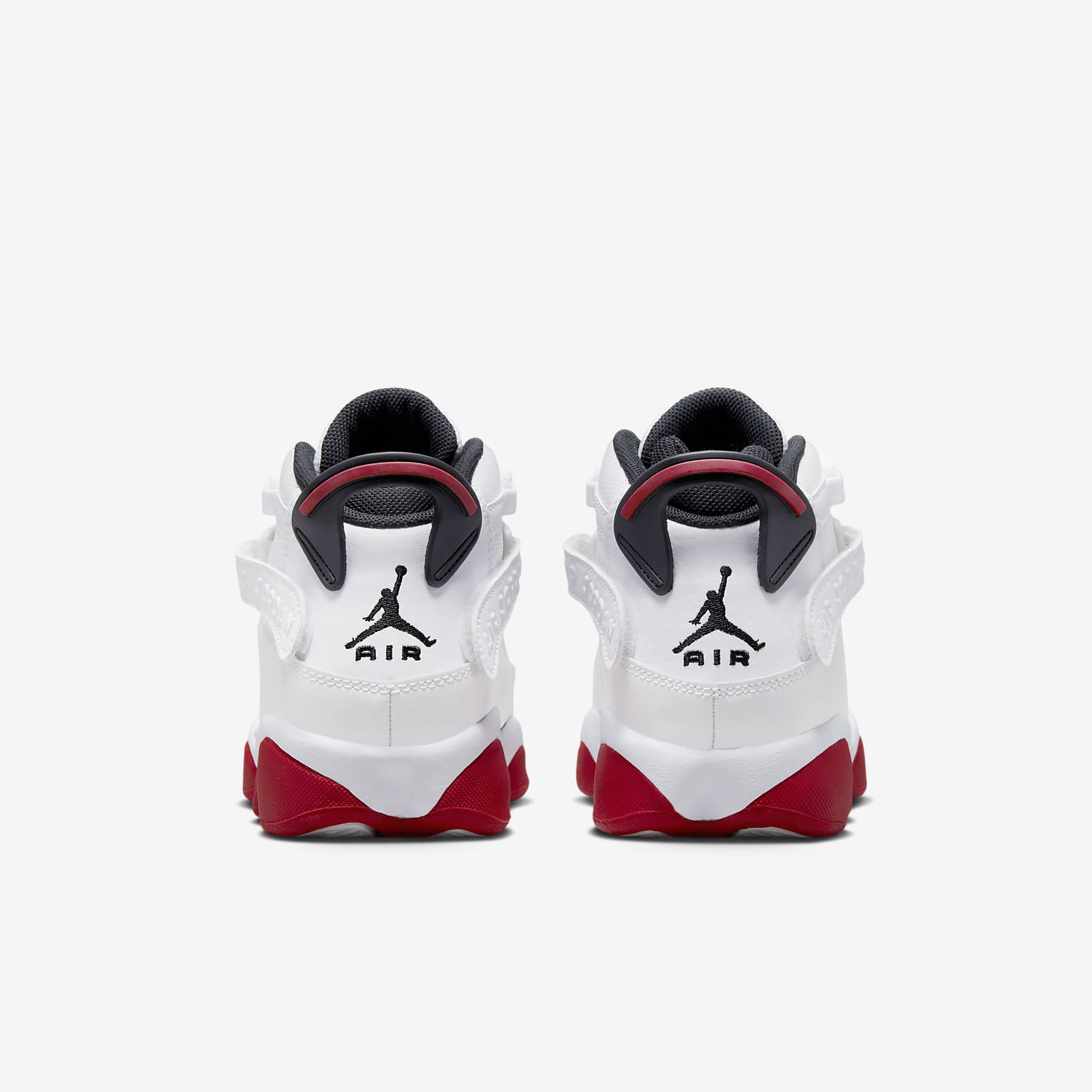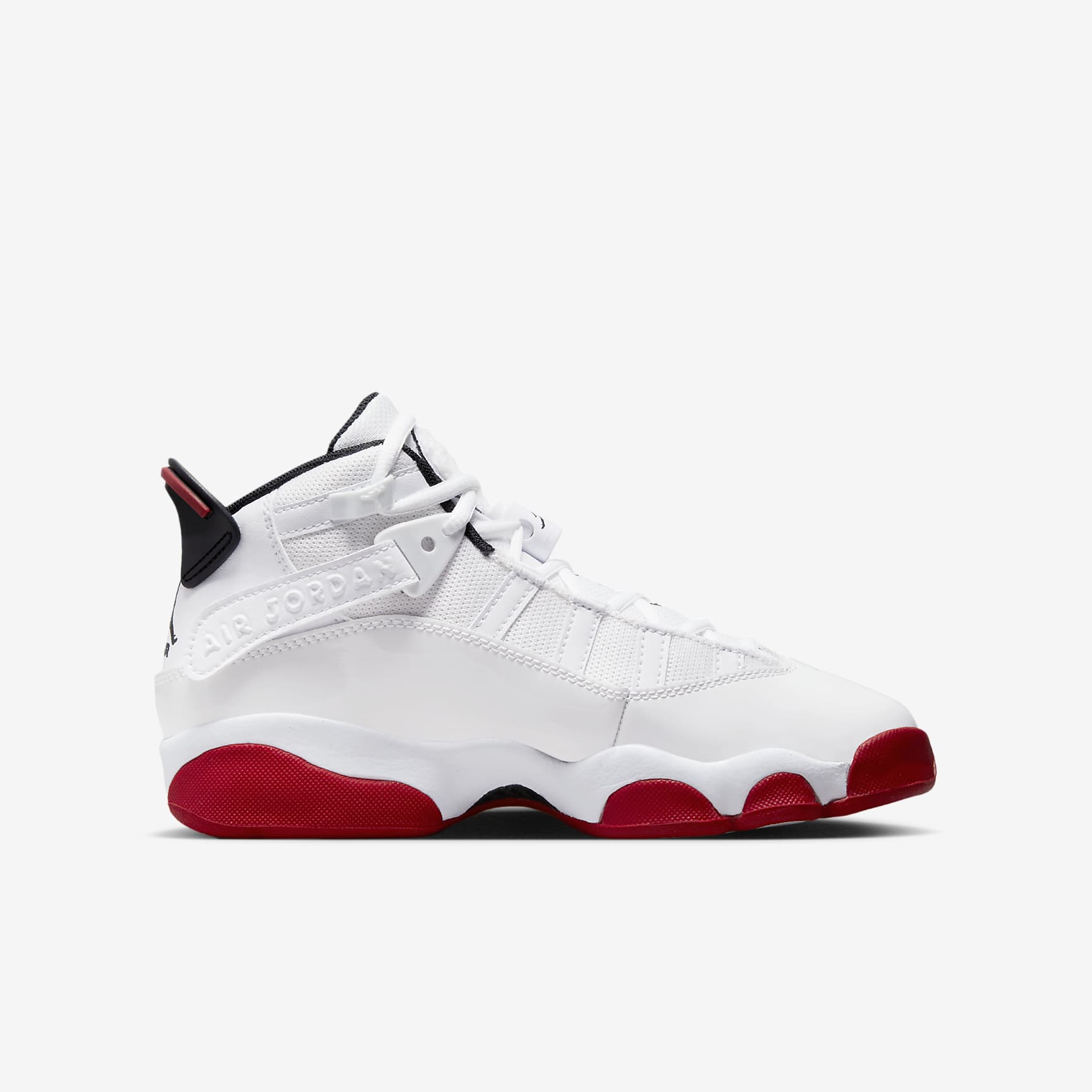 LIGHTWEIGHT COMFORT, HEAVYWEIGHT LEGACY. Celebrate the legendary career of "His Airness" with the Jordan 6 Rings. Incorporating key features of each shoe worn during the championship series, it has premium details and lightweight cushioning for a luxe look. Benefits * Leather, synthetic leather and/or textile materials in the upper for comfort and durability. * Foam midsole for stability and lightweight cushioning. * Rubber outsole offers durability and traction. * Heel tab for easy on and off.