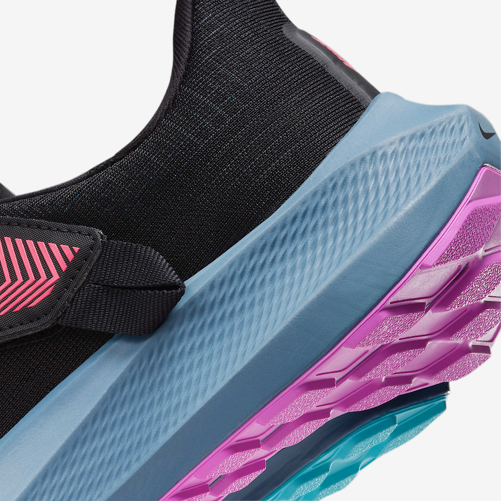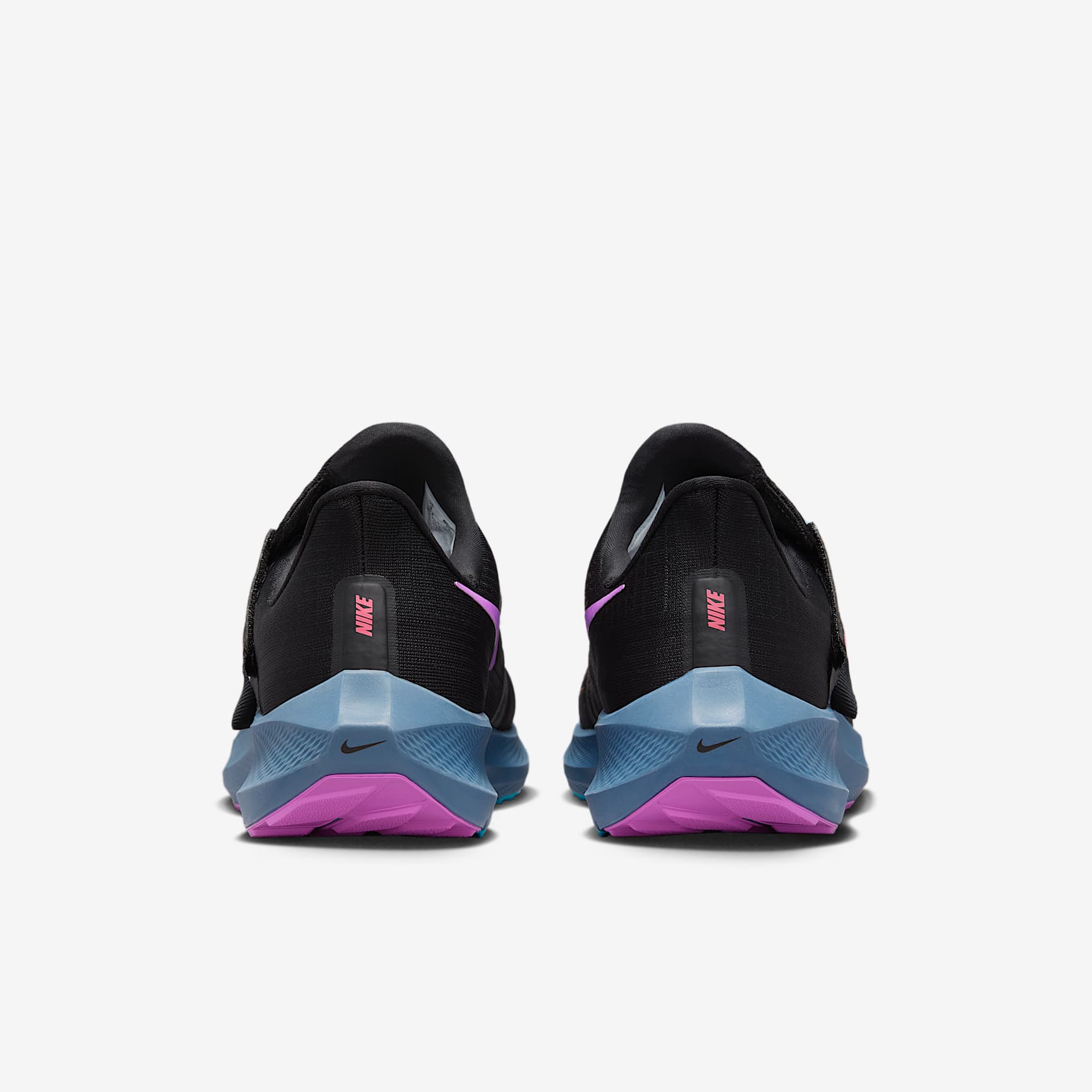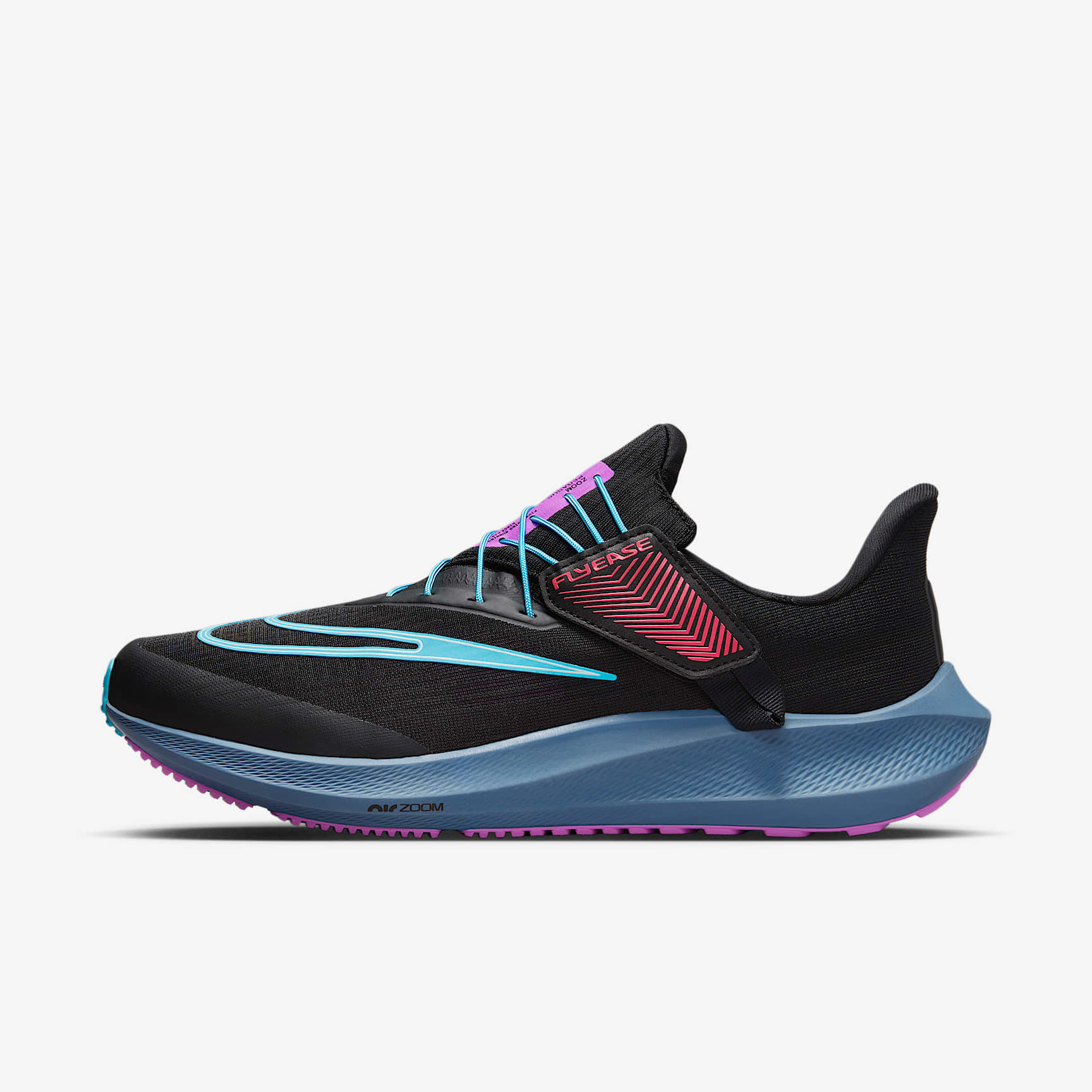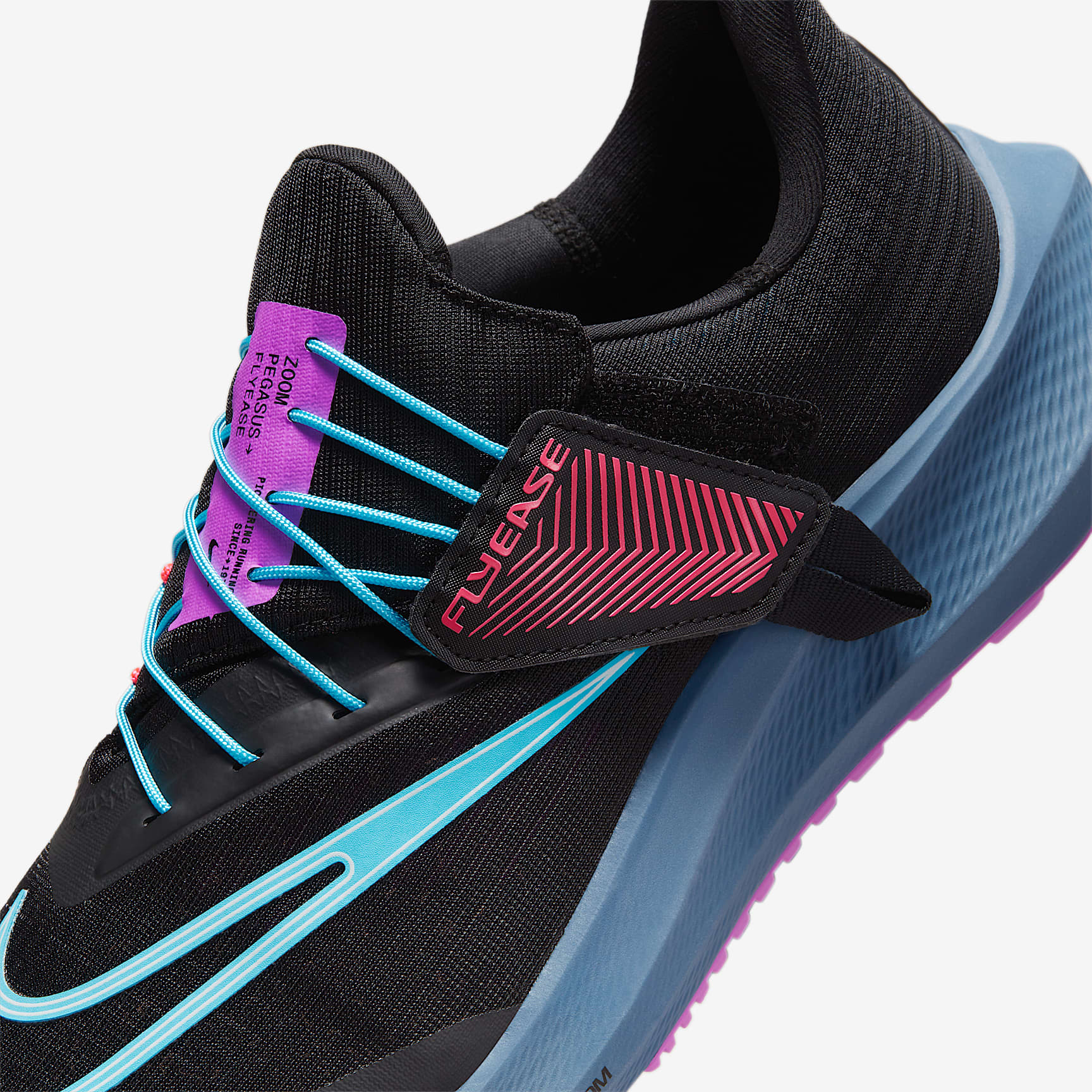 Let the Pegasus FlyEase help you ascend to new heights. Designed to offer a balanced and energised ride for every run, they provide a supportive sensation that helps your foot feel contained. Plus, Nike FlyEase technology acts as a strap, helping secure your fit and making these easy to get on and off. Zoom Air units in the forefoot and heel help add a pop to your stride as you transition from heel to toe. Sharp, bright hues complement dark-room-colour neutrals, speaking to an inclusive world where digital and physical coexist in harmony. Support: Neutral The more supportive the shoe, the more stability it can give to your natural stride. A combination of tuned support and intentionally placed cushioning helps you feel secure with every step. This Peg has neutral support. It gives you balance, whether you're a heel or a forefoot striker. It's good for long and short runs, too, providing a smooth transition from heel to toe. Cushioning: Moderate The more cushioning that you have underfoot, the softer and more comfortable your running experience can be. Cushioning helps soften the impact as your feet hit the ground. This Peg has Nike React foam, a lightweight, durable foam that delivers a smooth responsive ride. Responsiveness: High The more responsive the shoe, the more energy return you can get back with each step. Whether you want to run a little bit faster or with a little less effort, responsive shoes help give you slightly more spring in your step to get more out of your run. We paired the Nike React foam with 2 Zoom Air units, at the forefoot and heel, for an energised feel at toe-off. The result is a smooth transition from heel to toe. Get in Fast A FlyEase strap over the upper lets you easily slip in and out of the shoe. Use the strap to help secure the fit. We increased the foam around the collar for better fit and comfort. Then we improved internal linings and padding throughout for an incredibly smooth fit. Let it Breathe A highly tuned single layer mesh with familiar and trusted structures and yarns creates an inviting feel and fit. The mesh was engineered to allow great feel and airflow for great breathability. More Benefits * Heel area is designed to maximise the landing space and improve transition and durability. * Waffle-inspired tread on the outsole provides traction. * An added extra flex groove offers a smooth feel at toe-off. * The rubber outsole is more durable thanks to a utilised compound.