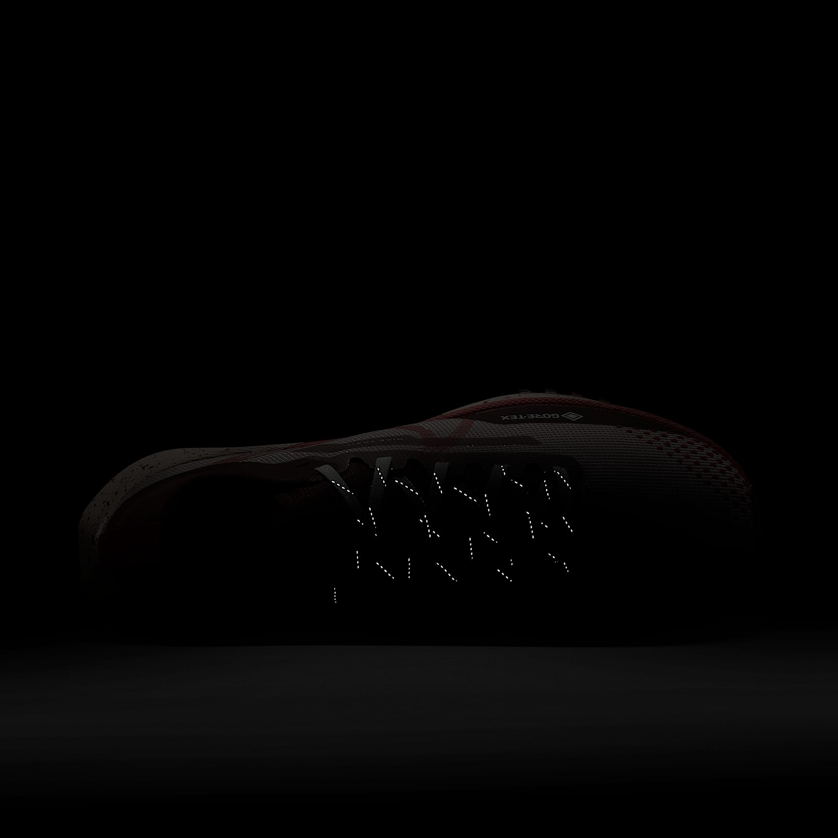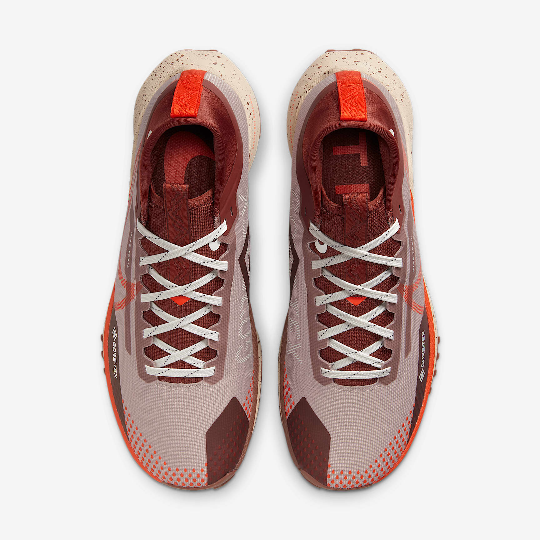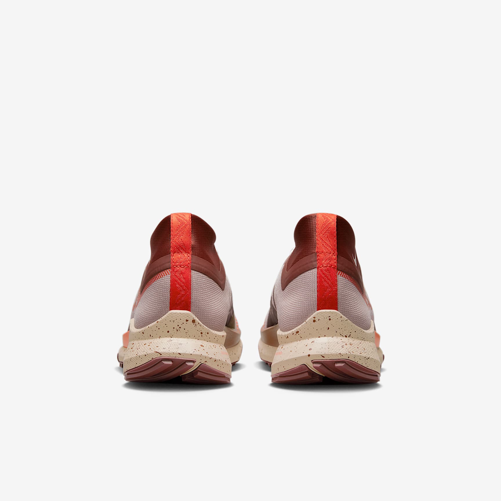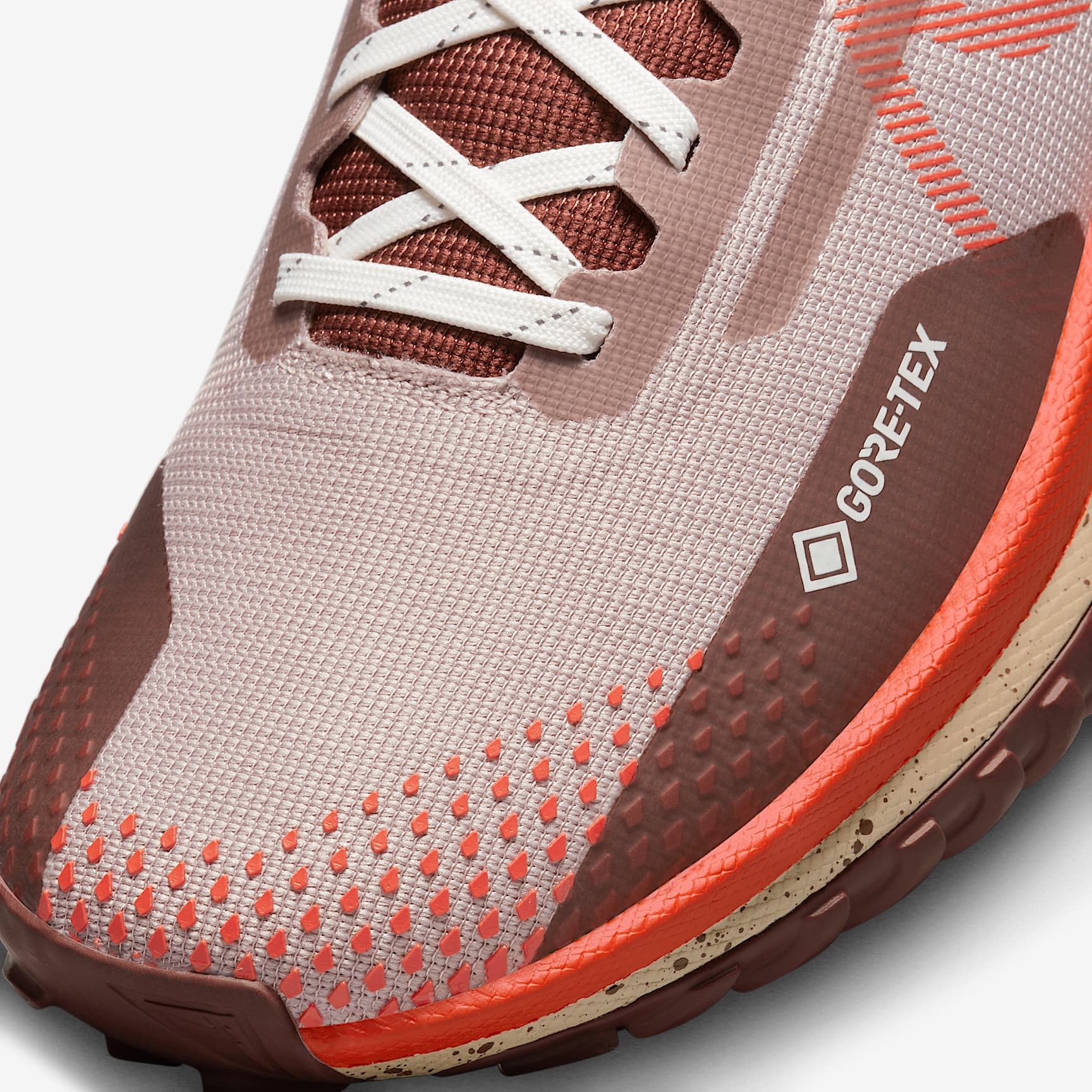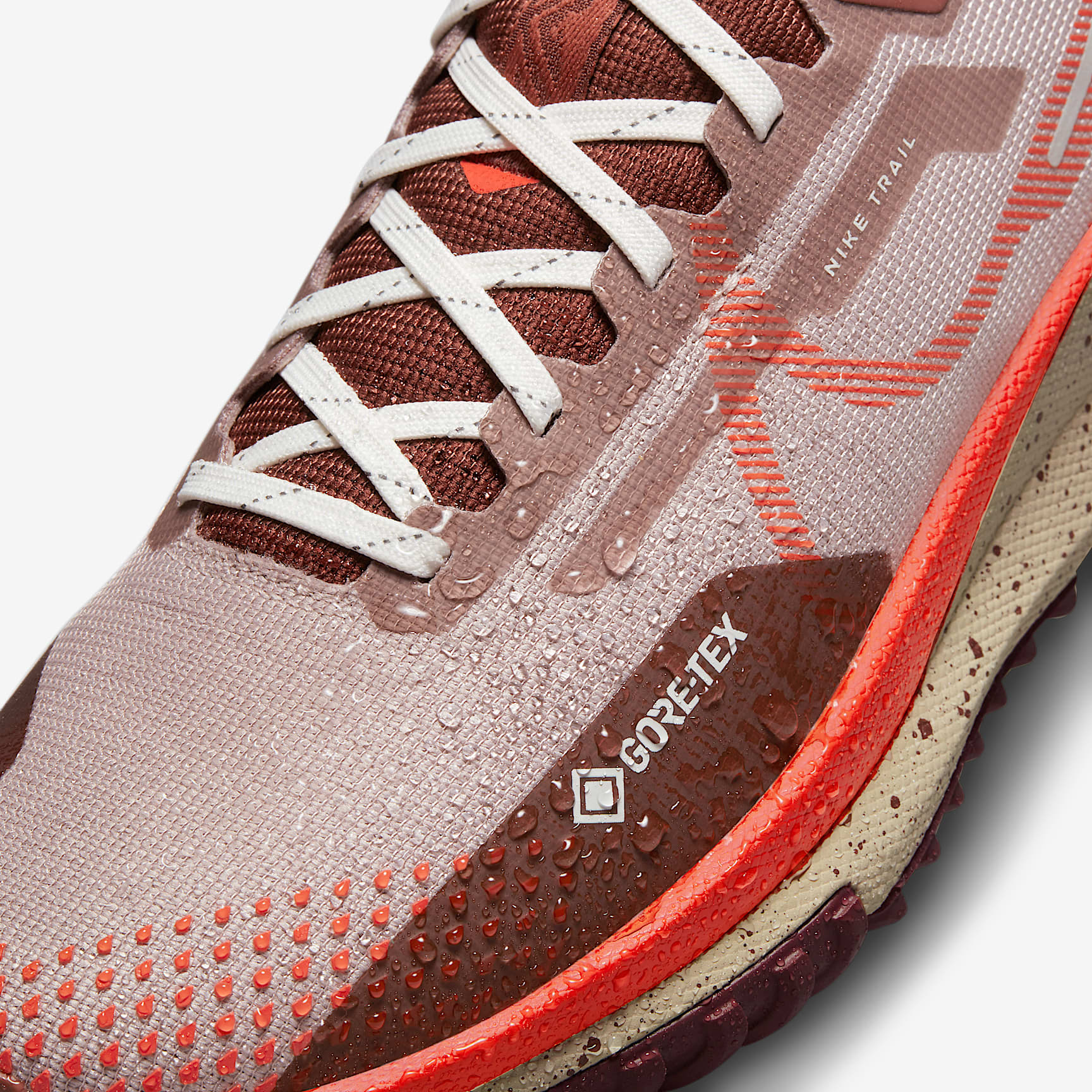 TRAIL-READY RESPONSIVENESS FOR WET WEATHER. The Nike Pegasus Trail 4 GORE-TEX is made for those moments when you don't want to turn back, no matter what. Feel confident even in the most unforeseen weather conditions with waterproof GORE-TEX keeping you dry, so you can run harder for longer and take your wet run from the road to the trail without breaking stride. A waterproof layer paired with a higher ankle gaiter gives you extra coverage so you stay dry. Storm Ahead A GORE-TEX layer helps keep out water so your feet stay dry. The all-new gaiter at the collar is higher to help keep extra debris and water from getting inside your shoe. GORE-TEX's invisible fit along the upper provides protection from precipitation without sacrificing that comfortable feel of the Peg Trail. Its flexible, lightweight design keeps your foot dry when running between the wet roads and trails. Smooth and Stable Nike React technology is a lightweight, durable foam that delivers a smooth, responsive ride. Its full-length design provides stability as you brave rocky terrain. Traction In All Directions Less rubber along the outsole creates a smoother transition from road to trail. The rubber wraps around the front of the shoe for extra durability. Its generative traction pattern is combined with rubber nubs to give you grip when going uphill or downhill. A generative traction pattern combined with rubber provides extra grip for technical trails while maintaining a smooth ride for the road. Product Details * The inspirational message by the heel will vary between "JUST DO IT" and "JUST RUN IT", depending on the shoe * Pull loops on the heel and tongue * Not intended for use as Personal Protective Equipment (PPE)