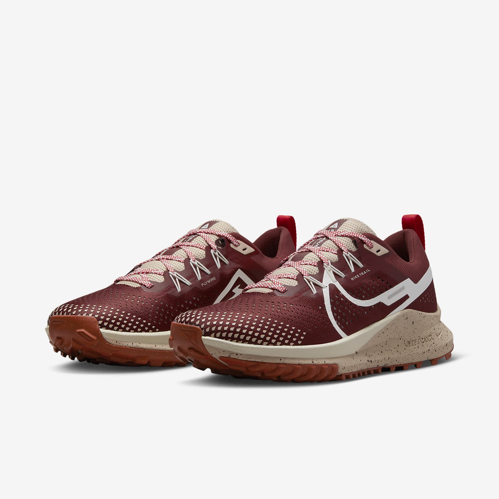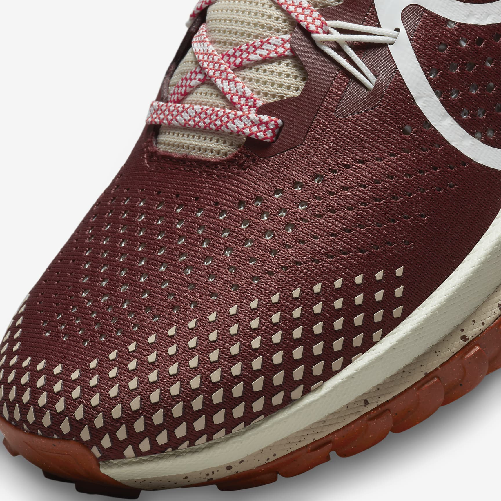 ENERGISED FROM ROAD TO TRAIL. Running is your daily ritual, taking you from road to trail as you seek out new adventures and goals. Let the Nike Pegasus Trail 4 take you there and back again with its supportive and springy feel. Underfoot traction keeps you going over rocky terrain, while still providing a smooth ride for the road. Midfoot support is controlled by the laces, letting you find the right fit and feel. Your trusted workhorse with wings is ready for an off-road journey. Time to fly. Light, Yet Tough Runner-informed data was used to create and place engineered mesh throughout the upper for a sturdy, lightweight and breathable feel. We placed extra skins across the toes for durability. Supportive Steps Flywire technology is integrated with a midfoot band for total support that helps keep your foot in place. Energised Movement Nike React technology is a lightweight, durable foam that delivers a smooth, responsive ride. Grip While You Rip The rubber outsole has a generative traction pattern, created using data from runners like you. It gives your foot grip in key areas, helping you stay upright and stable over rocky trails, while also maintaining a smooth ride on the road. Built to Resist Abrasion Rubber from the outsole wraps up onto the forefoot to help resist abrasion and provide more durability. Product Details * The inspirational message by the heel will vary between "JUST DO IT" and "JUST RUN IT", depending on the shoe * Not intended for use as Personal Protective Equipment (PPE)