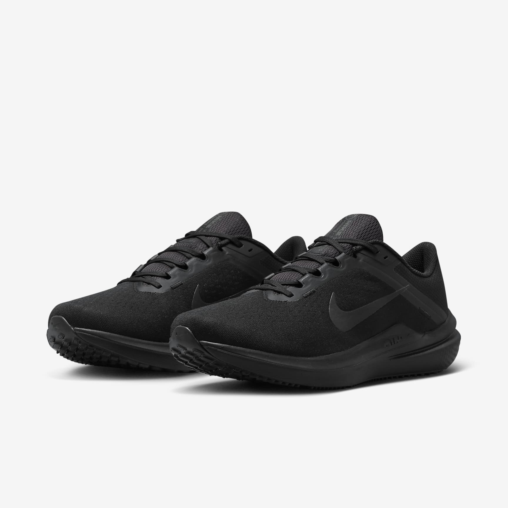 A balanced ride to help kick-start your run, the Winflo 10 is great whether you're a creature of habit logging your weekly mileage, a rookie hoping to turn intrigue into routine or just joining a friend for a spontaneous weekend run. A neutral support shoe with springy Nike Air, plus more space in the forefoot, leads to a comfortable, bouncy feel. It's ready-made for your run, whenever the road is calling your name. Support: Neutral The more supportive the shoe, the more stability it can give to your natural stride. A combination of tuned support and intentionally placed cushioning helps you feel secure with every step. The Winflo 10 has neutral support. It gives you balance, whether you're a heel or a forefoot striker. It's good for long and short runs, too. Cushioning: Medium The more cushioning that you have underfoot, the softer and more comfortable your running experience can be. Cushioning helps soften the impact as your feet hit the ground. Full-length Nike Air cushioning gives you a soft, comfortable feel for your miles. Responsiveness: Medium The more responsive the shoe, the more energy return you can get back with each step. Whether you want to run a little bit faster or with a little less effort, responsive shoes help give you slightly more spring in your step to get more out of your run. Soft foam in the midsole works with the Nike Air cushioning to give you a bouncy, springy feel. What's New About the Winflo 10? A revamped toe box provides a better fit for all foot types compared to the Winflo 9. Plus, we increased the collar comfort and fit, with padding where it counts most. More Benefits * Engineered mesh—stronger and more flexible than ordinary mesh—improves hand feel and comfort while maintaining a lightweight, breathable feel. * Overlays at the toe add a layer of durability. * The tongue is connected to the upper's inner lining for a secure feel.