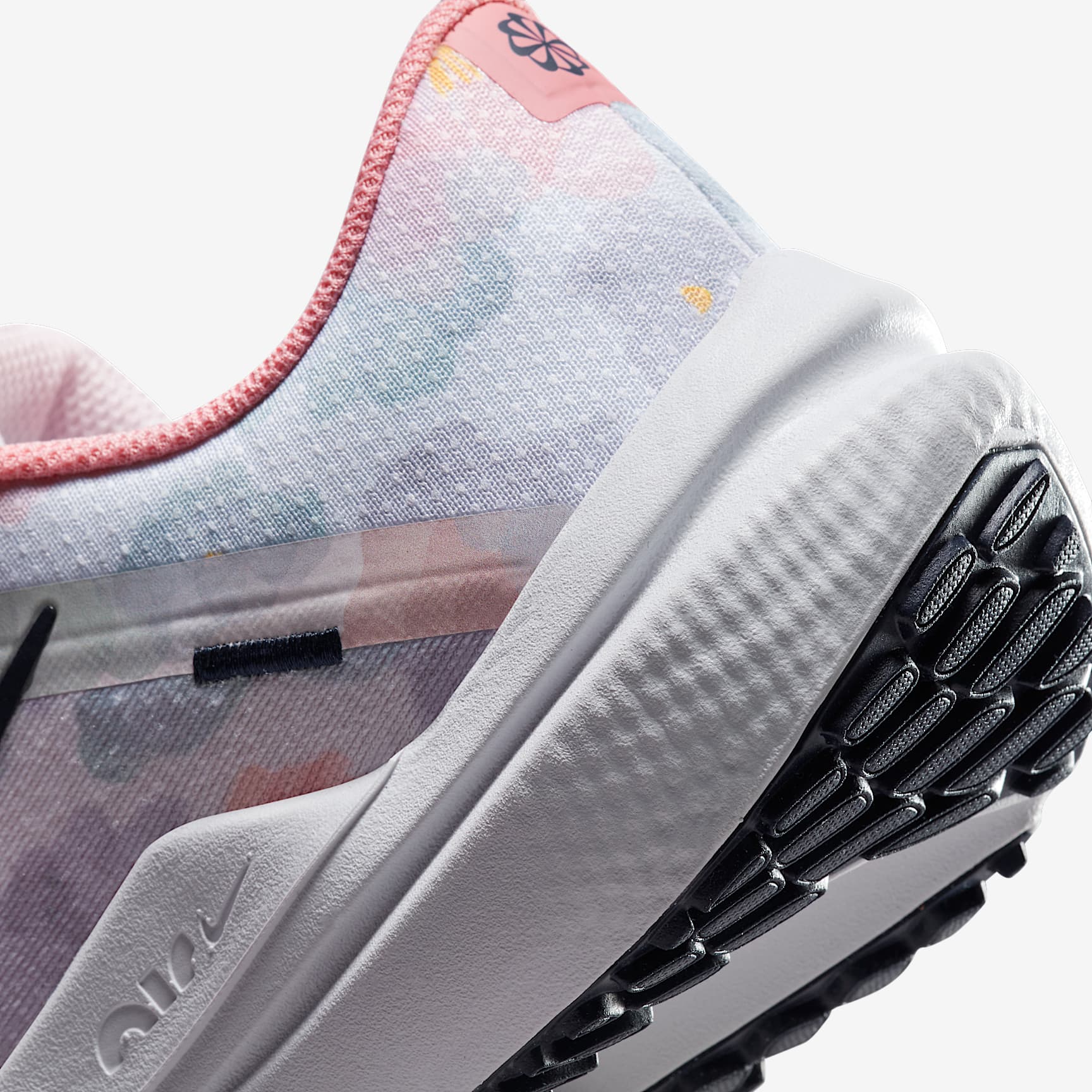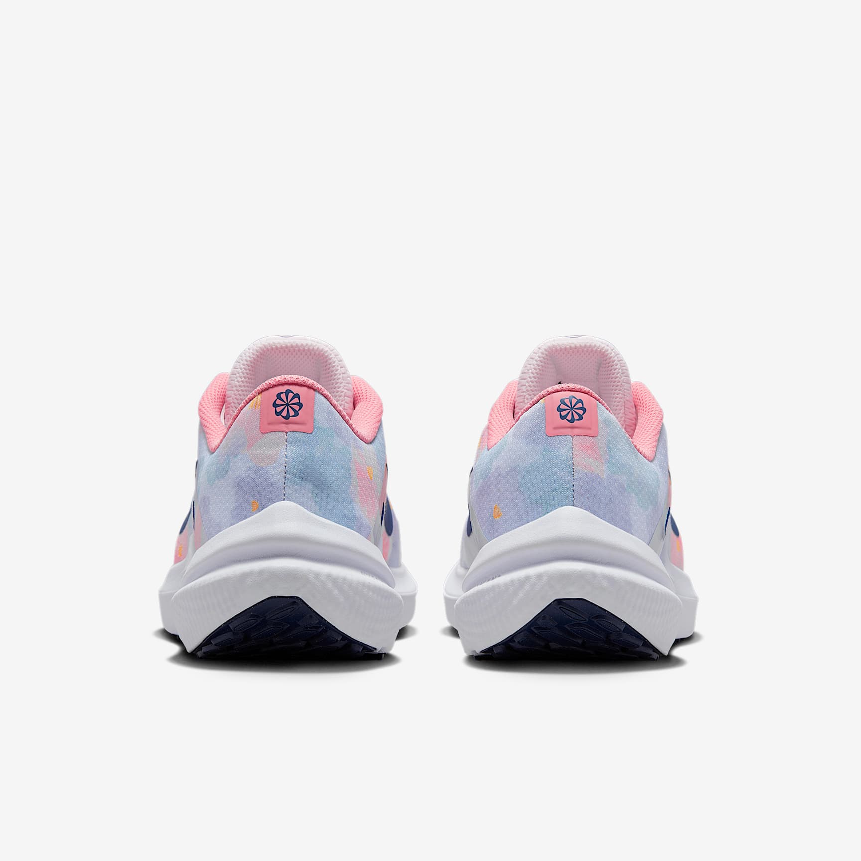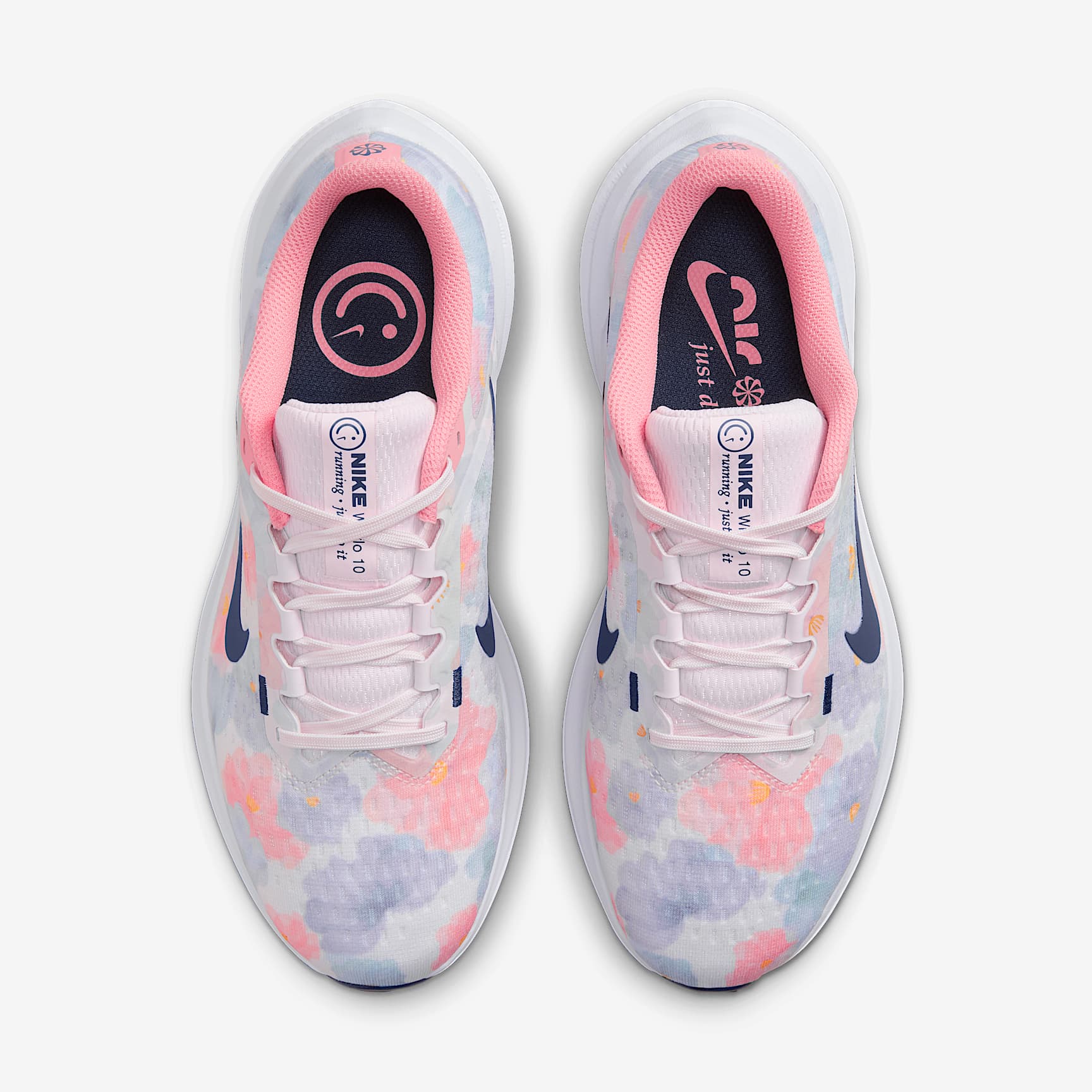 A balanced ride to help kick-start your run, the Winflo 10 is great whether you're a creature of habit logging your weekly mileage, a rookie hoping to turn intrigue into routine or just joining a friend for a spontaneous weekend run. A neutral support shoe with springy Nike Air, plus more space in the forefoot, leads to a comfortable, bouncy feel. It's ready-made for your run, whenever the road is calling your name. This special watercolour-like print, with floral pastels and subtle pinks and greens, captures the vibe of the summer season. Support: Neutral The more supportive the shoe, the more stability it can give to your natural stride. A combination of tuned support and intentionally placed cushioning helps you feel secure with every step. The Winflo 10 has neutral support. It gives you balance, whether you're a heel or a forefoot striker. It's good for long and short runs, too. Cushioning: Medium The more cushioning that you have underfoot, the softer and more comfortable your running experience can be. Cushioning helps soften the impact as your feet hit the ground. Full-length Nike Air cushioning gives you a soft, comfortable feel for your miles. Responsiveness: Medium The more responsive the shoe, the more energy return you can get back with each step. Whether you want to run a little bit faster or with a little less effort, responsive shoes help give you slightly more spring in your step to get more out of your run. Soft foam in the midsole works with the Nike Air cushioning to give you a bouncy, springy feel. What's New About the Winflo 10? A revamped toe box provides a better fit for all foot types compared to the Winflo 9. Plus, we increased the collar comfort and fit, with padding where it counts most. More Benefits * Engineered mesh—stronger and more flexible than ordinary mesh—improves hand feel and comfort while maintaining a lightweight, breathable feel. * Overlays at the toe add a layer of durability. * The tongue is connected to the upper's inner lining for a secure feel.