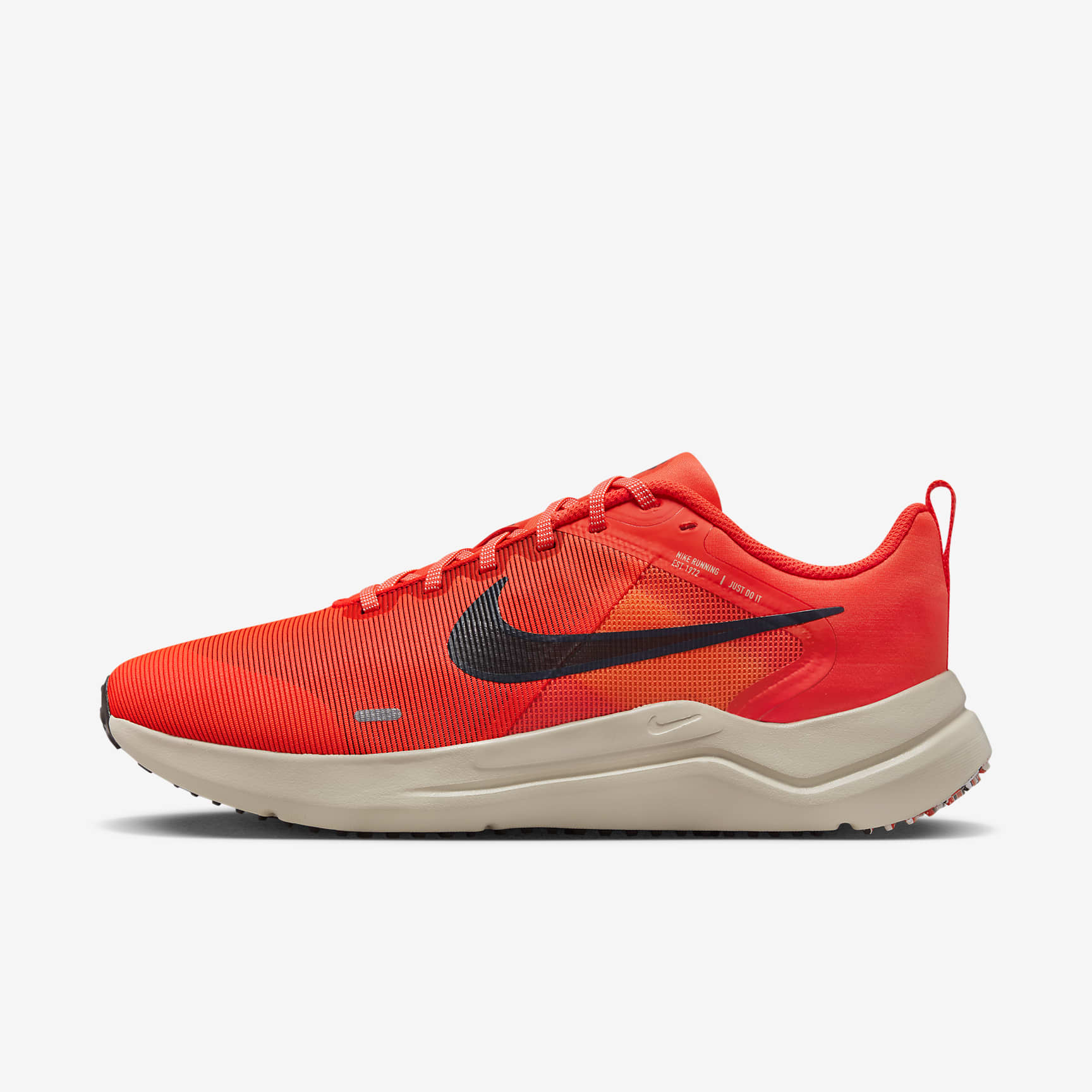 YOUR RUN BEGINS WITH STABLE SUPPORT. Take those first steps on your running journey in the Nike Downshifter 12. Made from at least 20% recycled content by weight, it has a supportive fit and stable ride, with a lightweight feel that easily transitions from your workout to hangout. Your trek begins. Lace up and hit the road. Cool, Light, Fast Mesh throughout the upper has a lightweight, breathable feel. The mesh was placed in key zones at the forefoot based on runner feedback, providing you with cooling where it counts. Run Hard with a Soft Feel Super-soft foam through the midsole helps cushion your foot with every step. The increased height means a softer sensation as you run. More Benefits * The rubber outsole has the traction to keep your feet gripped to the pavement. * Skins at the toes and eyelets offer durability. * A mesh material shows off the internal components at the midfoot and toe. Product Details * Not intended for use as Personal Protective Equipment (PPE)