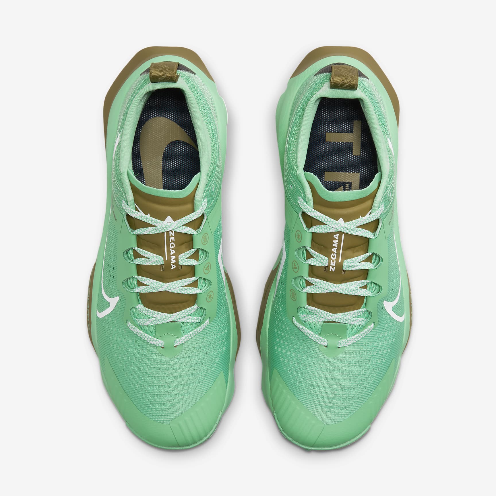 Navigate the up and downs of uncompromising terrain with the Nike Zegama. Developed with great grip and stability, it has you covered, so you can keep climbing and reach greater personal heights when the going gets grimy and gritty. Whether it's a challenging, rocky landscape going uphill or a steep, slick decline down a treacherous trail, feel confident when you decide to off-road it. Cushioning for Your Miles A lightweight Nike ZoomX midsole is combined with increased stack heights to help provide cushioning during extended stretches of running. Confident in Various Terrains A deeper, diverse lug pattern highlighted with wide spacing gives you traction for more technical terrains. Stability for the Trail Engineered mesh—stronger and more flexible than normal mesh—on the upper and internal heel help provide stability for various trail conditions as well as breathability. More Benefits * Ankle gaiter helps limit trail debris. * Overlays stretch across the toe for extra durability.