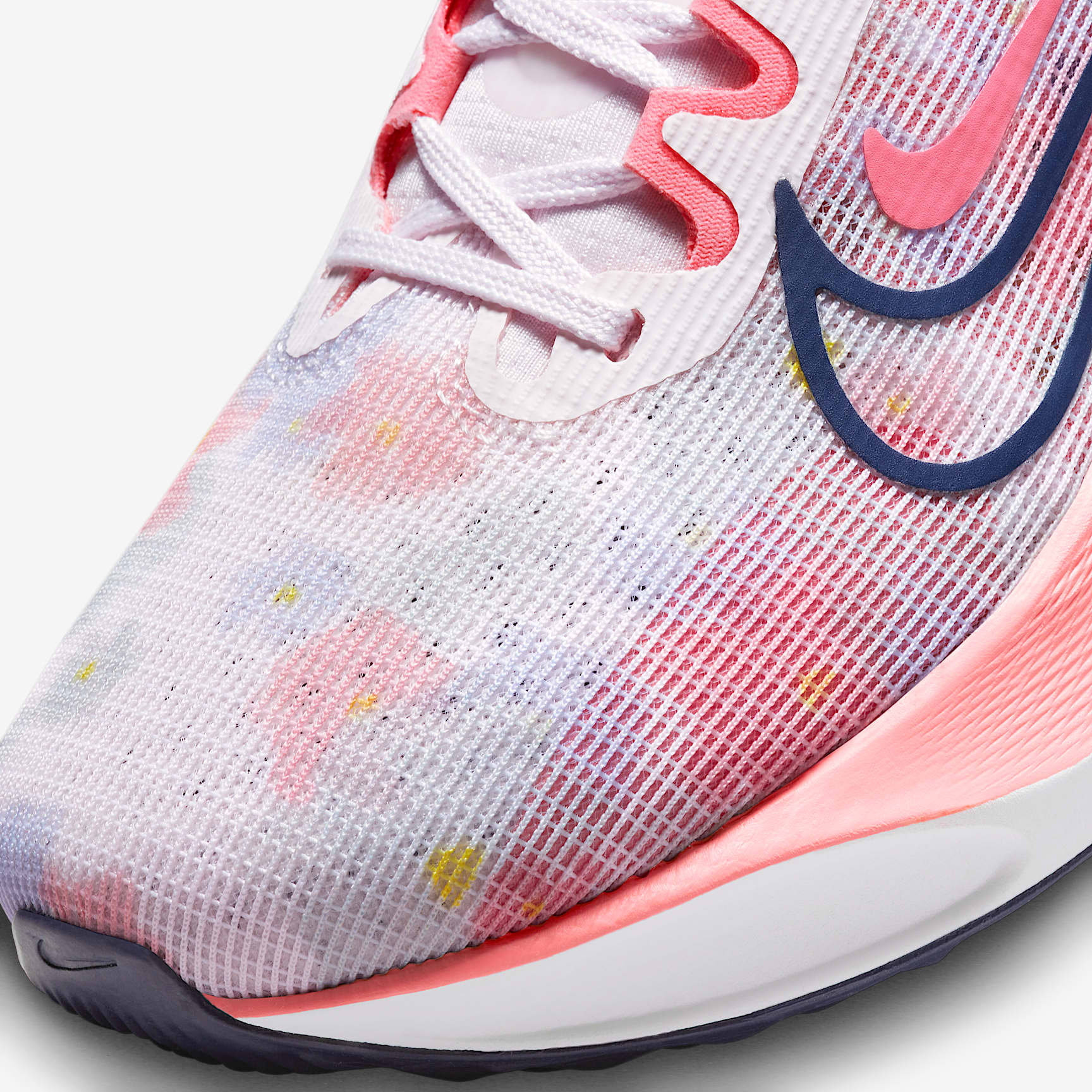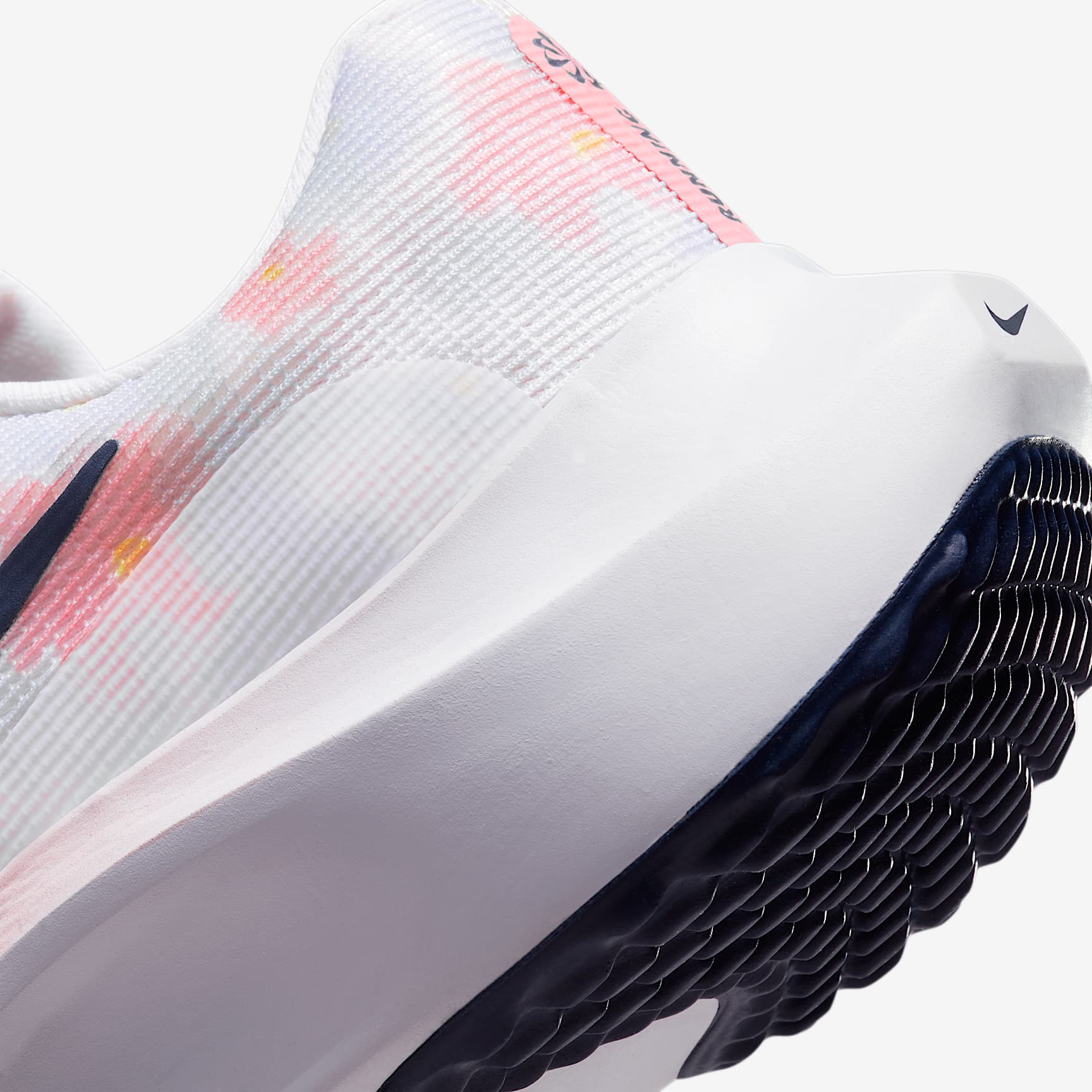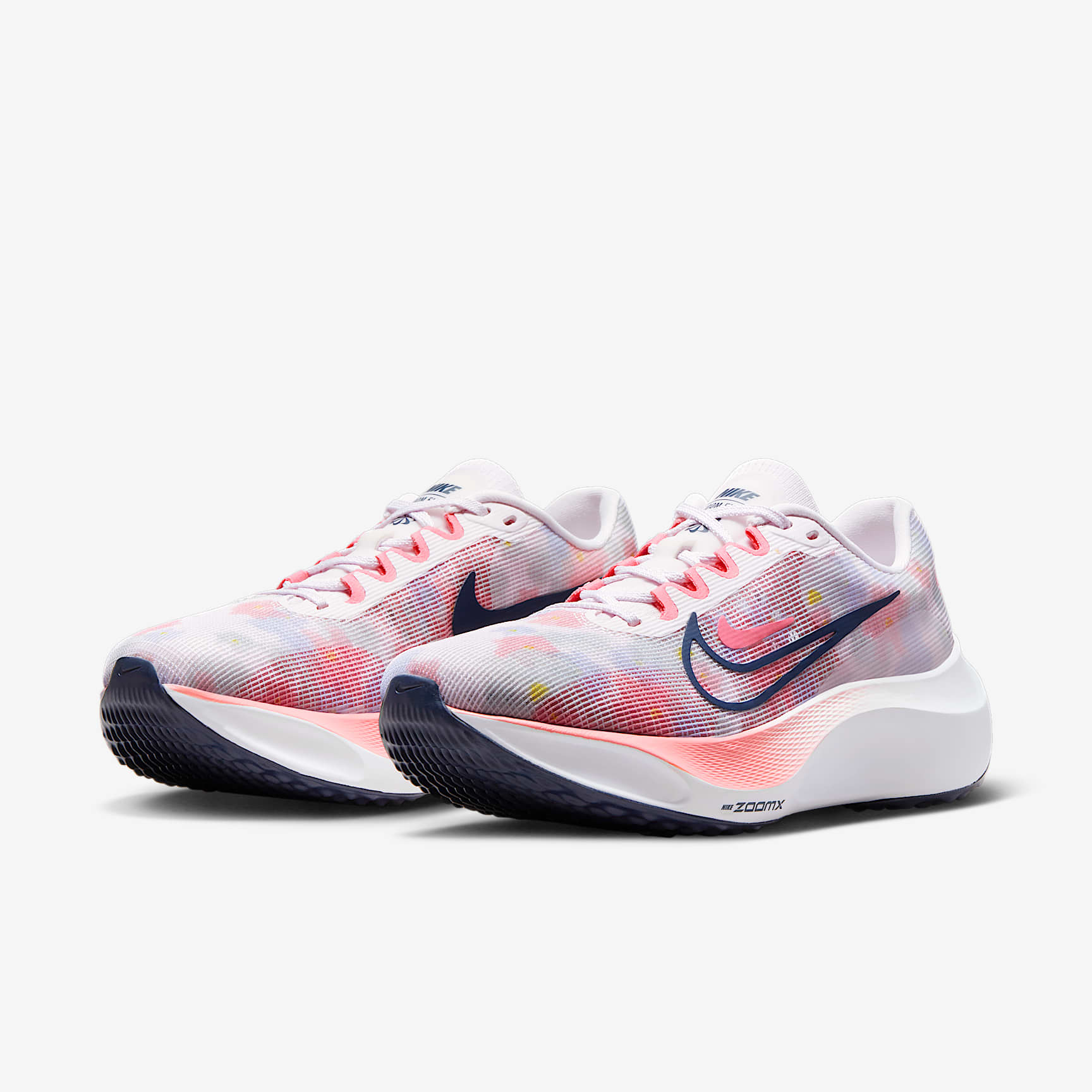 Bridge the gap between your weekend training run and race day in this durable design. Wear this neutral road runner for your favourite race and in the days after your conquest. It offers comfort, stability and reliability but with a propulsive sensation that helps you feel fast and fresh. That kind of versatility is uncommon in the running arena. But who said you can't have it all? This special watercolour-like graphic with floral pastels and subtle pinks captures the vibe of the summer season. More Bounce Newly implemented ZoomX foam in the midsole takes an already respected, trusted shoe to another performance level that wasn't present in the Zoom Fly 4. The addition makes for a lighter, more responsive cushioning system. Take advantage of these all-purpose traits that help you run faster and more easily, and have more fun on your runs. Stability Where You Need It Both the forefoot and heel offer slightly wider bases for a stable platform, so you can tackle turns and long runs with confidence. Stay in Rhythm Carbon-fibre plate delivers a propulsive sensation and a smooth transition at various paces. The plate provides a sort of roll-forwards feel that makes you want to take on the next step. More Benefits * Lightweight mesh gives you a softer, more breathable feel that contours to your foot. * Dynamic lace-up fit and supportive containment in the midfoot wrap around your foot for a contoured and secure fit.