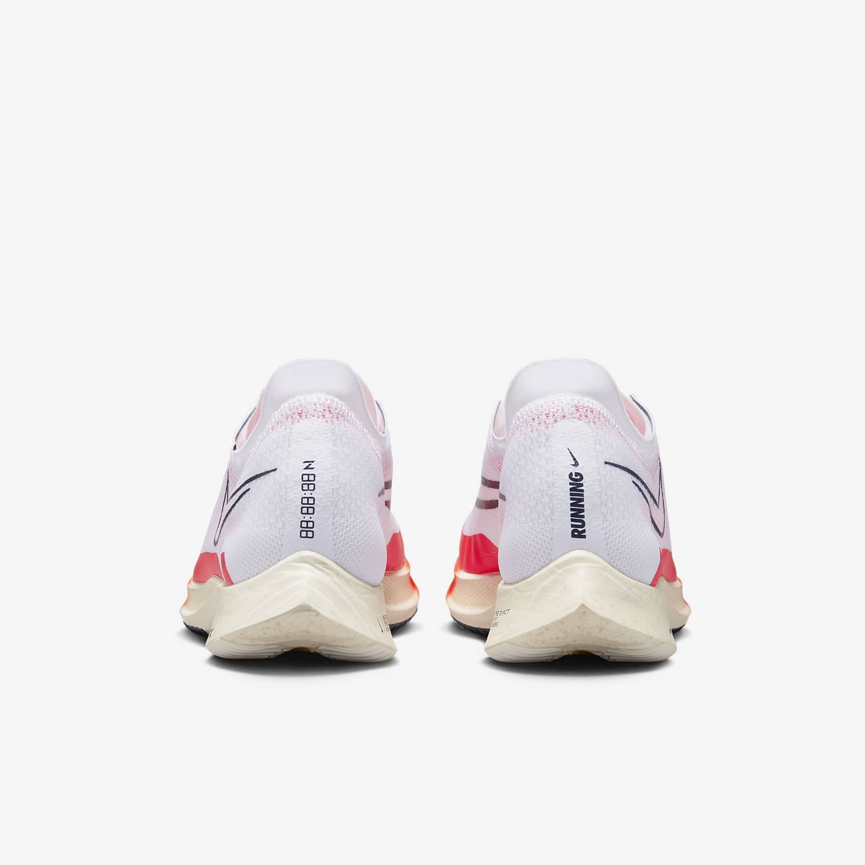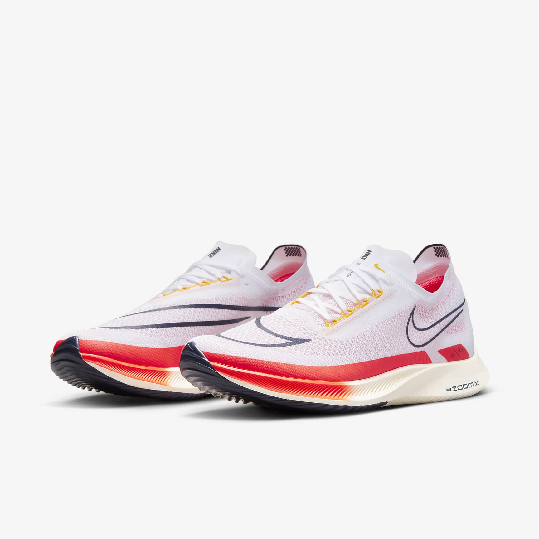 LIGHT SPEED. Our lightest racing shoe, the Nike Streakfly is all about the speed you need to take on the competition in a mile, 5K or 10K race. Low profile with sleek details, it feels like it disappears on your foot to help you better connect with the road on the way to your personal best. Low and Nimble A full-length ZoomX midsole provides optimal lightweight responsiveness. The foam stack heights are lower than the Vaporfly, saving weight and giving you a more aggressive feel. It results in a shoe so light it disappears on your foot, while still giving you the responsive cushioning of ZoomX foam, helping you reach your fastest pace throughout the turns and accelerations of any race. Supportive and Sleek An ultra-thin knit upper is light in weight while still providing the support you need for racing. Extra reinforcement in the forefoot helps keep you secure. The updated, sleek lacing system is laterally offset with a notched tongue to help relieve pressure on the top of the foot. Grip Where It Counts Runner-informed data was used to create the outsole. It uses that information to place traction where you need it the most, with a pattern that connects to the pavement based on how your foot hits the ground. The result is solid grip from foot contact to toe-off, helping you stay ahead of the competition. Benefits * Partially integrated tongue delivers a secure fit. * Rubber outsole provides traction.