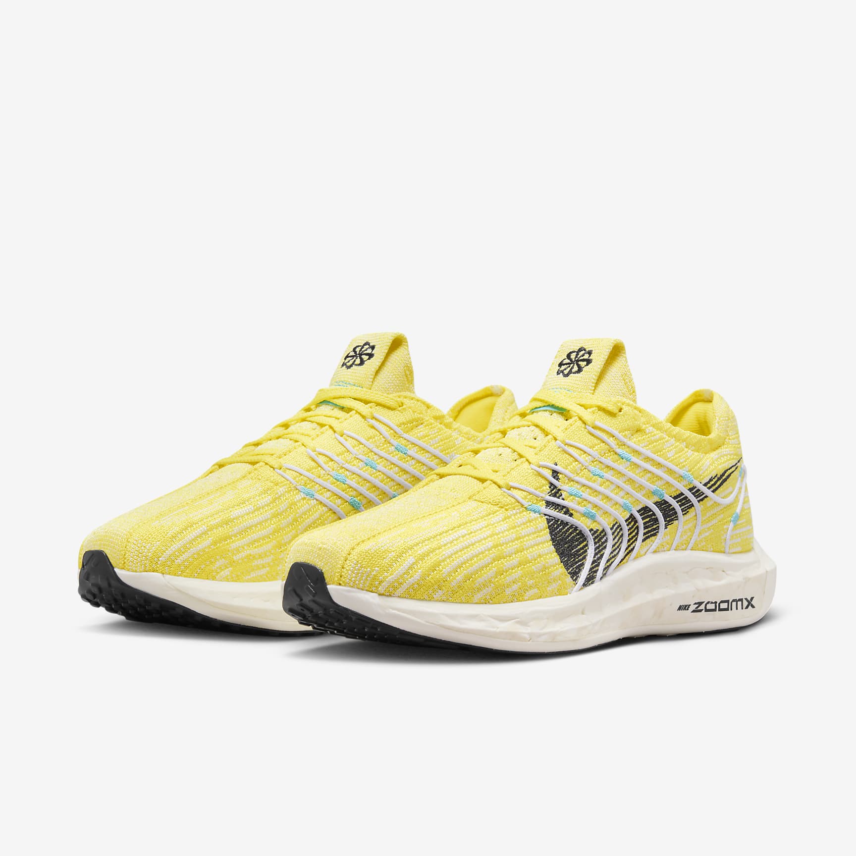 Let the Nike Pegasus Turbo help you log the hard miles. Made from at least 50% recycled content by total weight of product, this esteemed stallion gives you a stretchy, just-right feel. Complete with lighter, responsive foam, it's made to help you increase the tempo without sacrificing comfort as you push towards a personal best. A More Responsive Ride Nike ZoomX foam is responsive and lightweight, giving you bounce with every step. Shaped like a rocker, the foam provides support for the 3 phases of a runner's stride. It offers flexibility when your foot rises off the ground, a smooth ride when your foot is moving forwards and cushioning at ground contact. Lightweight and Supportive Flyknit technology uses high-strength fibres to create a lightweight upper with targeted areas of support, stretch and breathability. It provides security and comfort. Traction for the Road Waffle-inspired tread on the outsole provides traction.