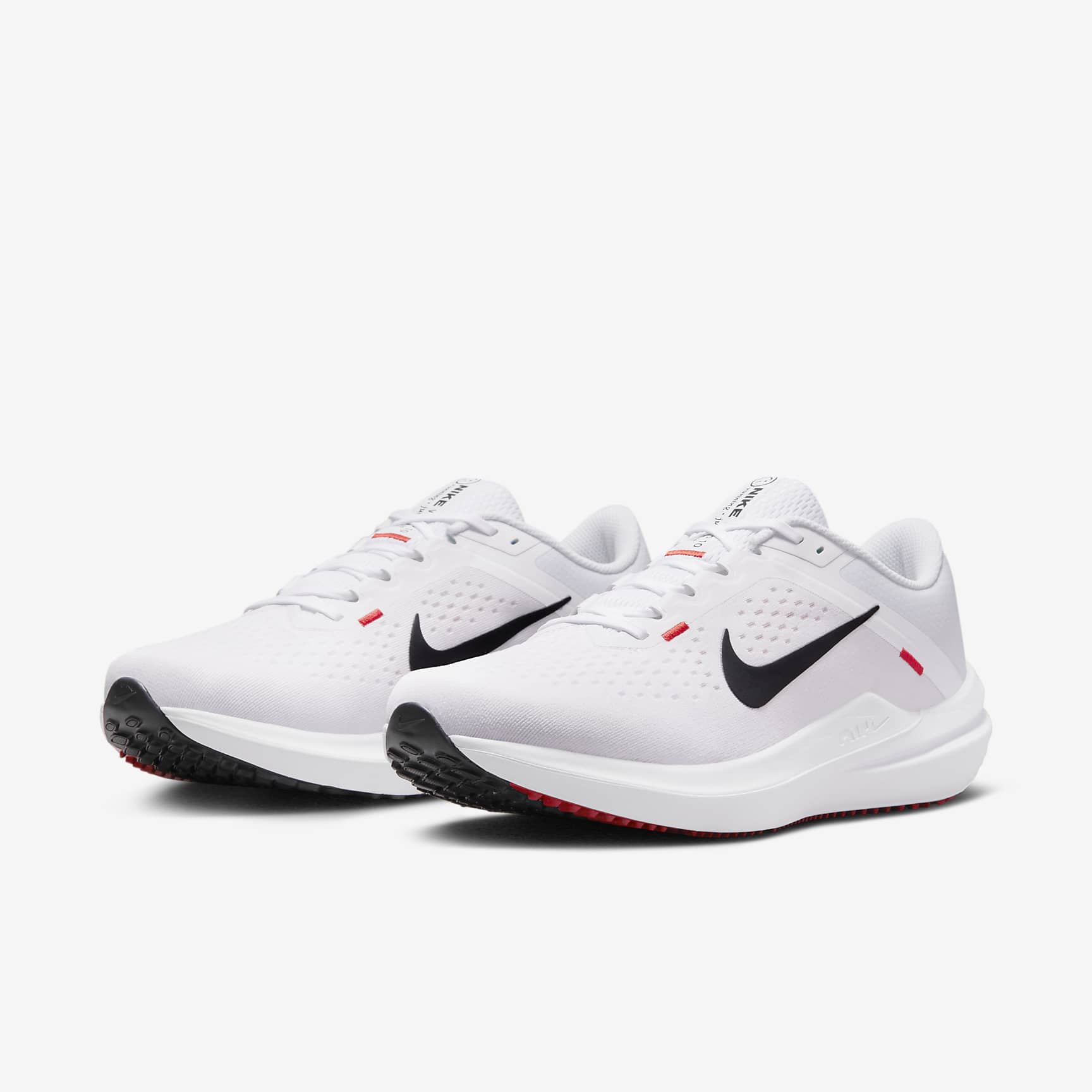 A balanced ride to help kick-start your run, the Winflo 10 is great whether you're a creature of habit logging your weekly mileage, a rookie hoping to turn intrigue into routine or just joining a friend for a spontaneous weekend run. A neutral support shoe with springy Nike Air, plus more space in the forefoot, leads to a comfortable, bouncy feel. It's ready-made for your run, whenever the road is calling your name. Support: Neutral The more supportive the shoe, the more stability it can give to your natural stride. A combination of tuned support and intentionally placed cushioning helps you feel secure with every step. The Winflo 10 has neutral support. It gives you balance, whether you're a heel or a forefoot striker. It's good for long and short runs, too. Cushioning: Medium The more cushioning that you have underfoot, the softer and more comfortable your running experience can be. Cushioning helps soften the impact as your feet hit the ground. Full-length Nike Air cushioning gives you a soft, comfortable feel for your miles. Responsiveness: Medium The more responsive the shoe, the more energy return you can get back with each step. Whether you want to run a little bit faster or with a little less effort, responsive shoes help give you slightly more spring in your step to get more out of your run. Soft foam in the midsole works with the Nike Air cushioning to give you a bouncy, springy feel. What's New About the Winflo 10? A revamped toe box provides a better fit for all foot types compared to the Winflo 9. Plus, we increased the collar comfort and fit, with padding where it counts most. More Benefits * Engineered mesh—stronger and more flexible than ordinary mesh—improves hand feel and comfort while maintaining a lightweight, breathable feel. * Overlays at the toe add a layer of durability. * The tongue is connected to the upper's inner lining for a secure feel.