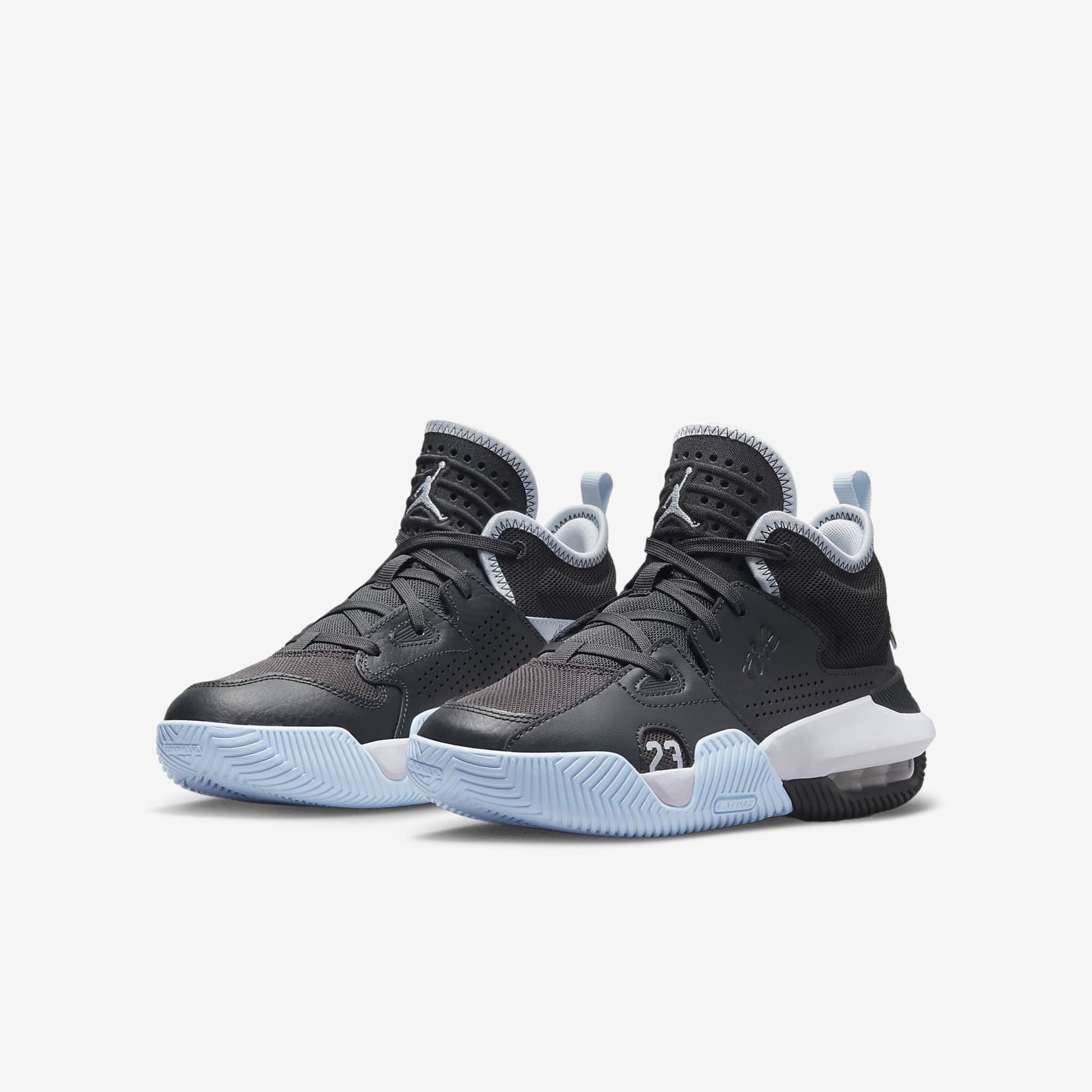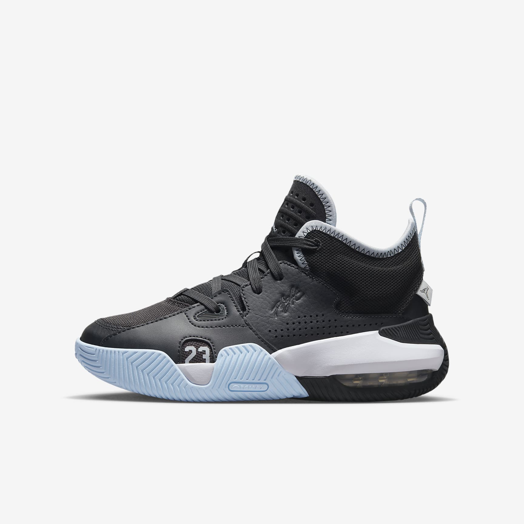 Gear up in Jordan heritage. With details drawn from decades of shoes, the Stay Loyal 2 is a collage of cool. Mesh and leather upper gives you stability without the worry of weighing you down. Air in the heel keeps you cushioned. Get out and play! Benefits * Nike Air technology absorbs impact for cushioning with every step. * Leather upper breaks in easily and makes for a long-lasting shoe. * Knit mesh toe lets your feet breath. Product Details * Jumpman logo heel band * Heel loop * Moulded eyelet detail
