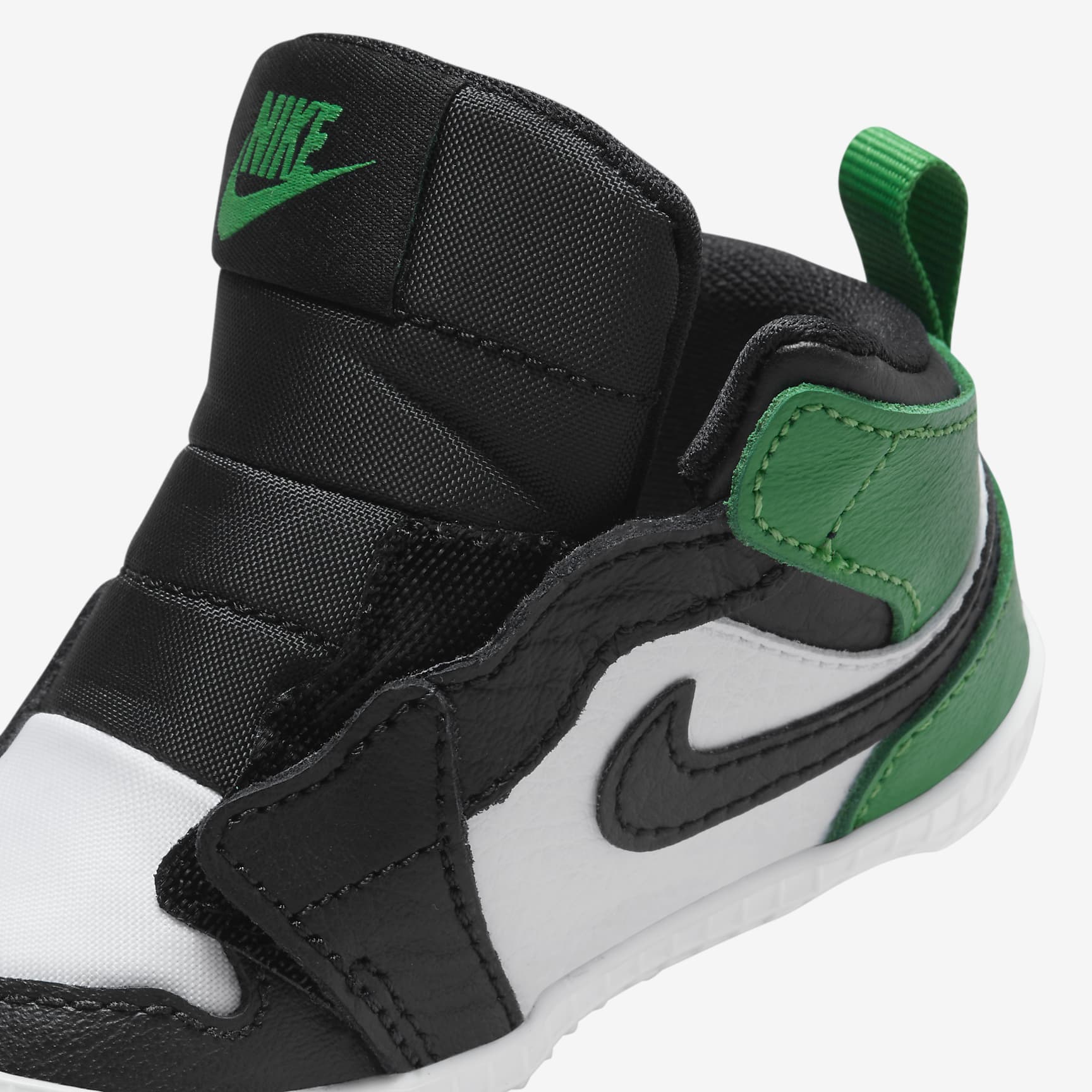 HERITAGE DESIGN MEETS FLEXIBLE COMFORT. With a simple hook-and-loop side closure, the Jordan 1 Bootie provides secure support while still being easy to get on and off. A flexible sole delivers lightweight, soft comfort. Easy Entry A hook-and-loop side closure makes it easy to take the shoe on and off. Flexible Comfort A flexible sole feels soft and comfortable for little feet. Product Details * Heel pull tab